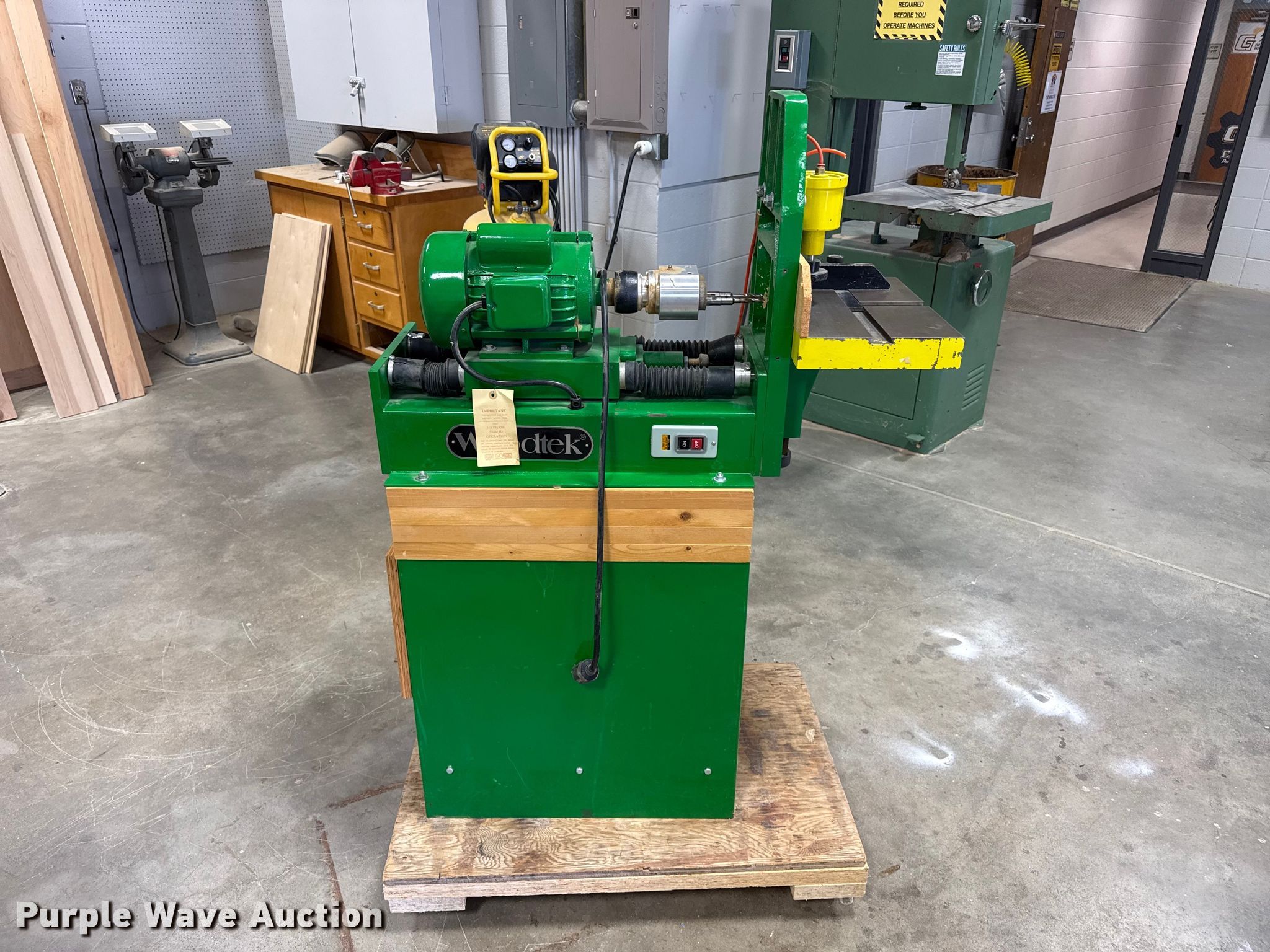 Purple Wave is selling a used Tools in Kansas. This item is a Woodtek dowel boring machine with the following: Volts: 220, Amps: 9, Phase: Single