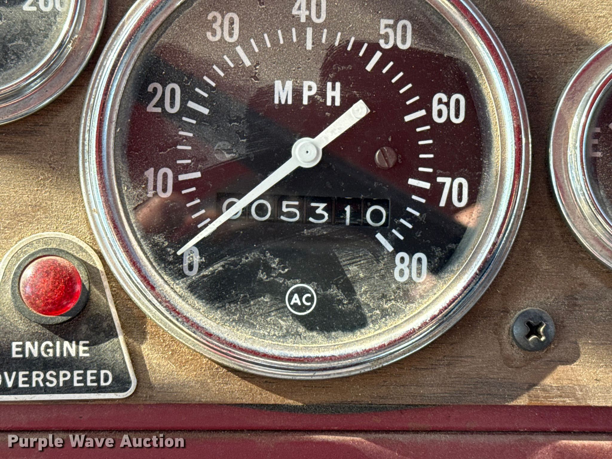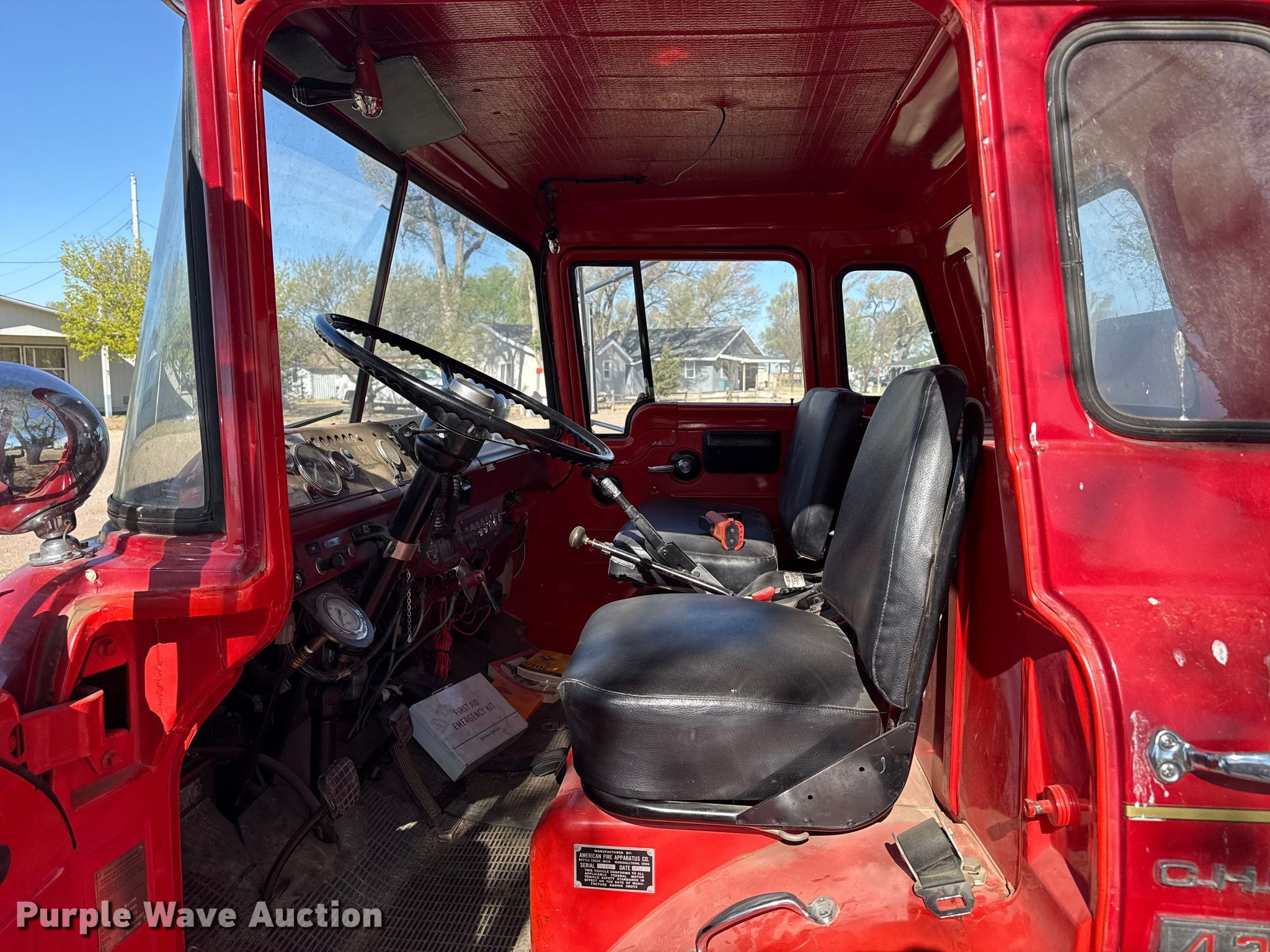 1975 Chevrolet 65 pumper fire truck. Miles: 5,310 on odometer, Hours: 412 on meter, VIN: CTE675V157181. Engine Chevrolet, Displacement: 427 C.I.D., Cylinders: 8, Fuel type: Gas. Transmission Manual, Speed: 5, plus 2. Chassis Axles: Single, Suspension: Spring, Brakes: Hydraulic. Interior Heat. Features Fire truck body Pump 750 gpm.. Tires Size: 9.00-20. Notes Ignition timing issues, Unit must be towed or hauled, Non-operational unit. Title distribution may be delayed up to 14 days from verification of funds. Copeland, KS 67837