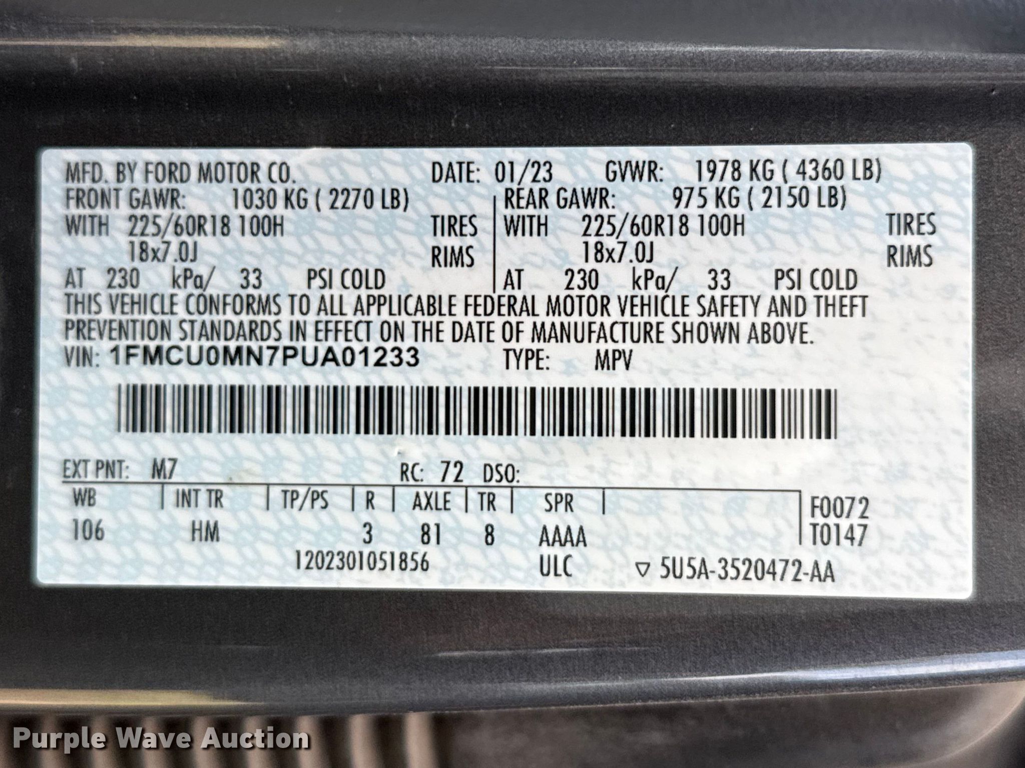 Purple Wave is selling a used Passenger Vehicle in Kansas. This item is a 2023 Ford Escape SUV with the following: Miles: 89,432 on odometer, VIN: 1FMCU0MN7PUA01233