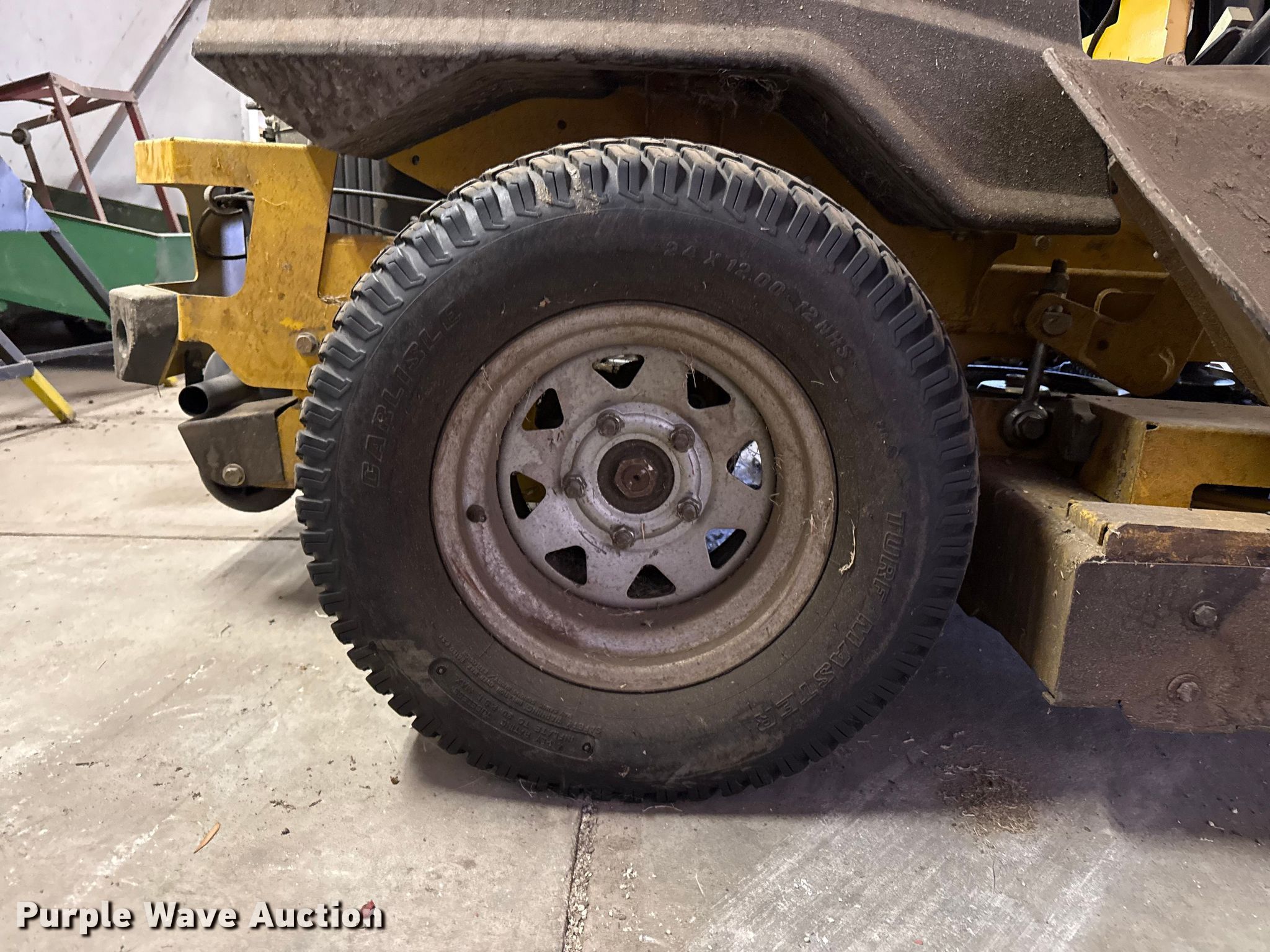 Hustler Super Z ZTR lawn mower. Hours: 1,883 on meter, Cutting width: 60". Engine Kawasaki, Cylinders: 2, Fuel type: Gas. Transmission Hydrostatic. Tires Front: 13x6.50-6, Rear: 24x12.00-12. Notes Additional parts included, Starter issues, Unknown operating condition. Larned State Hospital. Larned, KS 67550