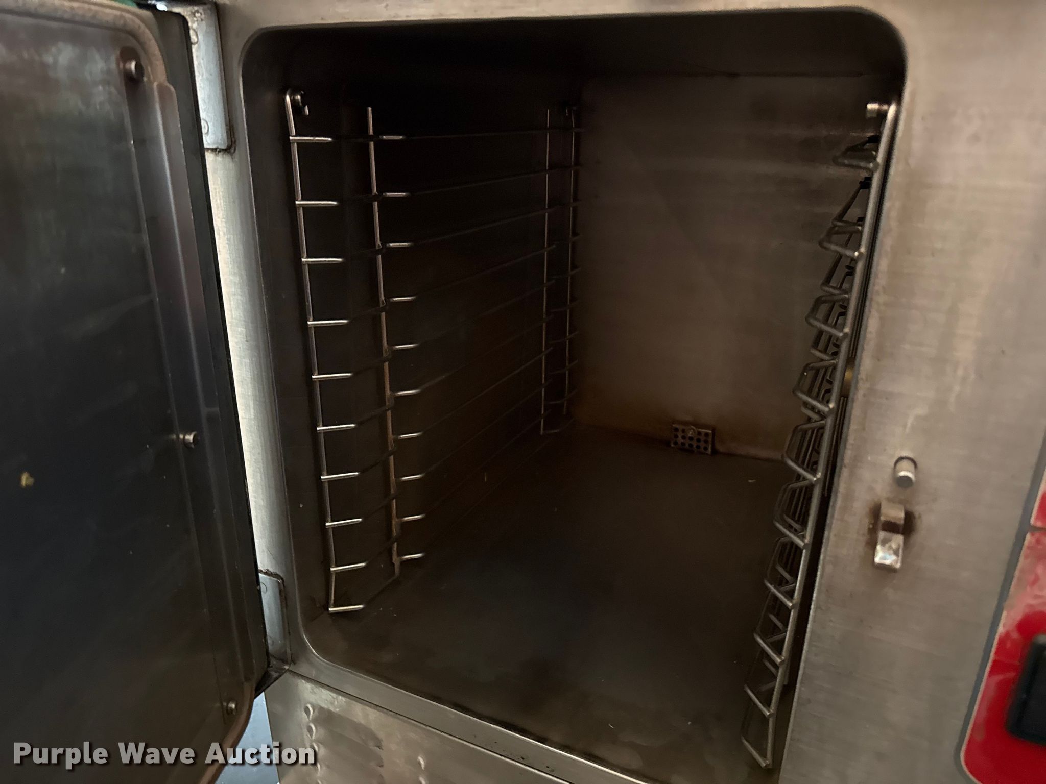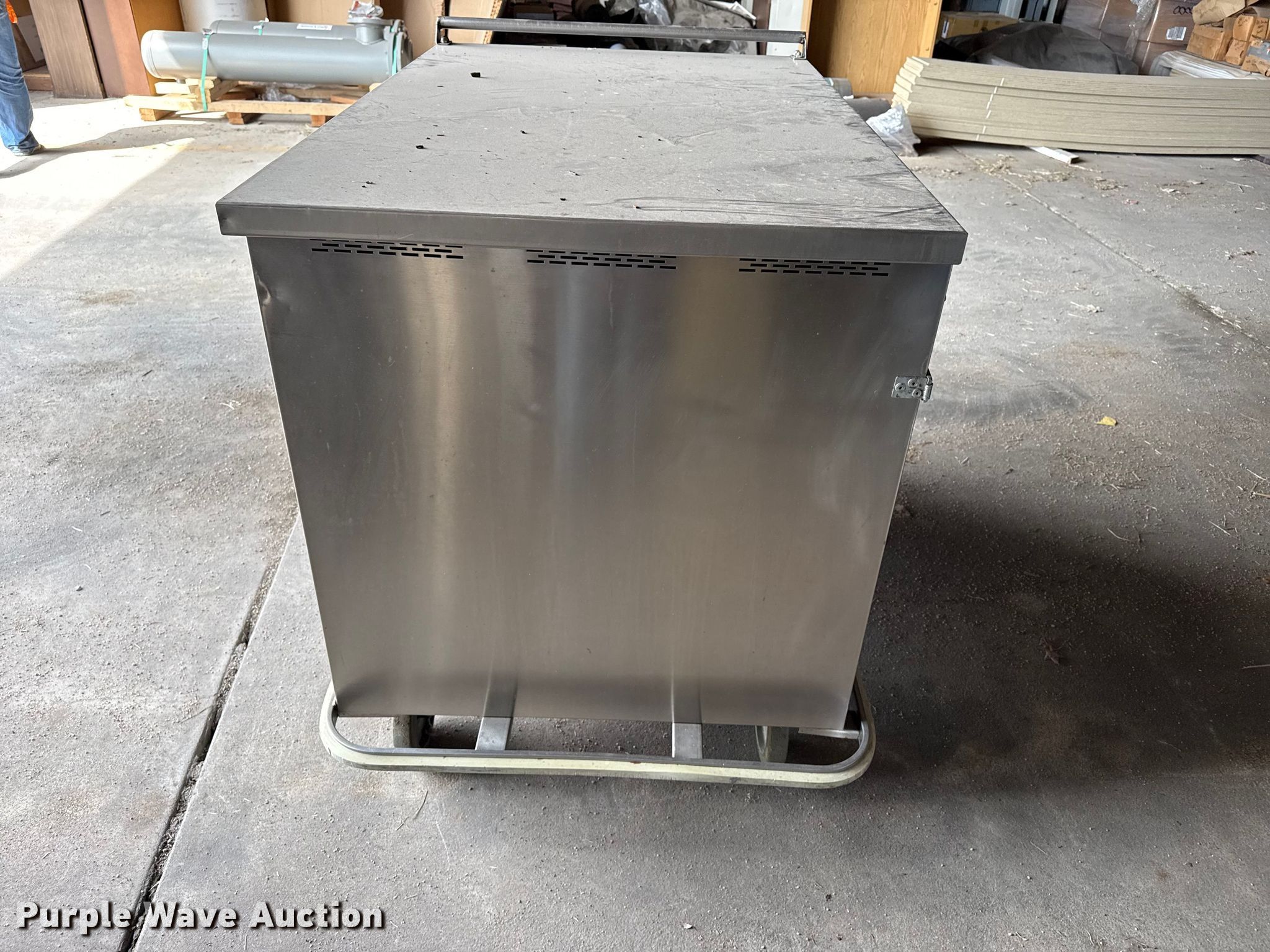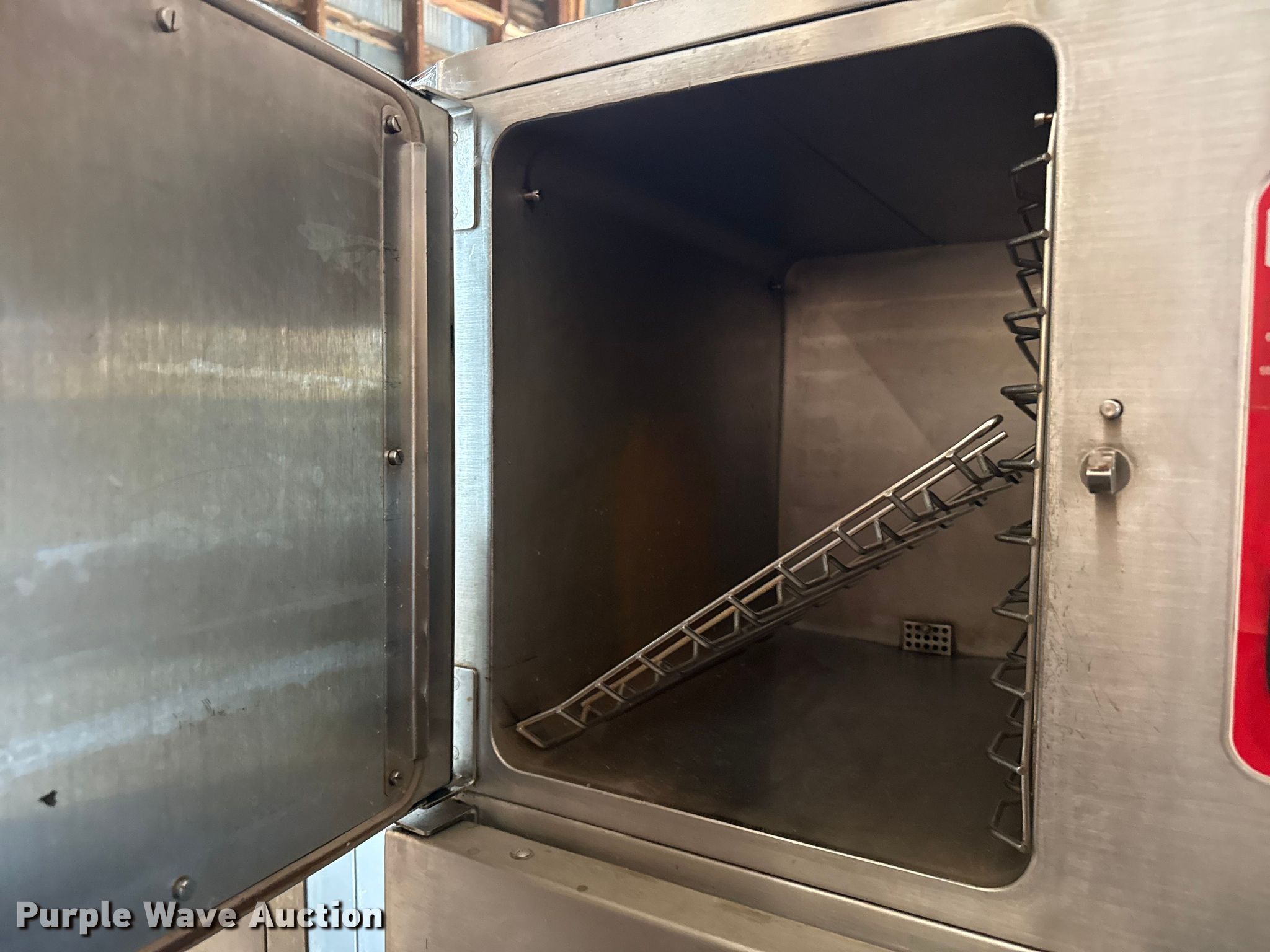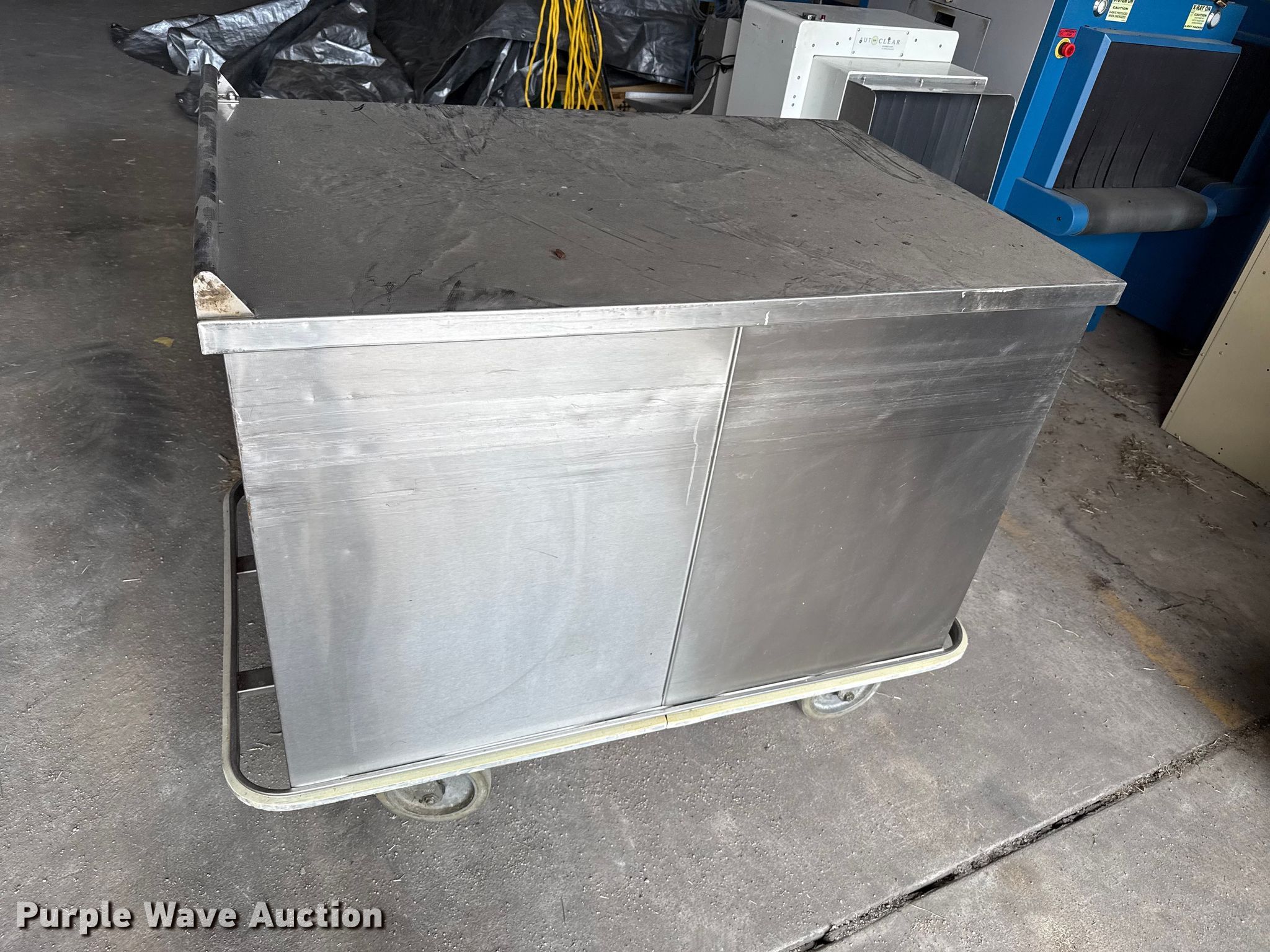Purple Wave is selling a used Restaurant Equip. in Kansas. This item is a Kitchen equipment with the following: Hobart slicer, Volts: 115, Amps: 6.2, Storage rack, Carter-Hoffman food cart, (4) Vulcan natural gas kettles, Market Forge convection steam cooker, Vulcan steam cooker