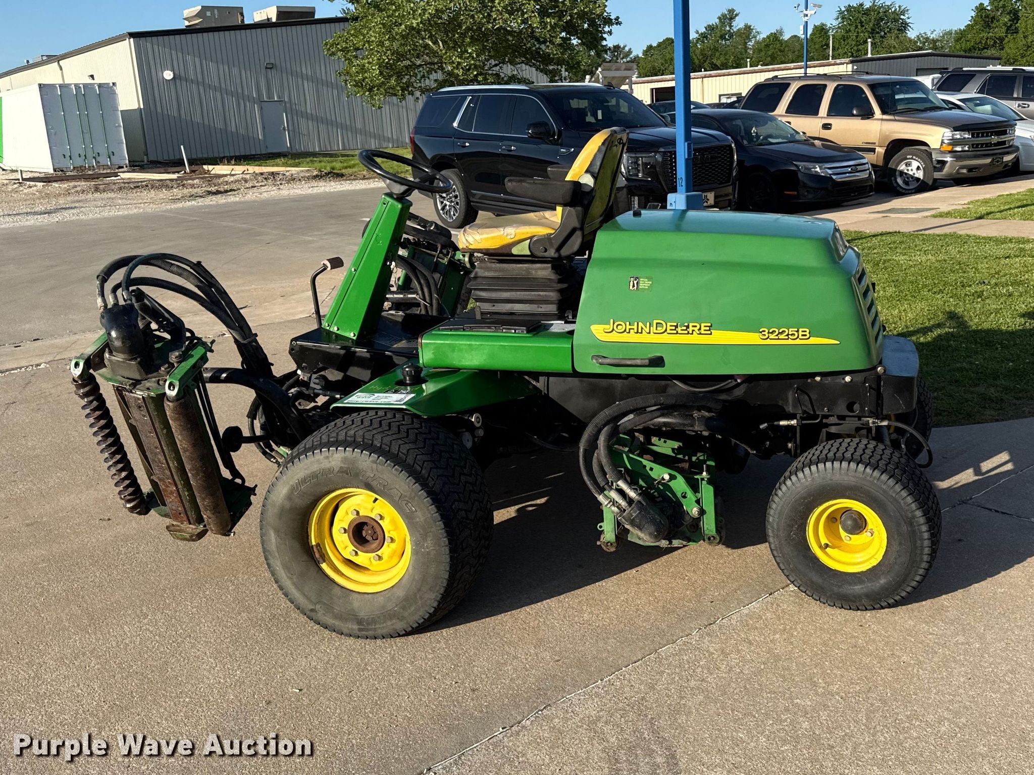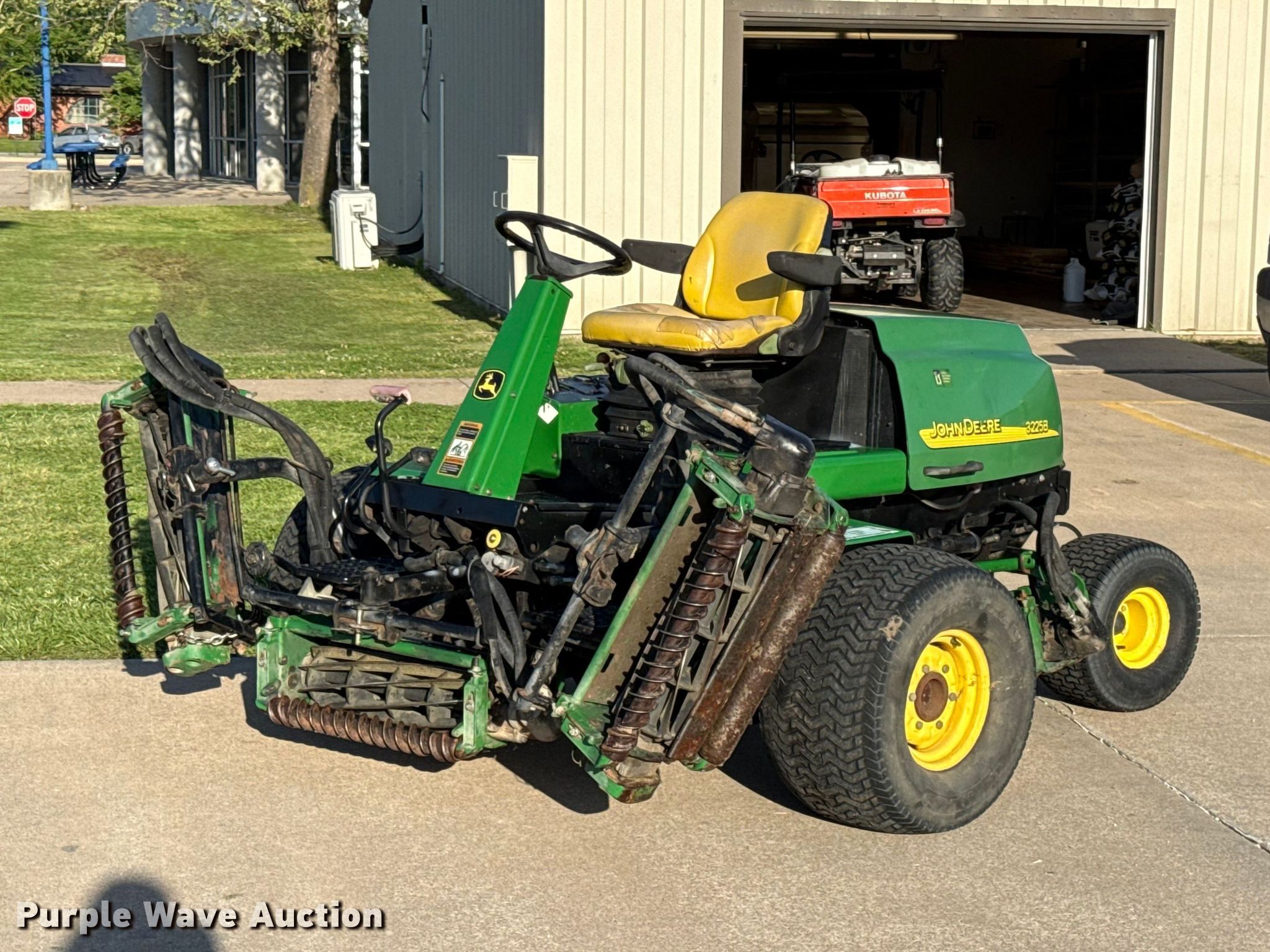 Purple Wave is selling a used Commercial Turf Mower in Kansas. This item is a John Deere 3225B gang mower reel mower with the following: Hours: 1,068 on meter, Cutting width: 101", Serial: TC3225T030165
