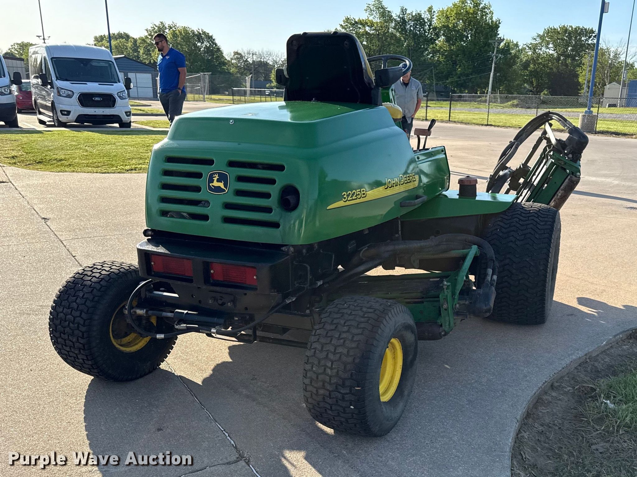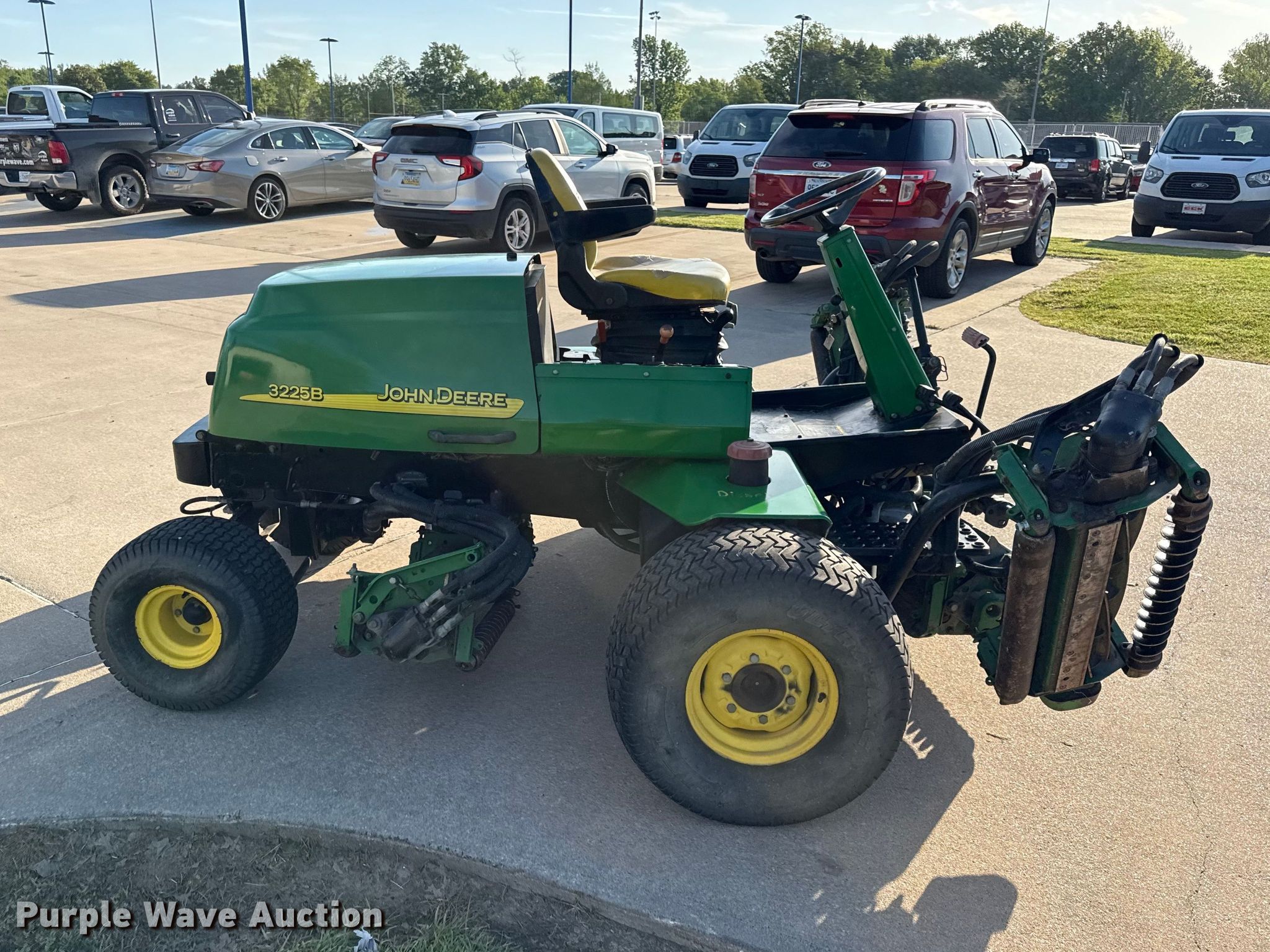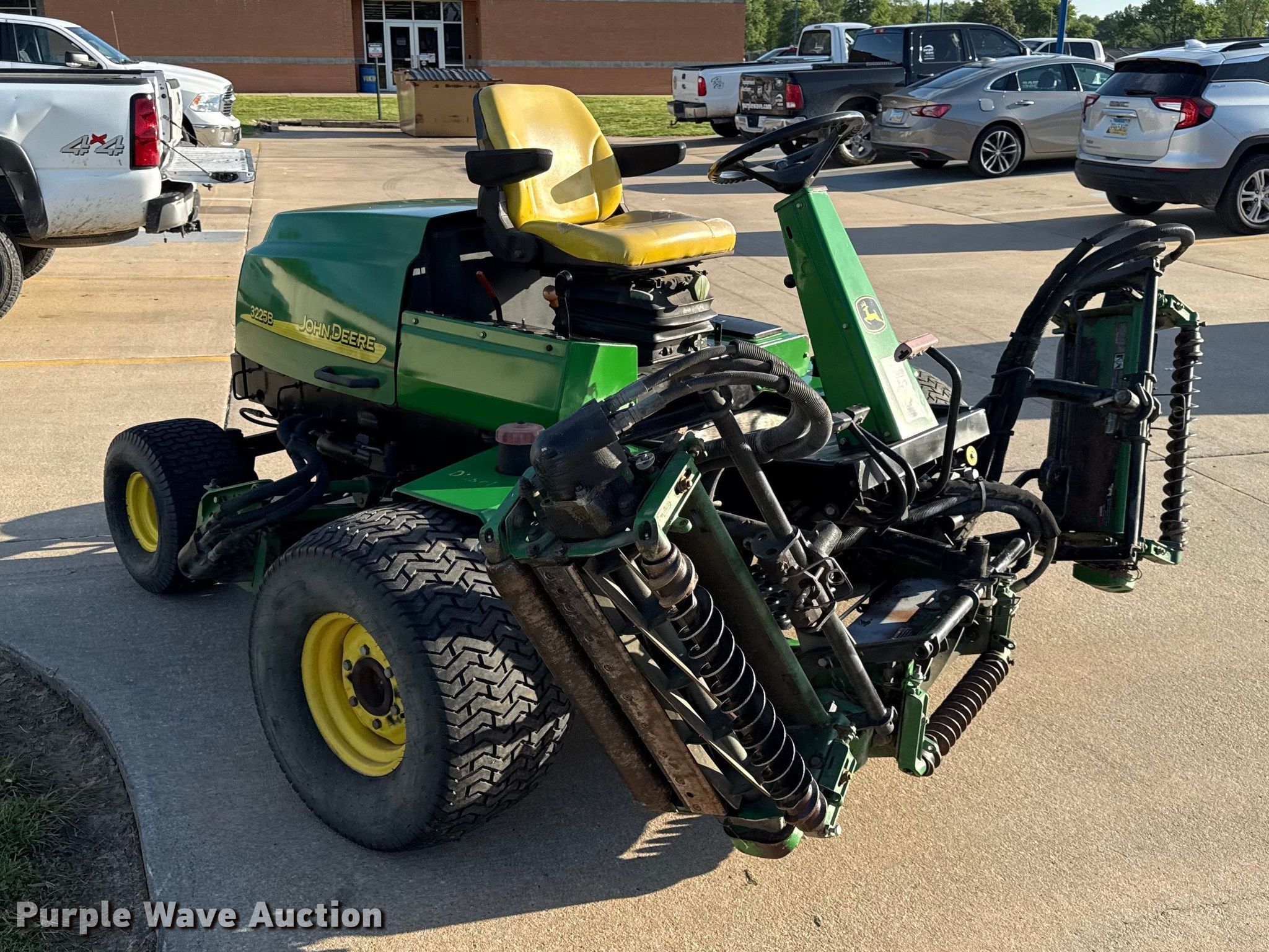 John Deere 3225B gang mower reel mower. Hours: 1,068 on meter, Cutting width: 101", Serial: TC3225T030165. Engine John Deere, Displacement: 1.496L, Cylinders: 3, Fuel type: Diesel. Transmission Hydrostatic. Tires Front: 26.5-14.00-12, Rear: 20x10.00-8. Notes Possible injection pump issues. U.S.D. 503 Parsons, KS. Parsons, KS 67357