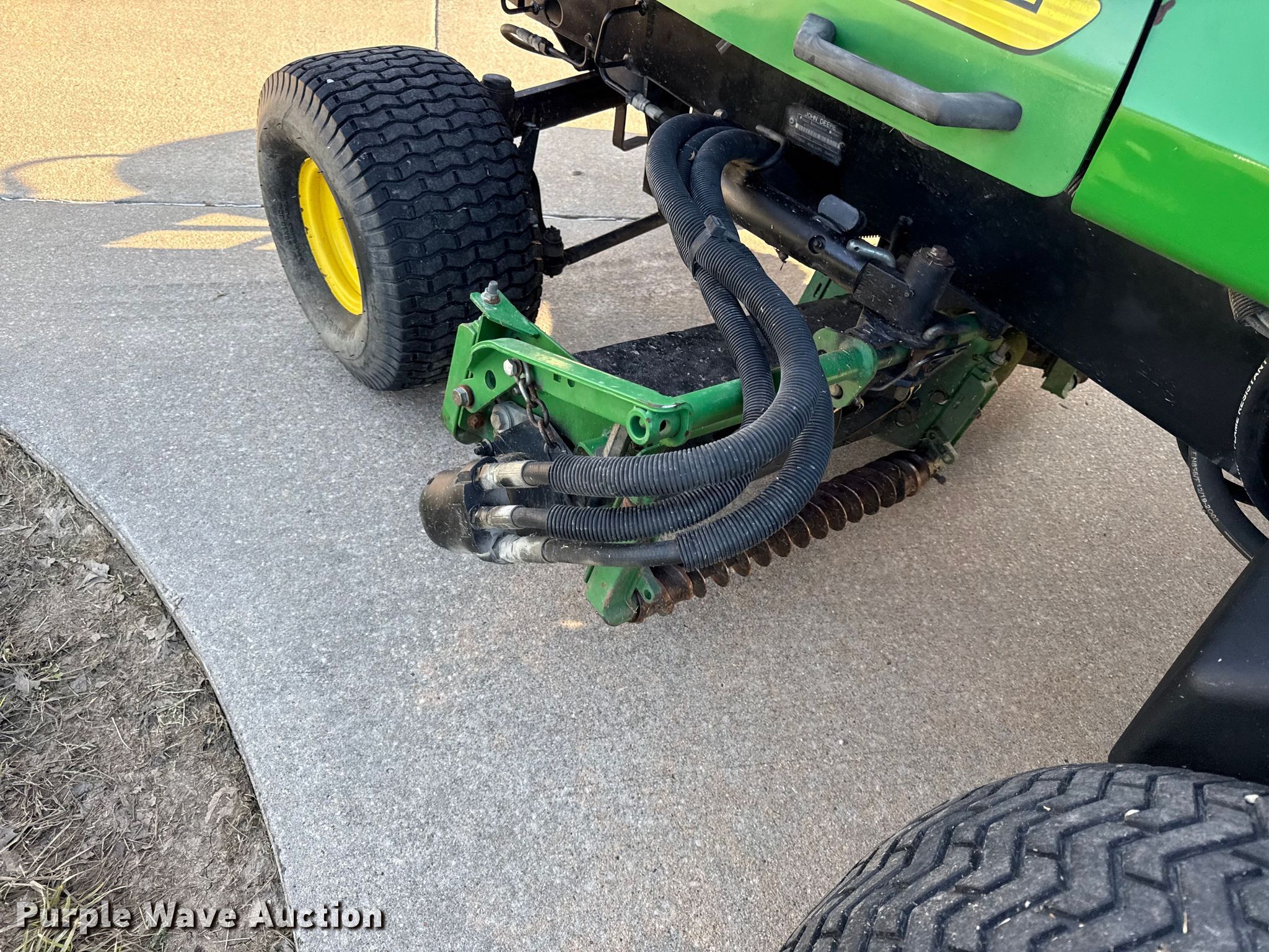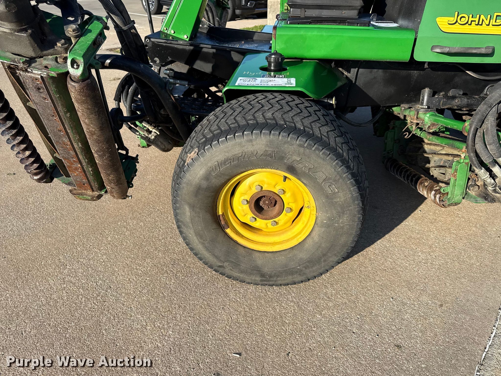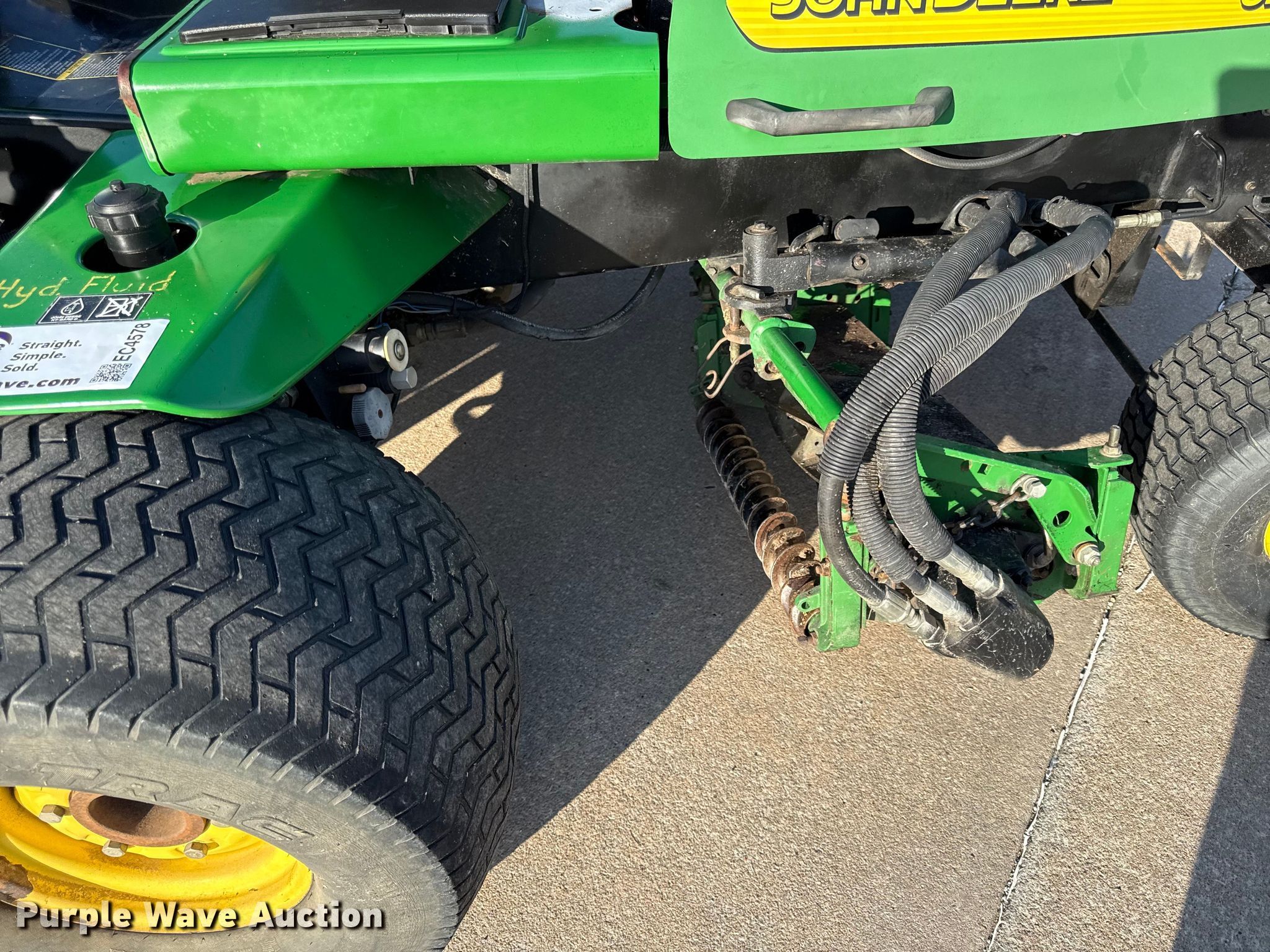 John Deere 3225B gang mower reel mower. Hours: 1,068 on meter, Cutting width: 101", Serial: TC3225T030165. Engine John Deere, Displacement: 1.496L, Cylinders: 3, Fuel type: Diesel. Transmission Hydrostatic. Tires Front: 26.5-14.00-12, Rear: 20x10.00-8. Notes Possible injection pump issues. U.S.D. 503 Parsons, KS. Parsons, KS 67357
