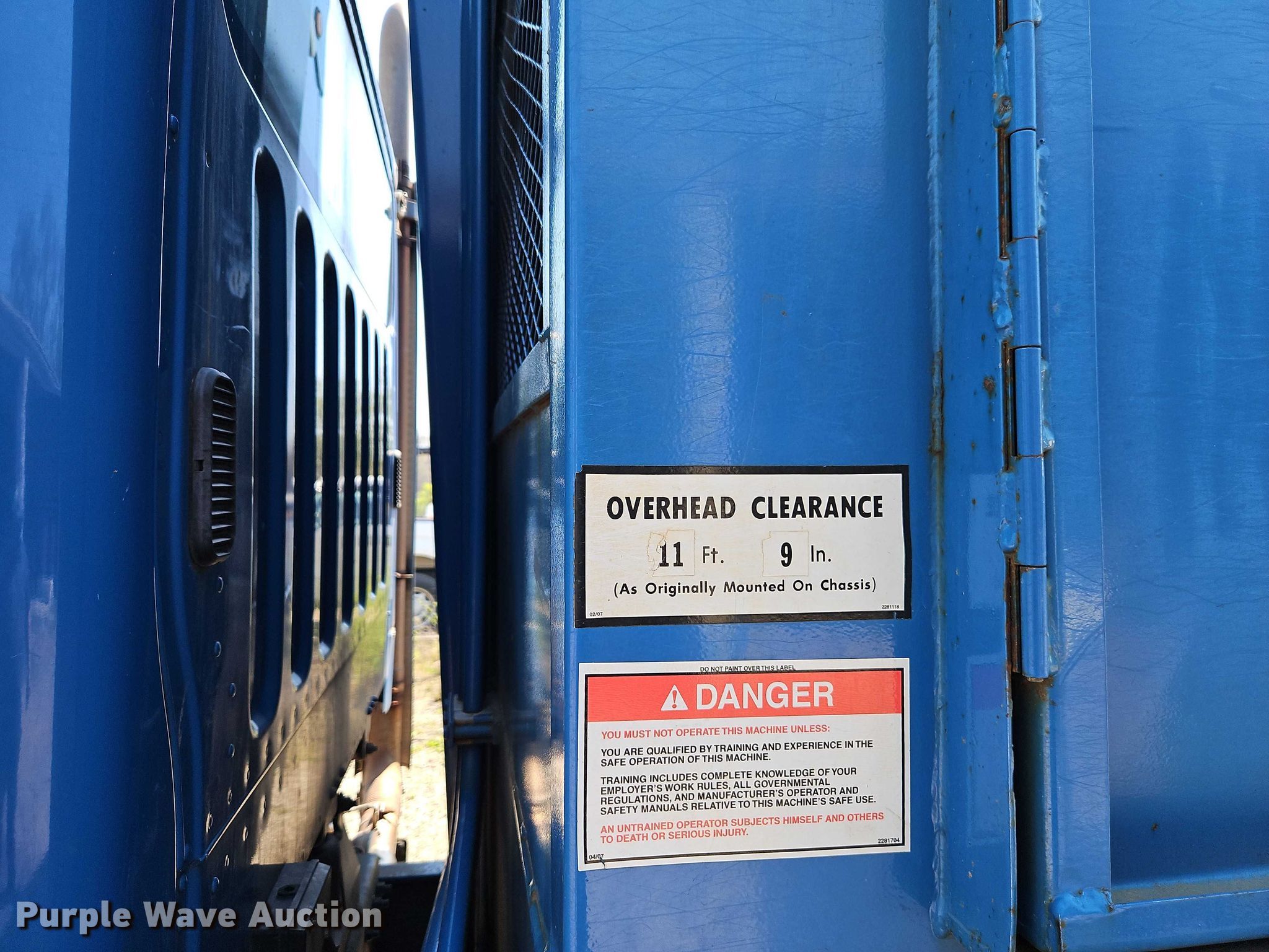 2011 Freightliner M2 refuse truck. Miles: 133,438 on odometer, Hours: 1,628 on meter, VIN: 1FVAC3BS0BDAX8471, Unit #: 433. Engine Cummins ISC, Displacement: 8.3L, Cylinders: 6, Fuel type: Diesel. Transmission Allison, Automatic. Chassis Axles: Single, Suspension: Spring, Brakes: Air, PTO, GVWR: 37,600 lbs. Interior AC, Heat, Cruise control. Features Refuse bed Pak-Mor, Capacity: 25 cu.yd., Load: Rear, Cart tipper, Winch. Tires Front: 315/80R22.5, Rear: 11R22.5. Notes Oil leak, Unit must be towed or hauled, Non-operational unit. Kansas title. Seller is a government entity who will be assigning and distributing the title. Please contact the seller for distribution questions. Title distribution may be delayed up to 30 days from verification of funds. City of Lawrence. Lawrence, KS 66044