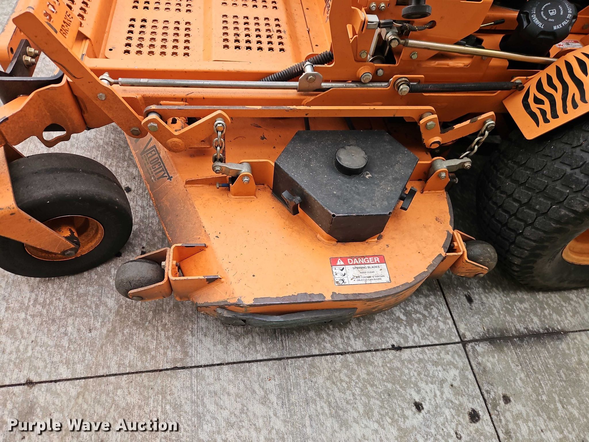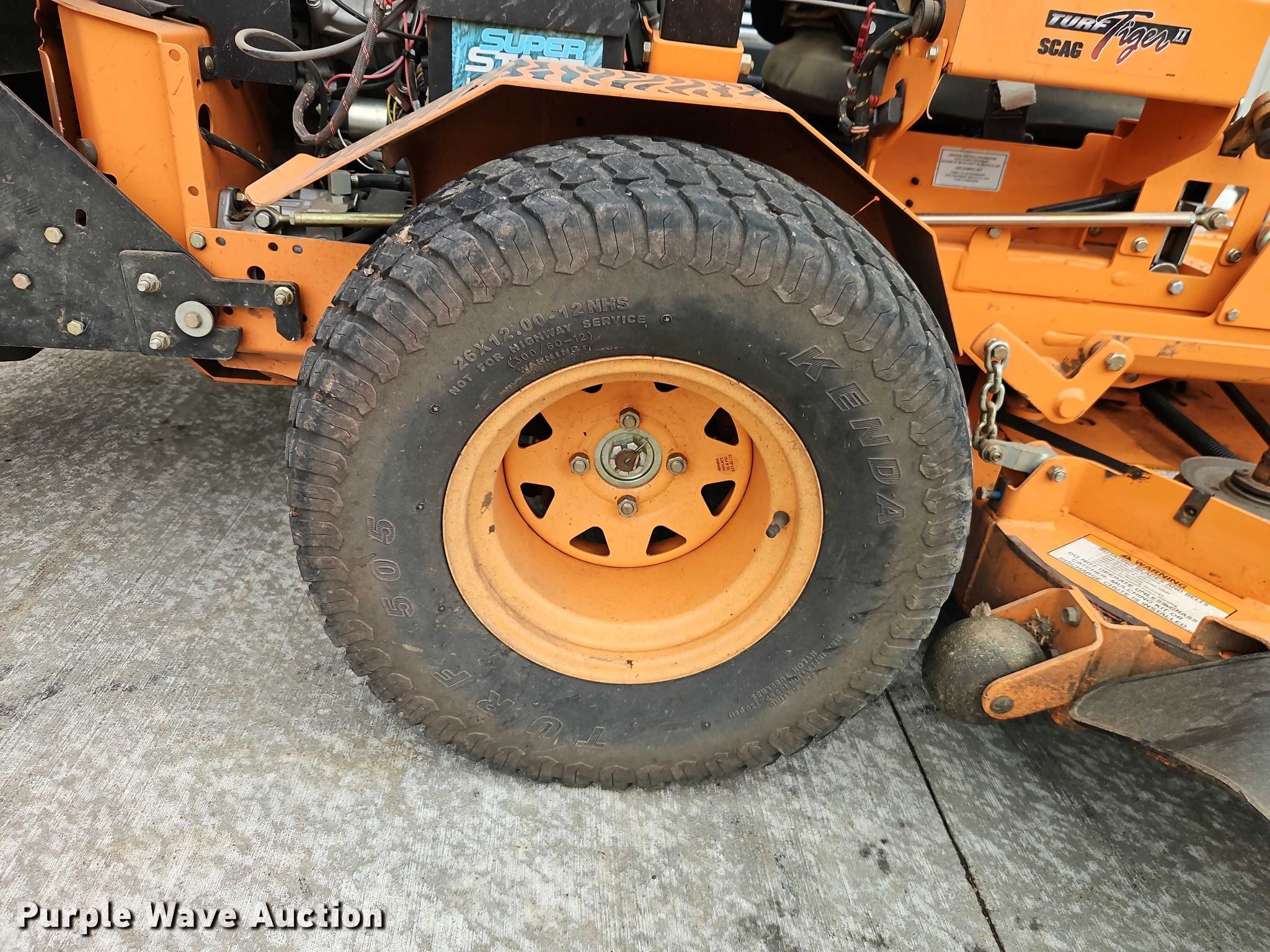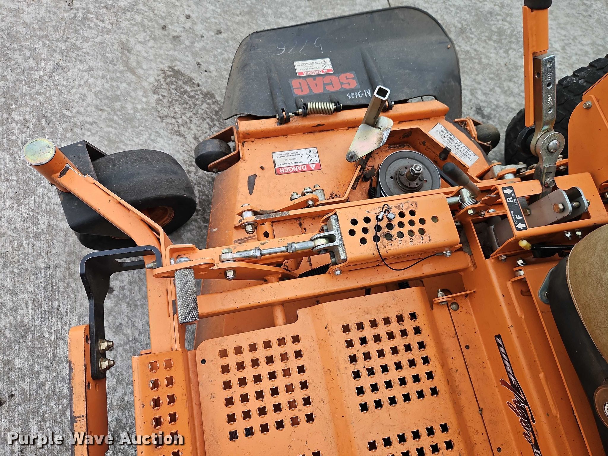 Purple Wave is selling a used Commercial Turf Mower in Kansas. This item is a Scagg Turf Tiger II ZTR lawn mower with the following: Hours: 894 on meter, Cutting width: 61", Serial: N0900133