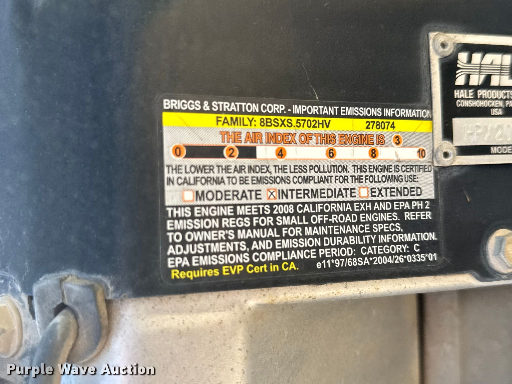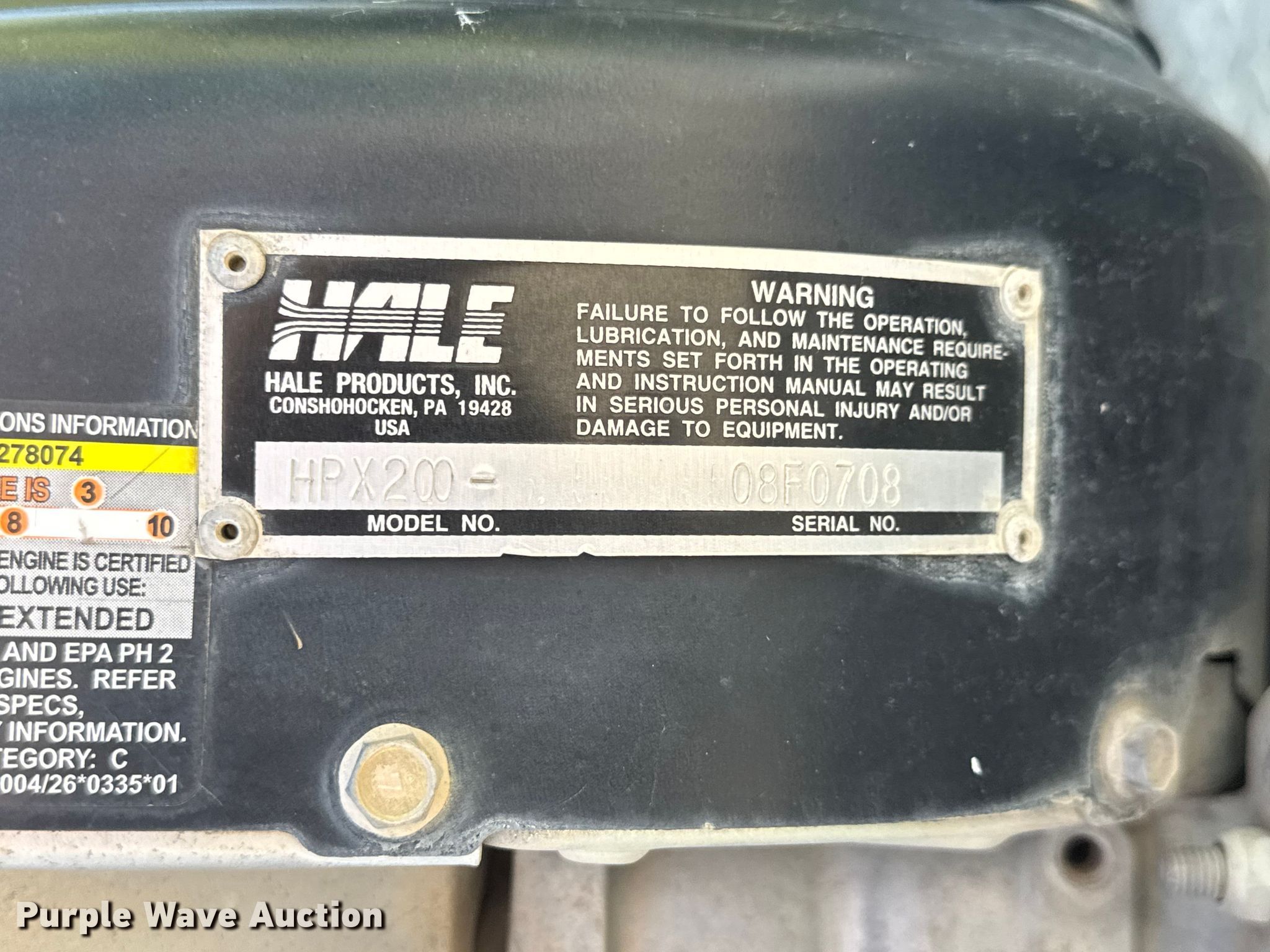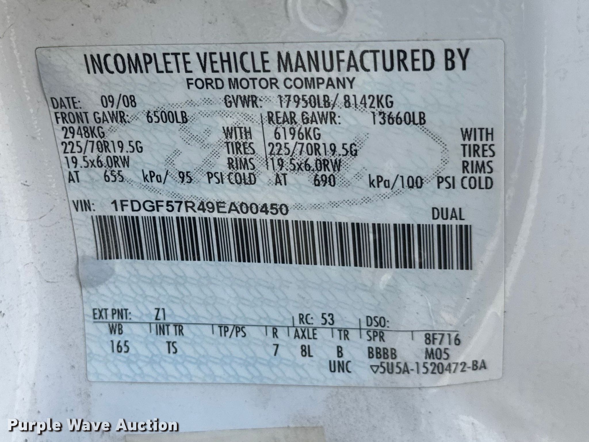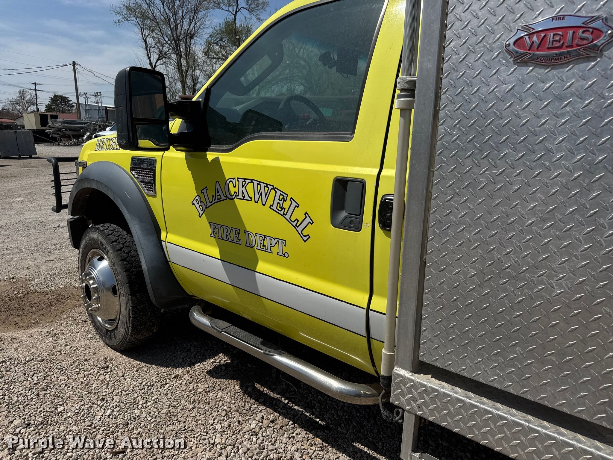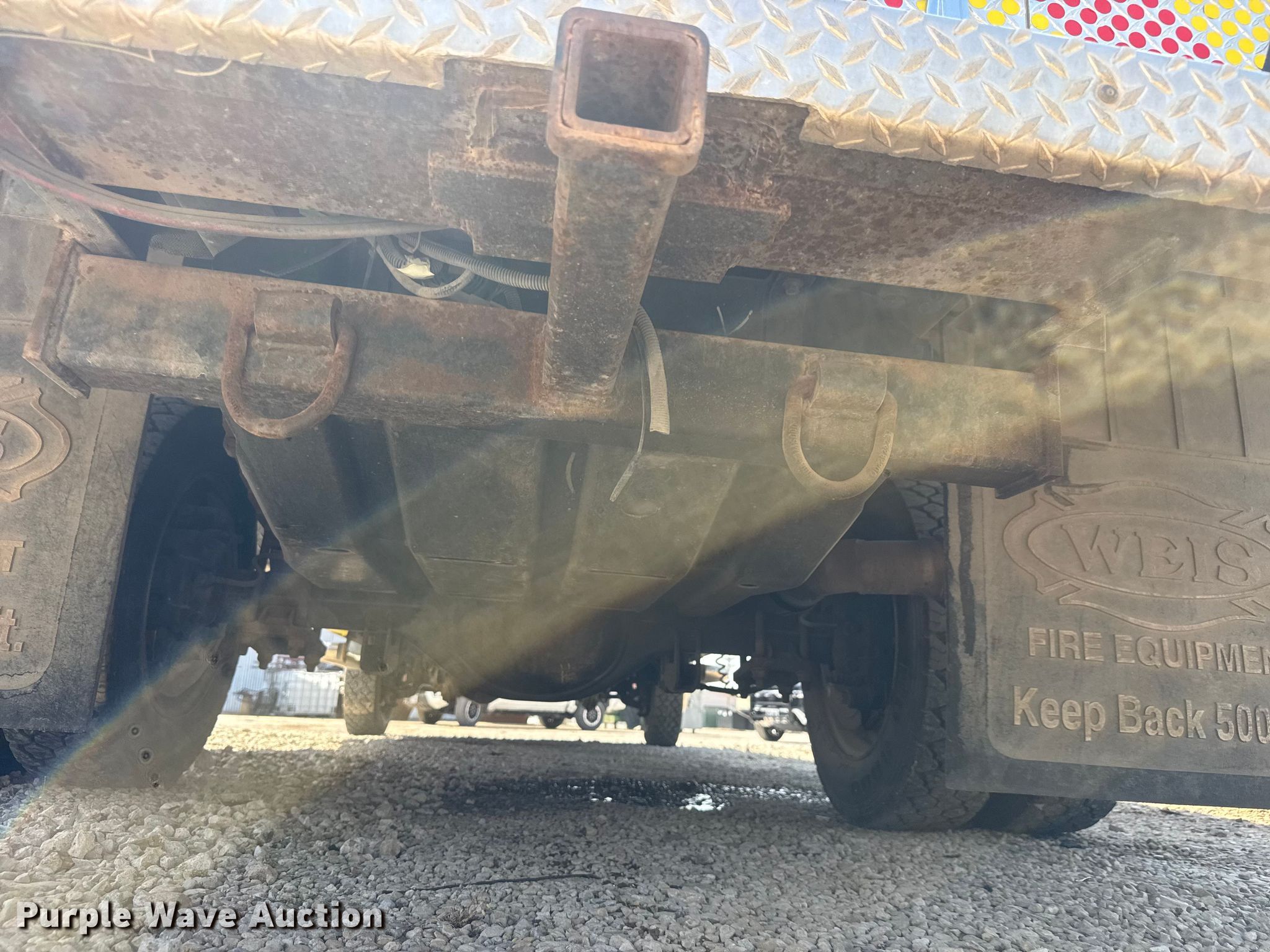 2009 Ford F550 brush fire truck. Miles: 42,390 on odometer, Hours: 4,135 on meter, VIN: 1FDGF57R49EA00450. Engine Displacement: 6.4L, Cylinders: 8, Fuel type: Diesel. Transmission Automatic. Chassis Four wheel drive, Axles: Single, Suspension: Spring, Brakes: Hydraulic, GVWR: 17,950 lbs. Interior AC, Heat, Auxiliary controls. Features Fire truck body Weis, Tank Capacity: 500 gallons, Pump, Briggs & Stratton Vanguard engine Cylinders: 2, Fuel type: Gas, HP: 18, Unknown operating condition, Hale HPX200 pump Unknown operating condition. Tires Size: 225/70R19.5. Notes Engine issues , Oil leak, Unit must be towed or hauled. Oklahoma title. Title distribution may be delayed up to 30 days from verification of funds. Blackwell, OK 74631