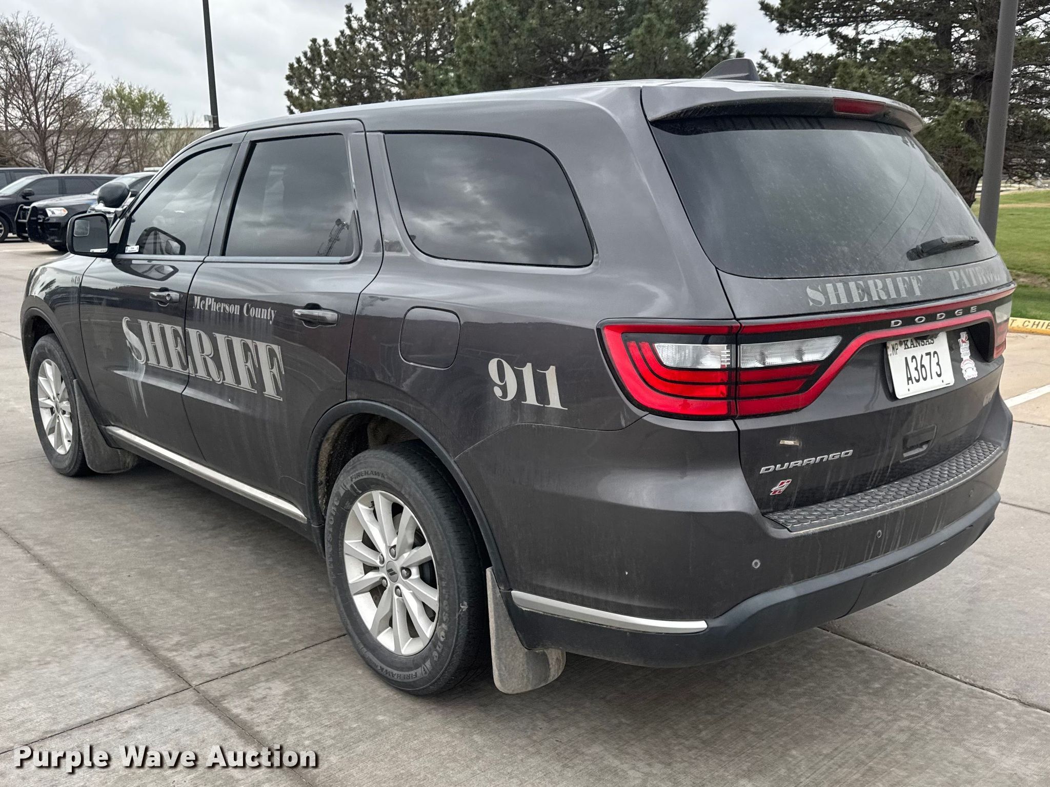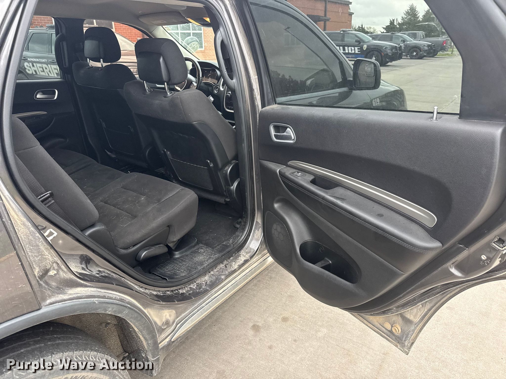2019 Dodge Durango SSV SUV. Miles: 168,967 on odometer, VIN: 1C4RDJFG6KC738926. Engine Displacement: 3.6L, Cylinders: 6, Fuel type: Gas, HP: 295. Transmission Automatic, All wheel drive. Interior AC, Heat, Seat: Power driver, Heated mirrors, Power windows, Power locks, Cruise control, Backup camera. Tires Size: 255/60R18. Notes Decals will be removed prior to auction, Dash warning indicator: TPMS, Unknown operating condition of AC. Kansas title. Title distribution may be delayed up to 14 days from verification of funds. McPherson County Sheriff's Office. McPherson, KS 67460