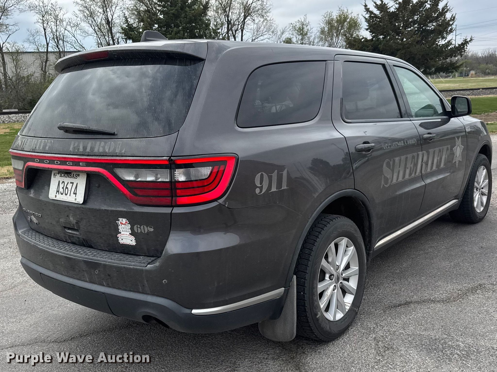 2019 Dodge Durango SSV SUV. Miles: 131,167 on odometer, VIN: 1C4RDJFG8KC738927. Engine Displacement: 3.6L, Cylinders: 6, Fuel type: Gas, HP: 295. Transmission Automatic, All wheel drive. Interior AC, Heat, Seat: Power driver, Heated mirrors, Power windows, Power locks, Cruise control, Backup camera. Tires Size: 255/60R18. Notes Decals will be removed prior to auction, Dash warning indicator: Automatic Start/Stop fault, Unknown operating condition of AC. Kansas title. Title distribution may be delayed up to 14 days from verification of funds. McPherson County Sheriff's Office. McPherson, KS 67460