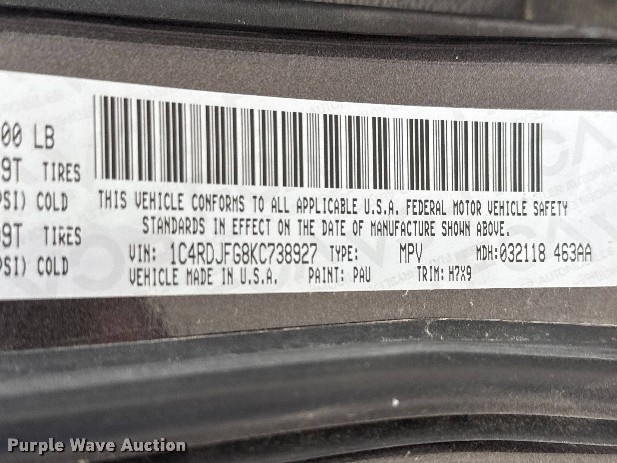 - VIN: 1C4RDJFG8KC738927