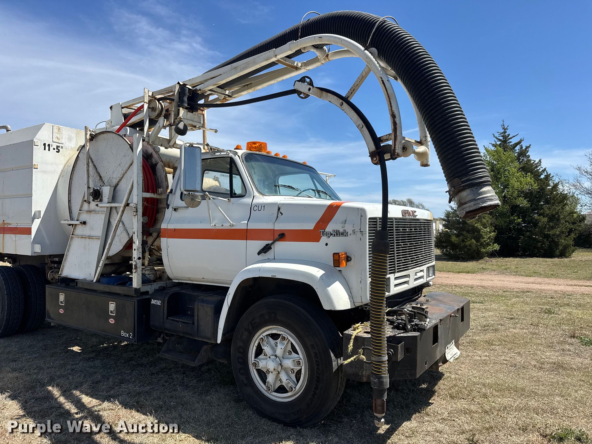 Purple Wave is selling a used Vacuum Truck in Kansas. This item is a 1984 GMC Top Kick sewer jetter truck with the following: Miles: 12,829 on odometer, Miles: Actual unknown, Hours: 4,268 on meter, VIN: 1GDP7D1Y0EV504463