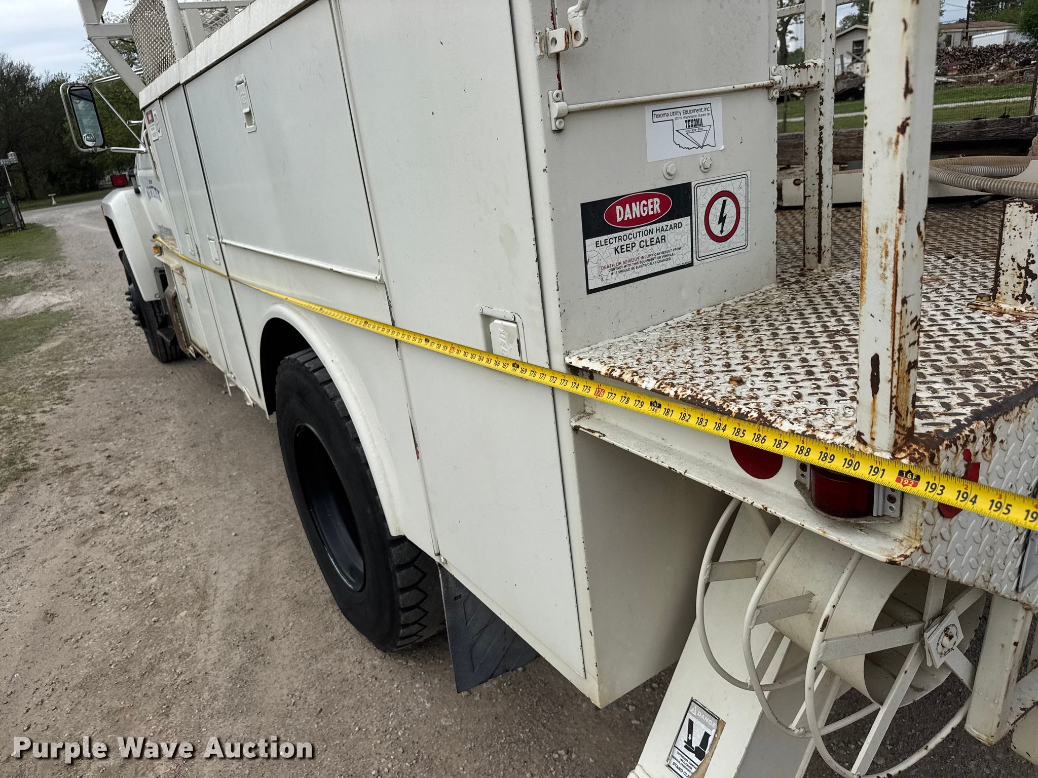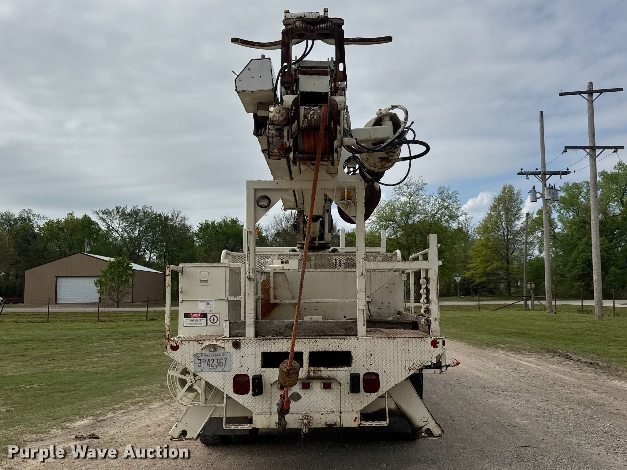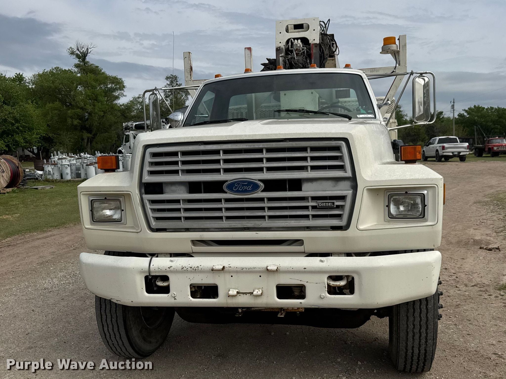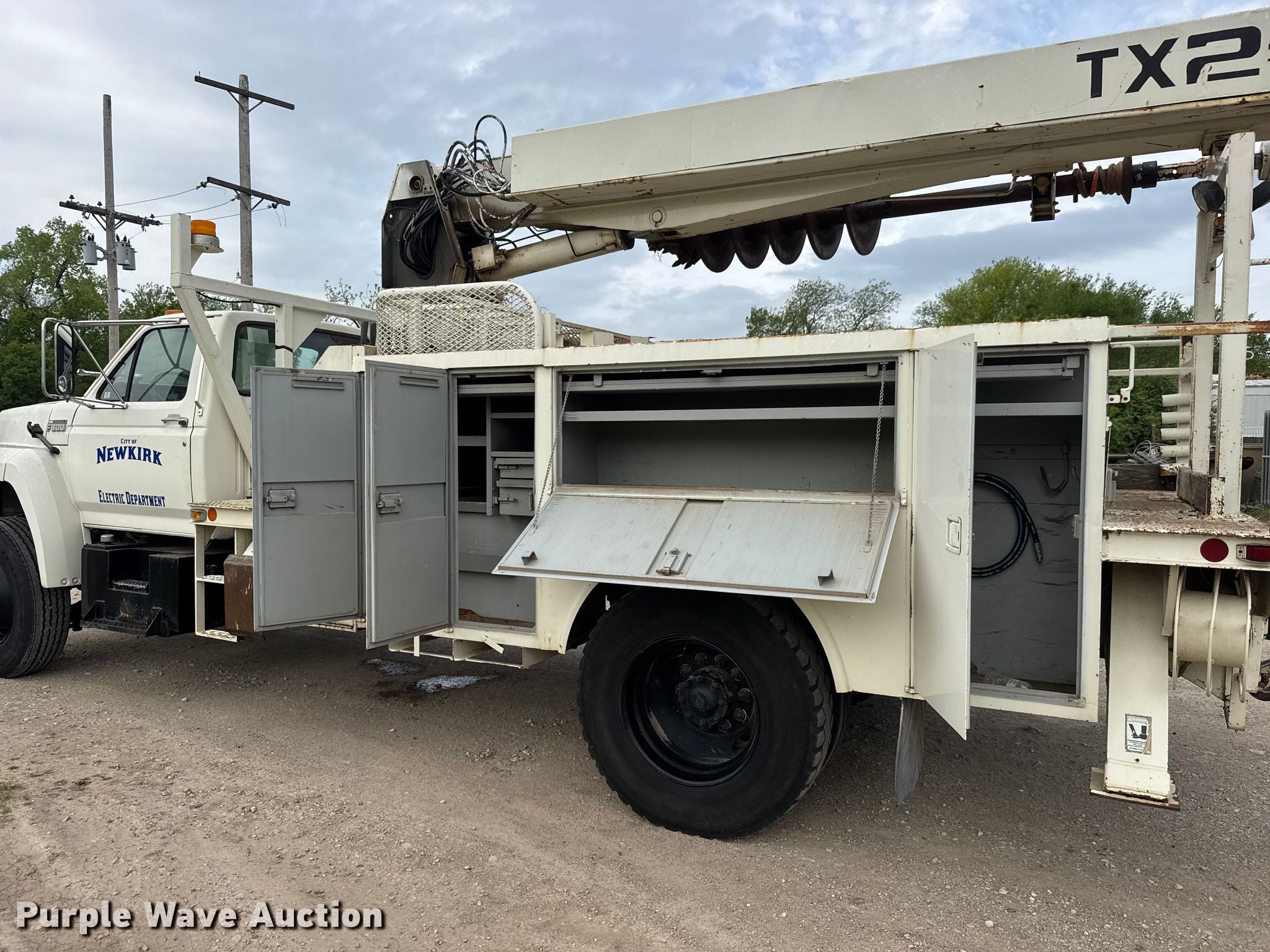 Purple Wave is selling a used Digger Derrick Truck in Oklahoma. This item is a 1991 Ford F800 digger derrick truck with the following: Miles: 48,632 on odometer, Hours: 5,491 on meter, VIN: 1FDXK84A5MVA26303