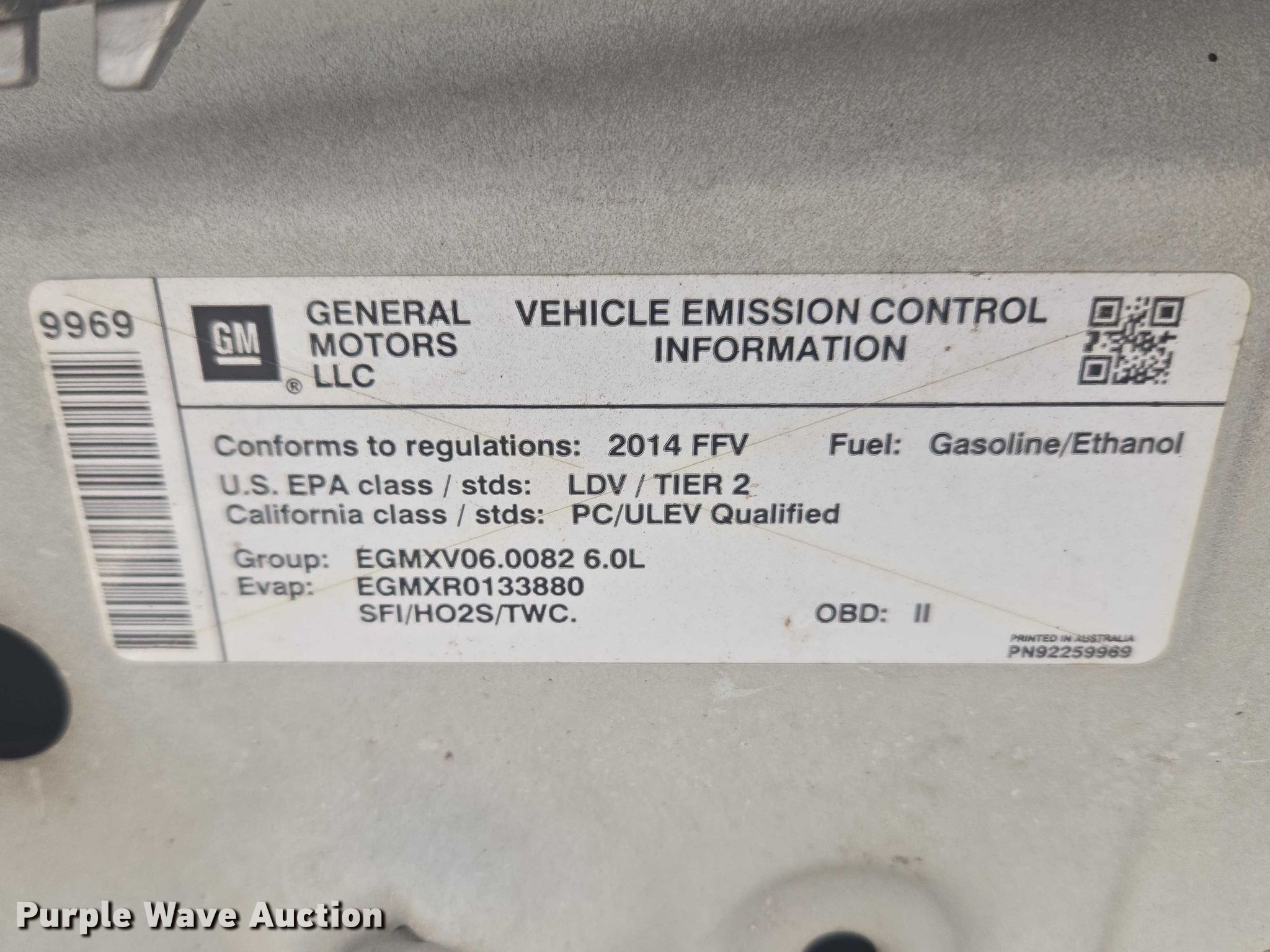2014 Chevrolet Caprice Police. Miles: 117,383 on odometer, VIN: 6G3NS5U25EL929750. Engine Model: L77, Displacement: 6.0L, Cylinders: 8, Fuel type: Gas. Transmission Automatic. Interior AC, Heat, Seat: Power driver, Power passenger, Power windows, Power locks, Cruise control. Tires Size: P235/50R18. Notes Dash warning indicator: TPMS, Center console missing. Oklahoma title. Seller is a government entity who will be assigning and distributing the title. Please contact the seller for distribution questions. City of Skiatook, OK. Skiatook, OK 74070