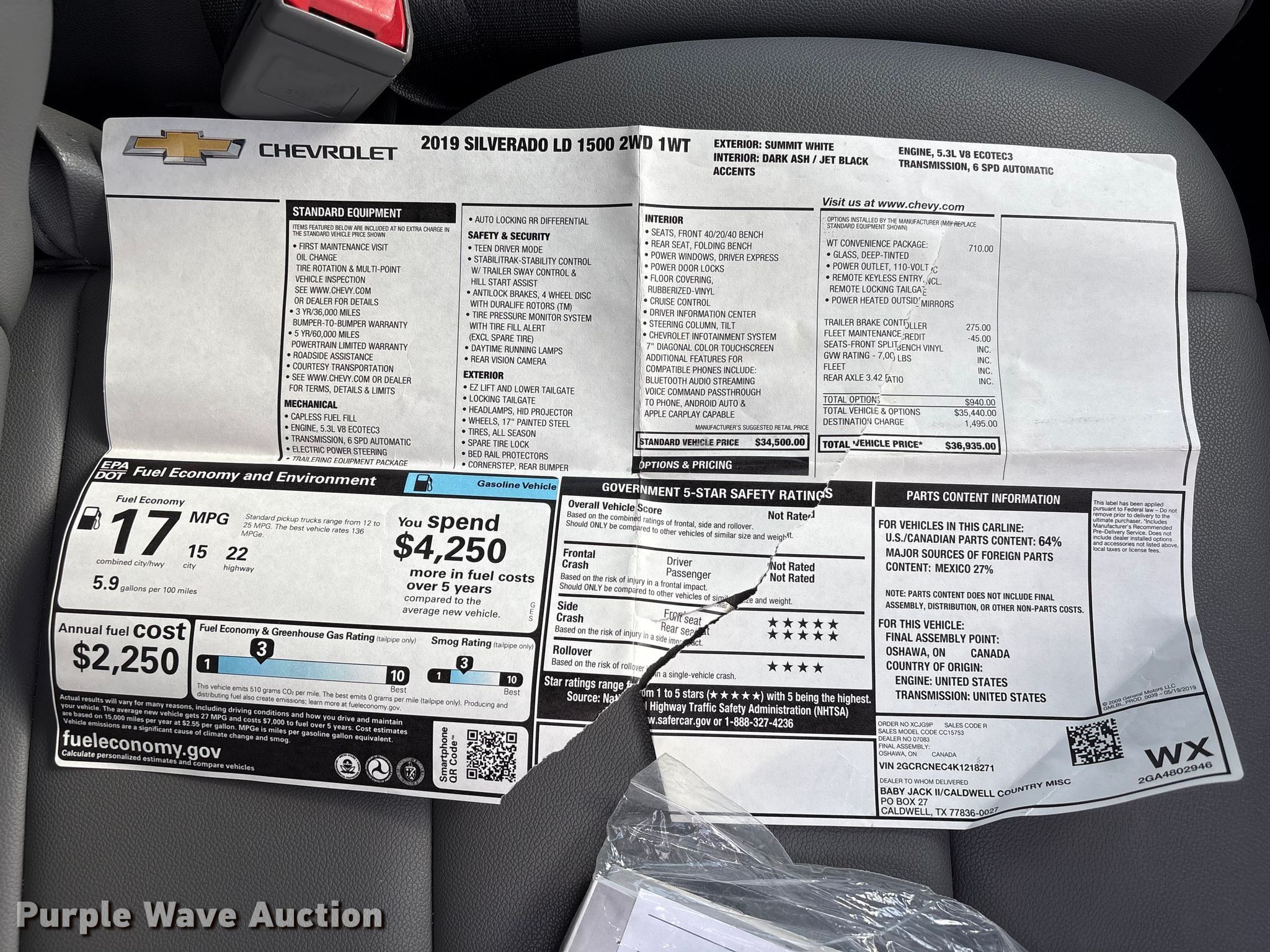 This 2019 Chevrolet Silverado 1500 Ext. Cab pickup truck will sell to the highest bidder regardless of price.