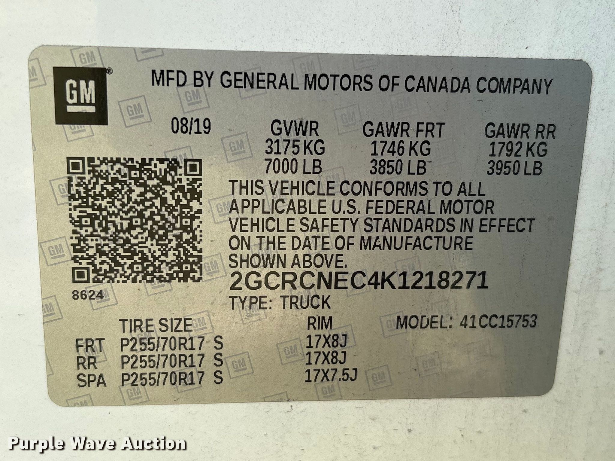 - VIN: 2GCRCNEC4K1218271