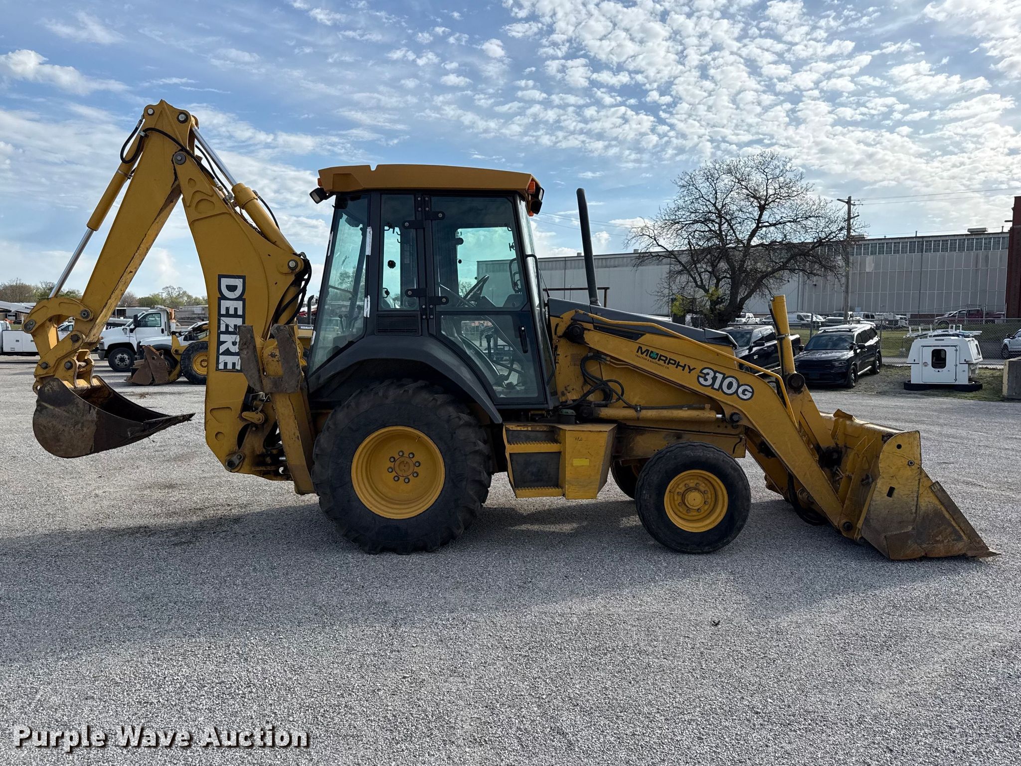 2004 John Deere 310G backhoe. Hours: 4,569 on meter, Serial: T0310GX938264. Engine John Deere, Cylinders: 4, Fuel type: Diesel. Transmission Shuttle shift, 4F - 4R. Chassis Differential lock. Operators station Enclosed cab, AC, Heat, Backhoe controls: Three stick. Features Loader Auxiliary hydraulics, Bucket John Deere, Four-in-one, Width: 86", Cutting edge: Bolt-on, Backhoe Quick coupler: Manual, Bucket John Deere, Width: 24".. Tires Front: 11L-16, Rear: 19.5L-24. City of Pittsburg. Pittsburg, KS 66762