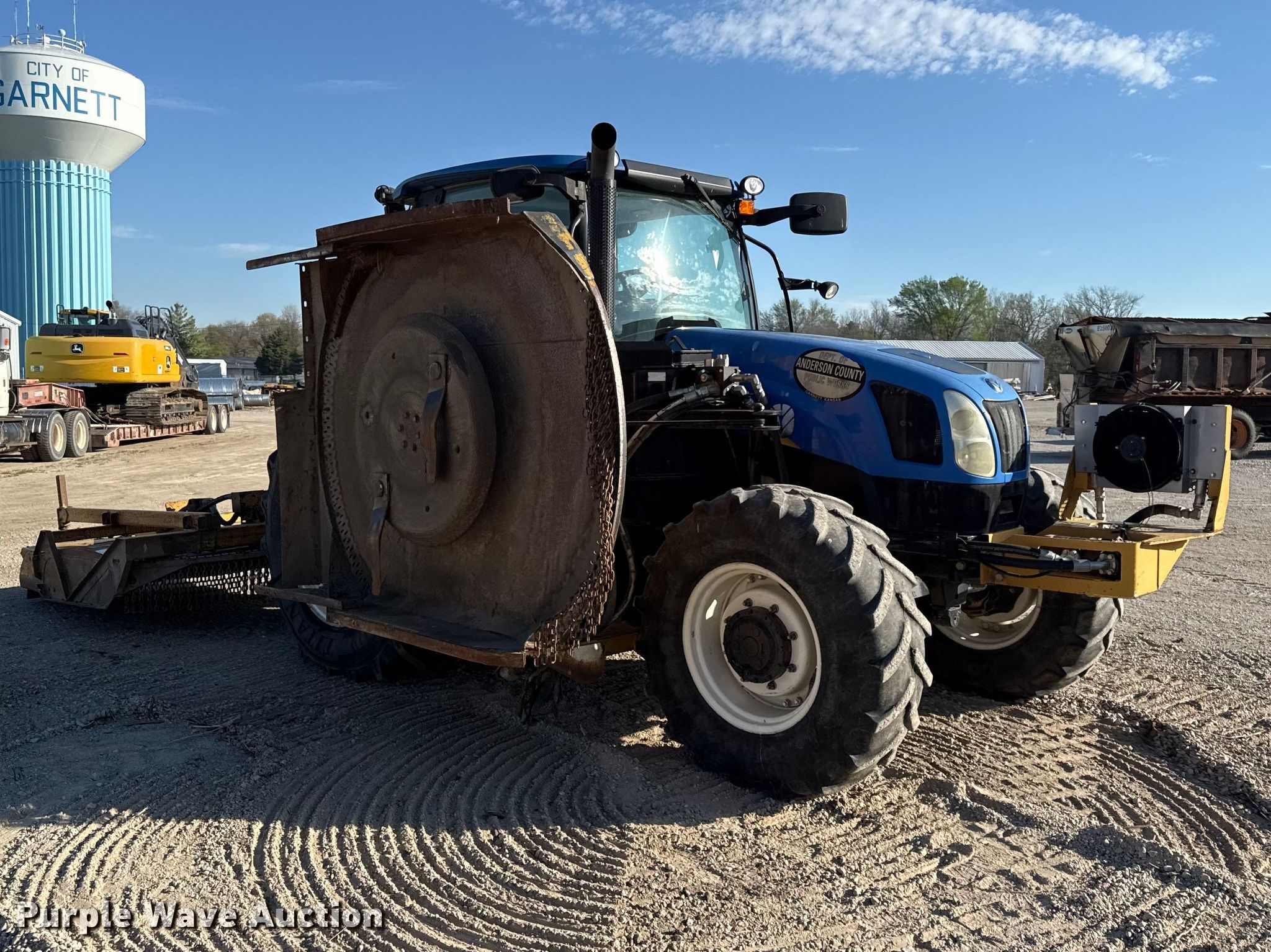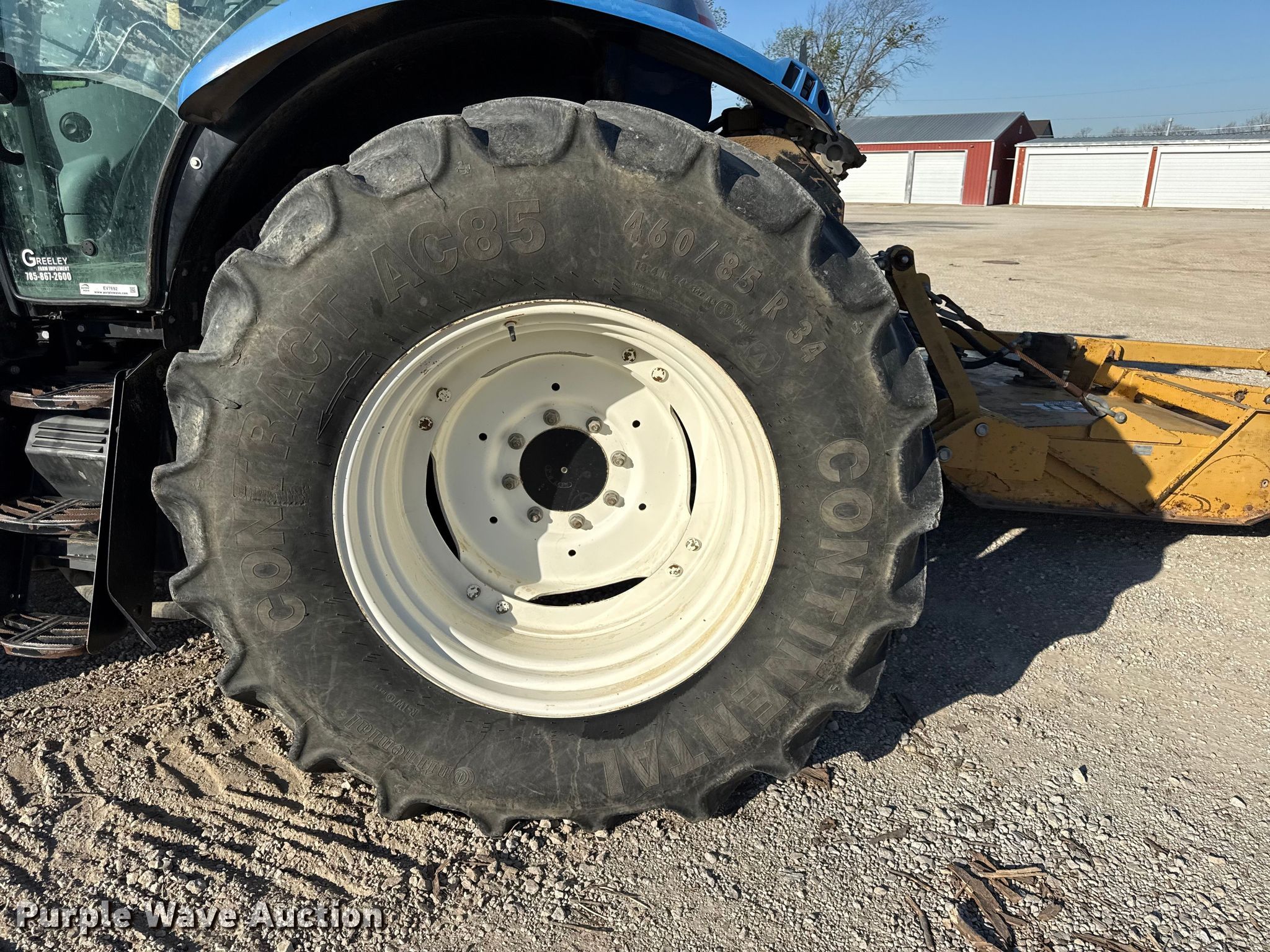 New Holland T6.155 MFWD tractor. Hours: 5,699 on meter. Engine New Holland, Cylinders: 6, Fuel type: Diesel. Transmission Powershift, 16F - 16R, Left-hand reverser, Differential lock. Operators station AC, Heat. Features PTO: 540, 1000, Three point Top link, Seven pin outlet, Hydraulic remote sets Rear: 2, Tiger rotary side boom mower Width: 66", Tiger rotary mower Width: 62". Tires Front: 380/85R24, Rear: 460/85R34. Anderson County, KS. Garnett, KS 66032