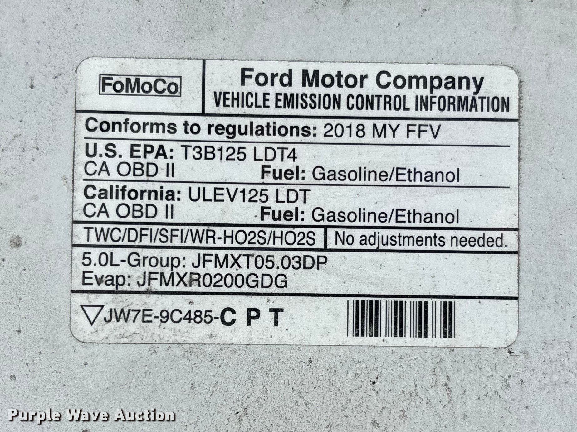 2018 Ford F150 Ext. Cab pickup truck. Miles: 169,518 on odometer, Hours: 8,334 on meter, VIN: 1FTFX1E51JKD26086. Engine Displacement: 5.0L V8, Cylinders: 8, Fuel type: Gas. Transmission Automatic, Four wheel drive. Interior AC, Heat, Power windows, Power locks, Cruise control, Backup camera. Features Bed Length: 6' 6". Tires Size: 265/70R17. Notes Dash warning indicator: Check engine, Transmission issues. Missouri title. Title distribution may be delayed up to 14 days from verification of funds. City of Columbia, MO. Columbia, MO 65203
