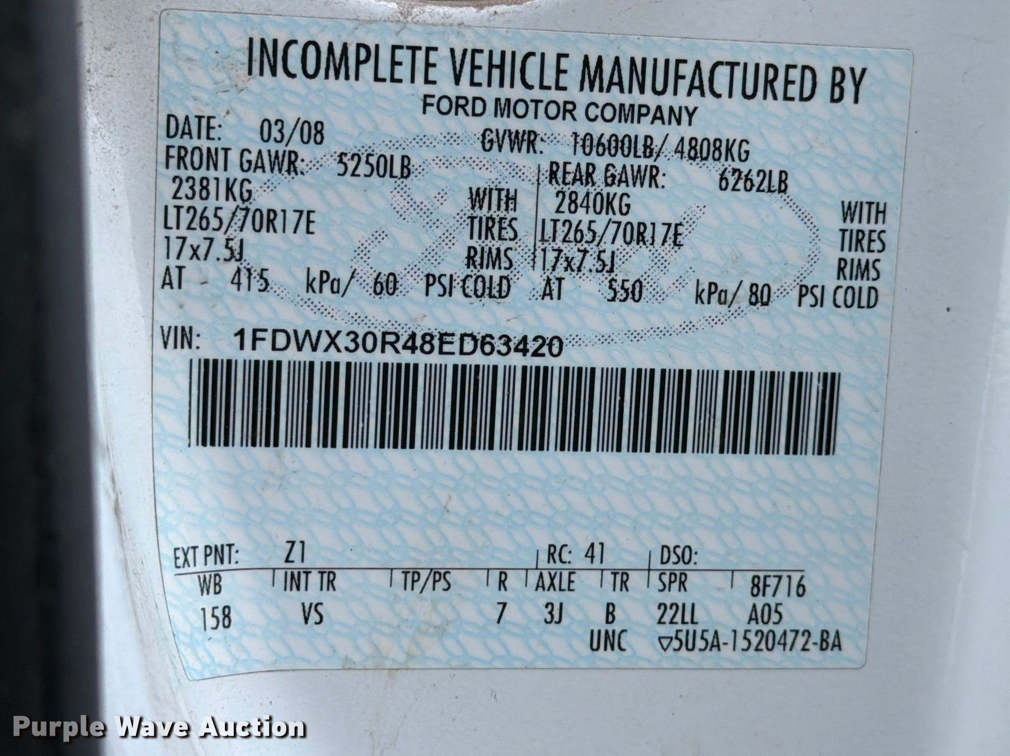 - VIN: 1FDWX30R48ED63420
