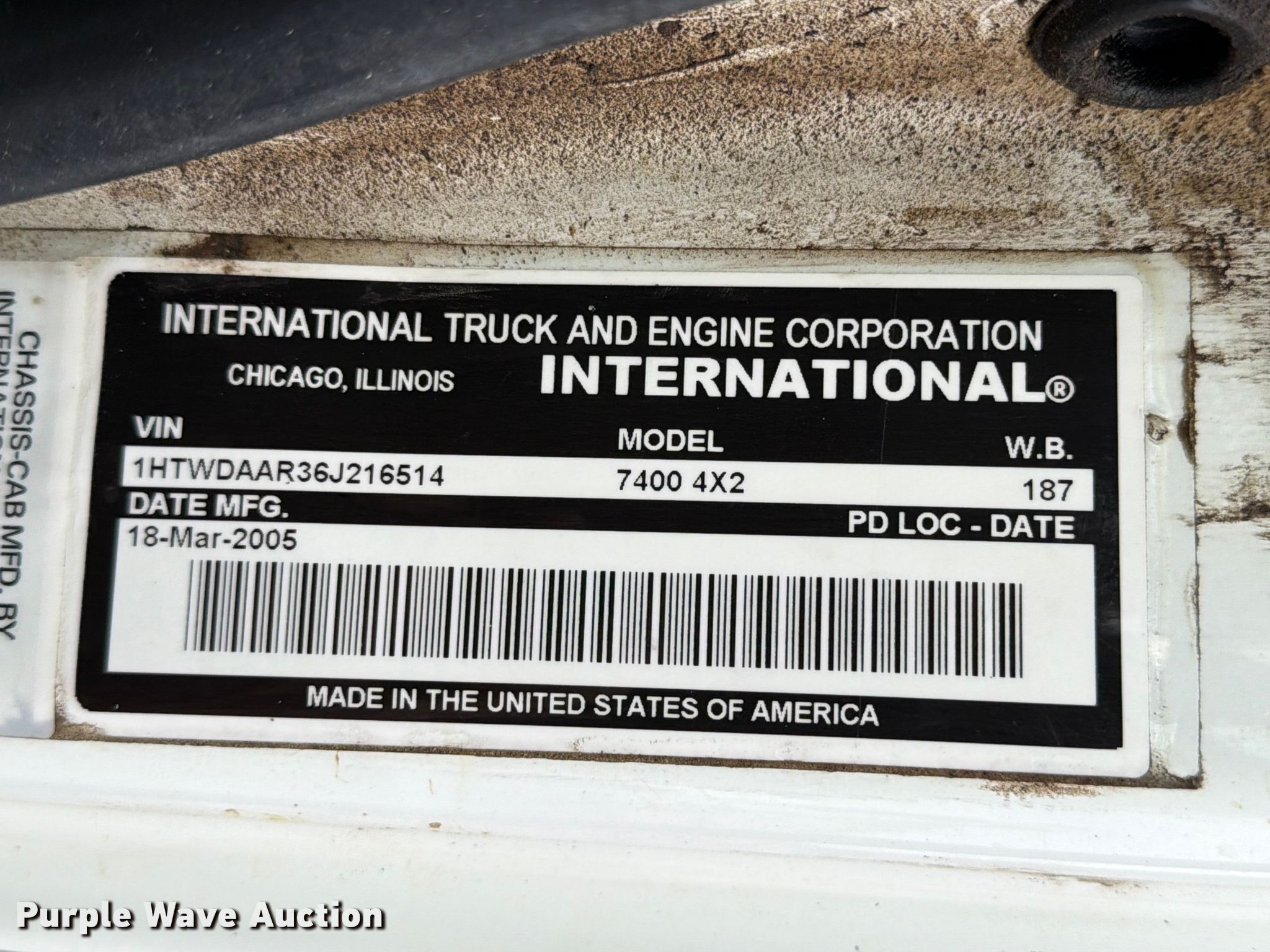 Purple Wave is selling a used Construction Dump Truck in Illinois. This item is a 2006 International 7400 dump truck with the following: Miles: 86,378 on odometer, Hours: 7,380 on meter, VIN: 1HTWDAAR36J216514, Unit #: LB18