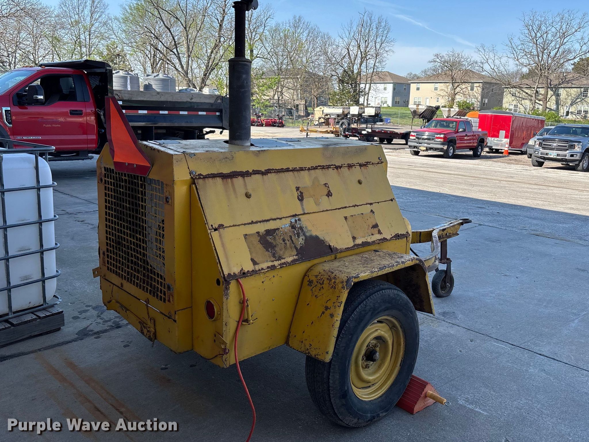 Onan generator. Serial: 780-053445. Engine Cylinders: 4, Fuel type: Diesel. Features Generator Onan, kVA: 12, kW: 12, Volts: 120/240, Phase: Single, Electric start, Fuel tank. Trailer Shop built, 10' L x 63" W, Hitch: Pintle, Suspension: Spring, Axles: Single, Tire size: 8.25-15. This is worksite support equipment and will not come with a title. Transfer of ownership documentation will be a bill of sale. City of Warrensburg MO. Warrensburg, MO 64093