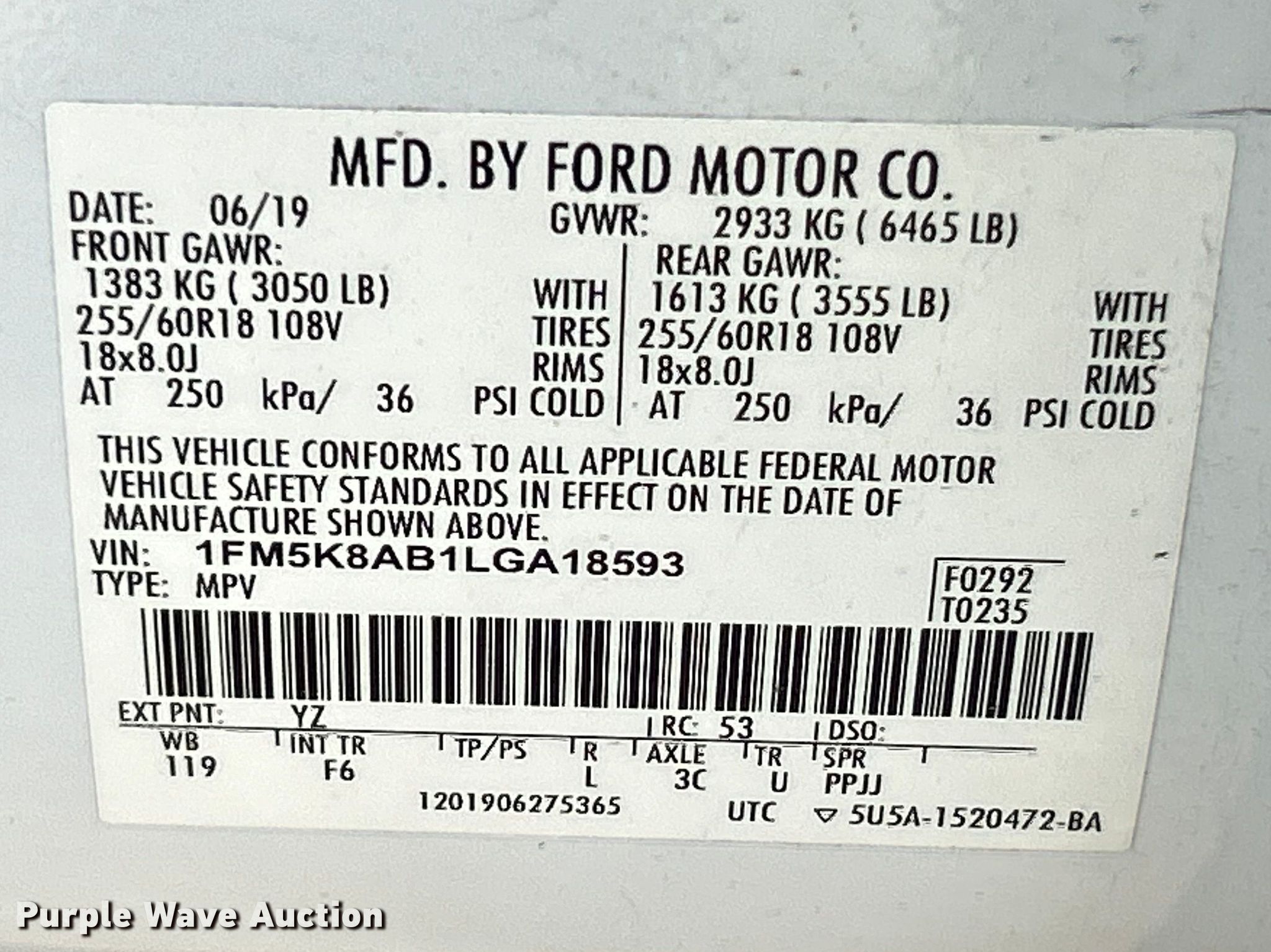 - VIN: 1FM5K8AB1LGA18593