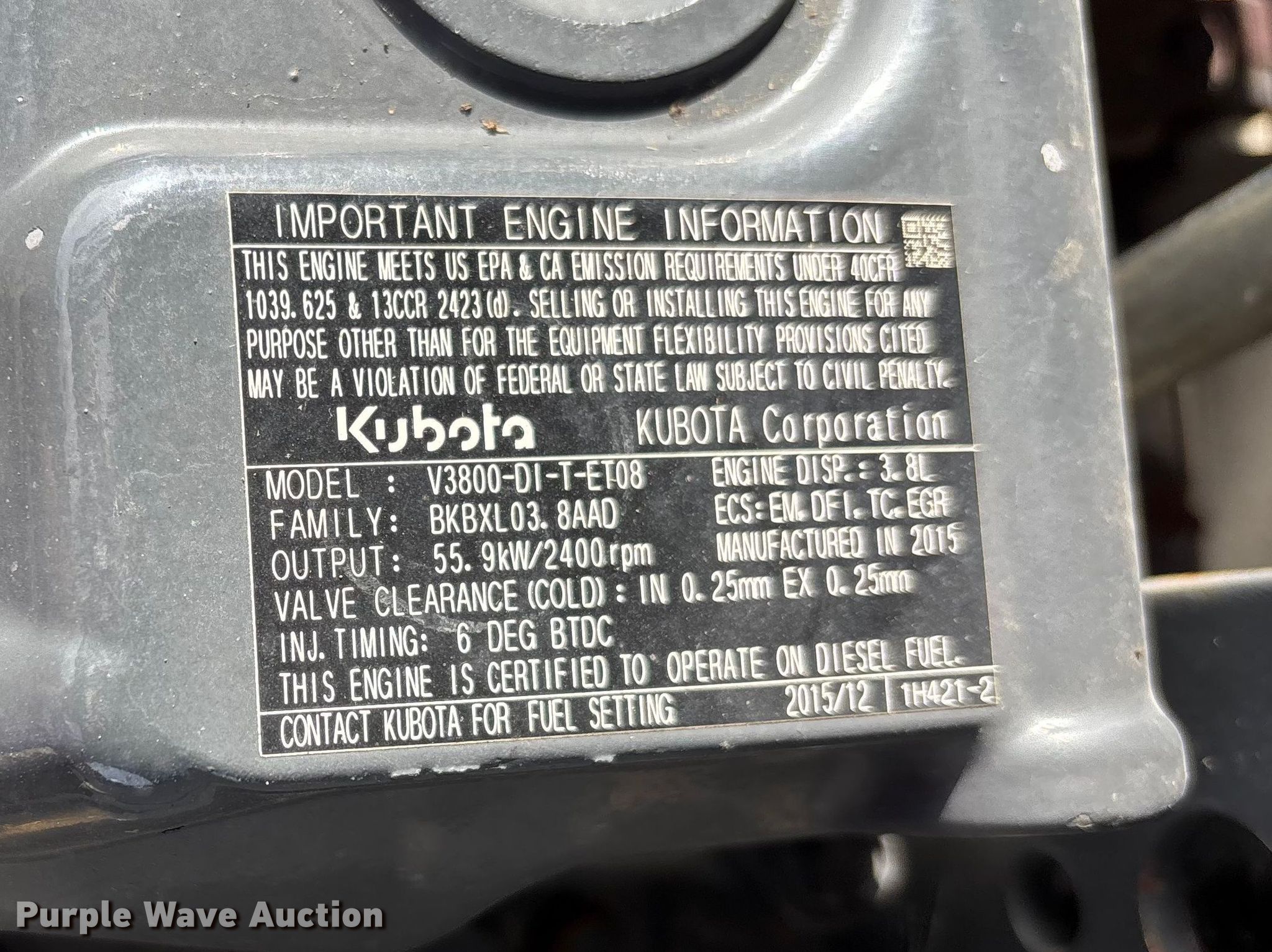 2016 Bobcat V417 telehandler. Hours: 2,753 on meter, Serial: AC1C15702, Unit #: 1325. Engine Kubota V3800T, Serial: 2FY0040, Displacement: 3.8L, Cylinders: 4, Fuel type: Diesel. Operators station Enclosed cab, AC, Heat. Features Maximum lift capacity: 4,500 lbs, Maximum lift height: 18', Boom stages: 2, Grapple bucket size: 81". Tires Size: 14-17.5. Notes Light issues, need repaired, Teeth bent, Hydraulic hoses leak. City of Salina, KS. Salina, KS 67401