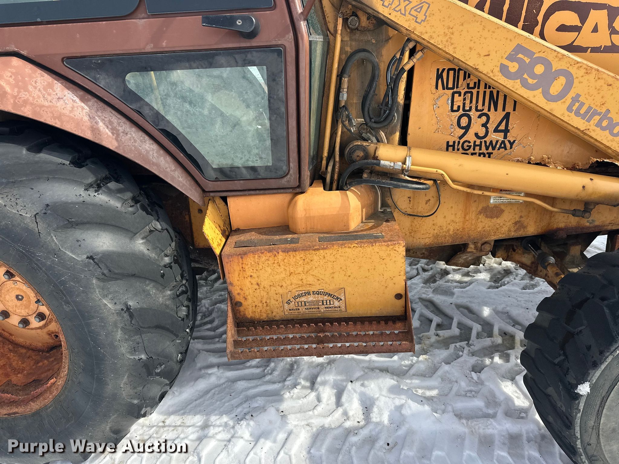 Purple Wave is selling a used Tractor Loader Backhoe in Minnesota. This item is a 1993 Case 590 backhoe with the following: Hours: 3,768 on meter, Serial: JJG0207201