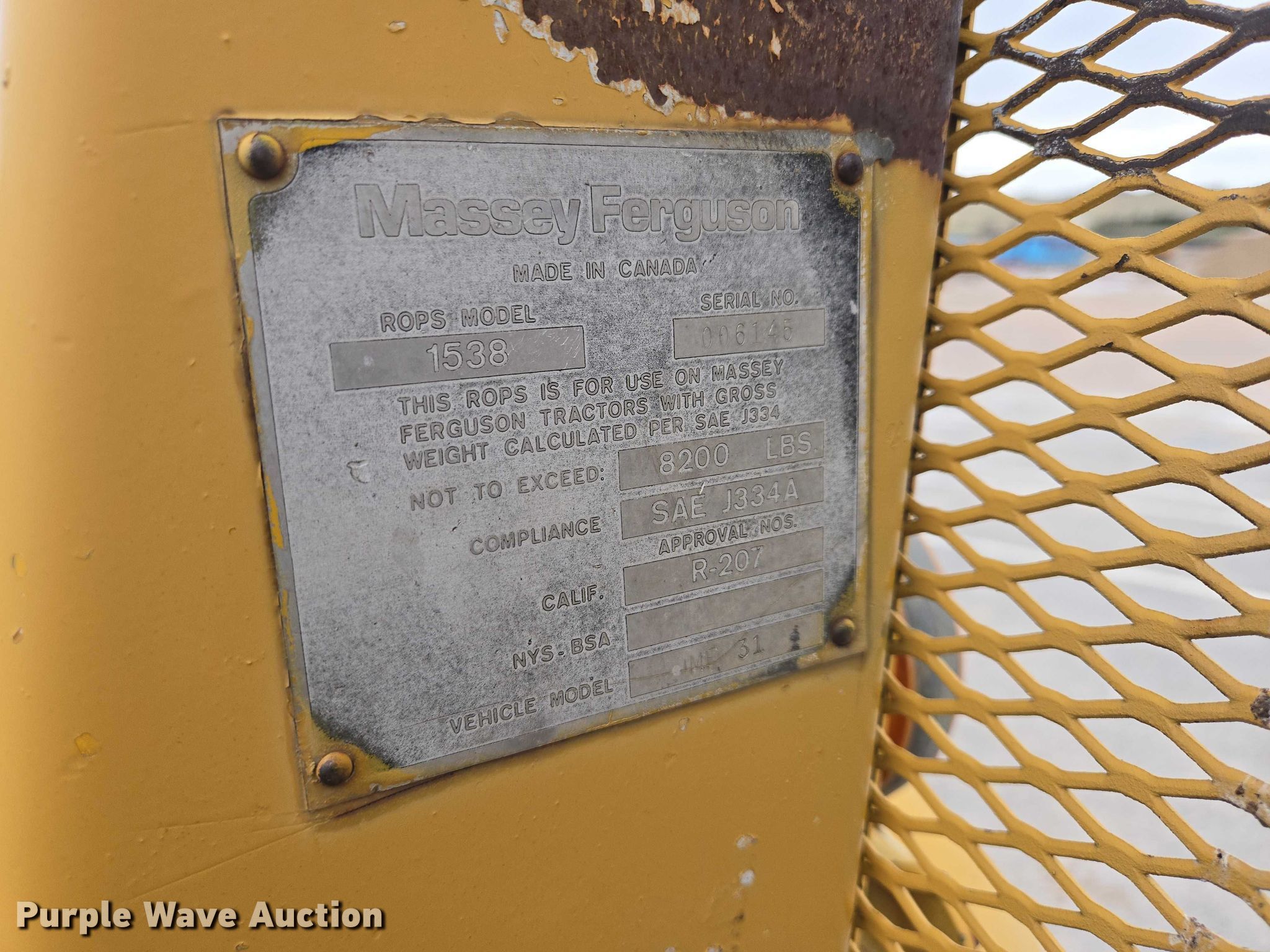 Massey Ferguson tractor. Hours: 5,397 on meter, Serial: 9A 227I90. Engine Cylinders: 4, Fuel type: Diesel. Transmission Manual, 3F - 1R. Features PTO: 540, Three point. Tires Front: 7.50-16, Rear: 16.9-24. City of Chadron, NE. Chadron, NE 69337