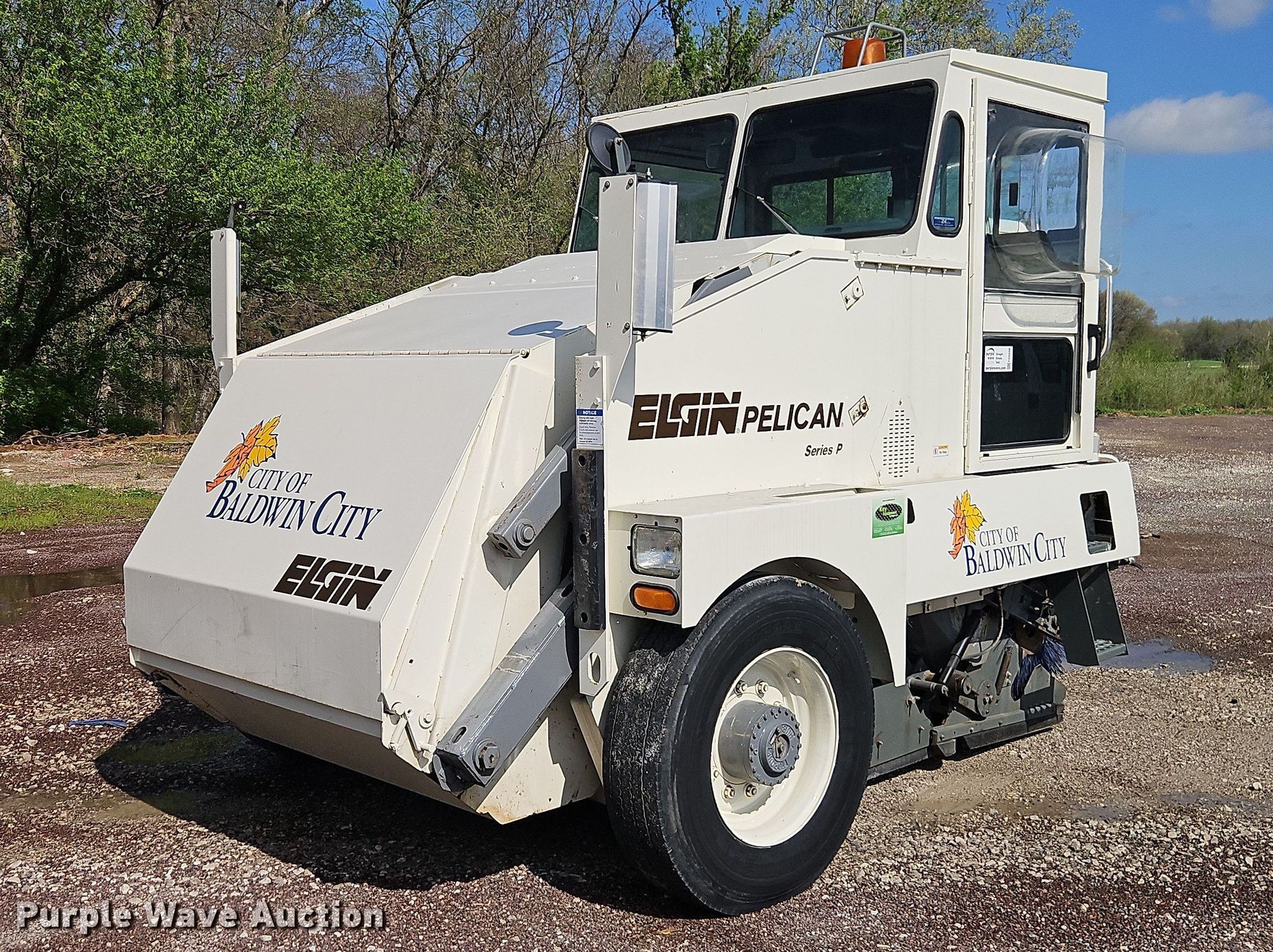 1999 Elgin Pelican street sweeper. Miles: 13,063 on odometer, Hours: 2,618 on meter, Serial: P2351S. Engine John Deere 4045, Cylinders: 4, Fuel type: Diesel. Transmission Hydrostatic. Chassis Brakes: Hydraulic. Operators station Enclosed cab, AC, Heat. Features Sweeper bed type: Conveyor, Broom Width: 65", Right gutter broom Diameter: 36", Water spray system. Tires Front: 11R22.5, Rear: 9R17.5. Notes AC issues, needs charged, Lift cylinders hydraulic leak. This is worksite support equipment and will not come with a title. Transfer of ownership documentation will be a bill of sale. City of Baldwin City, KS. Baldwin City, KS 66006