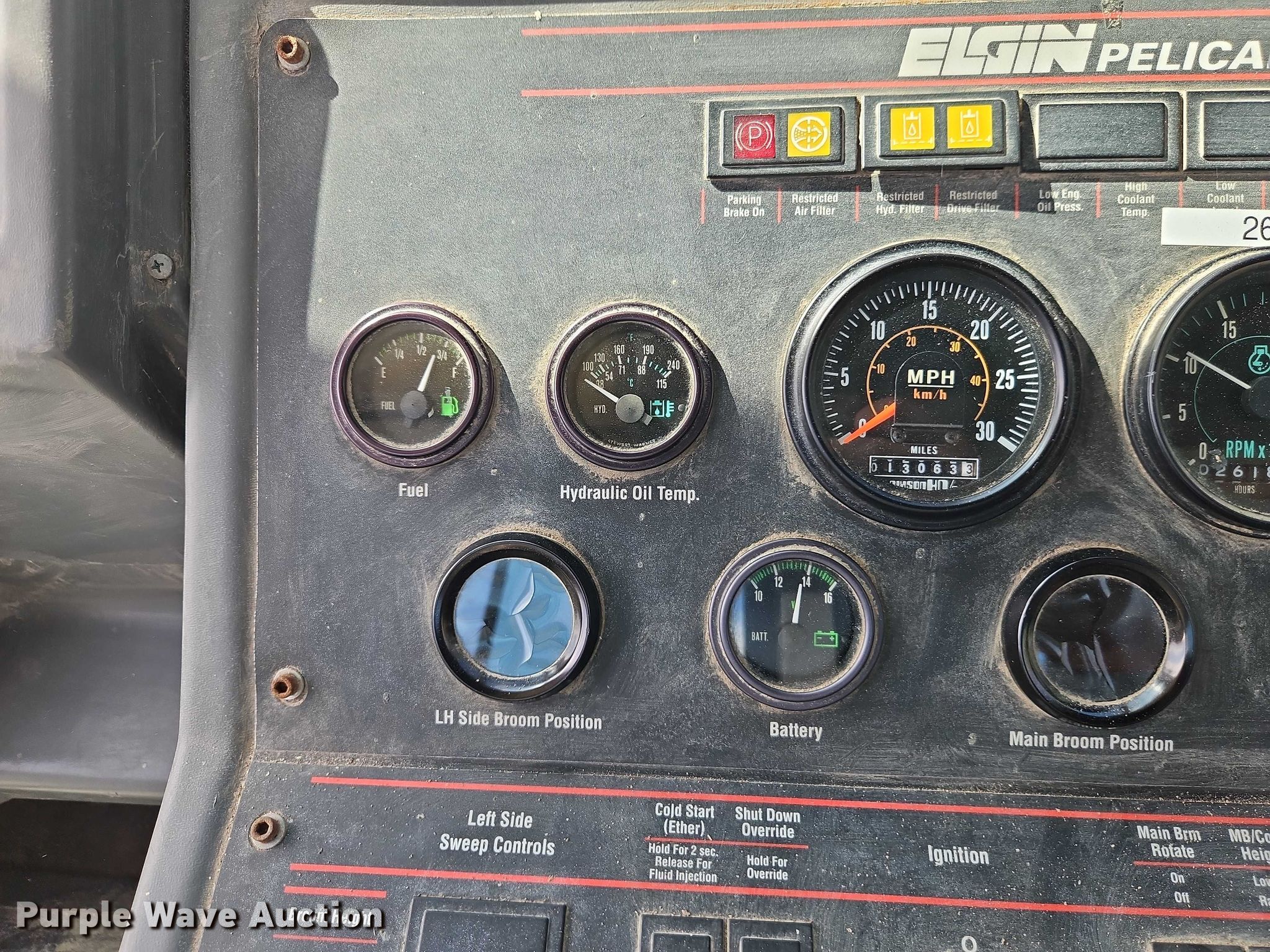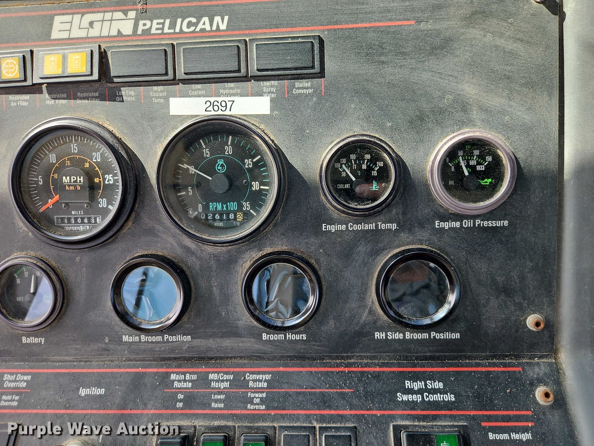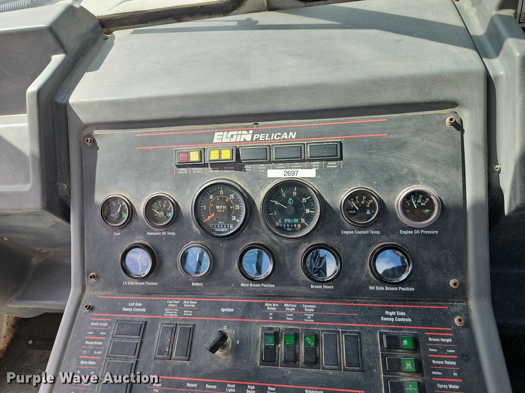 Purple Wave is selling a used Sweeper in Kansas. This item is a 1999 Elgin Pelican street sweeper with the following: Miles: 13,063 on odometer, Hours: 2,618 on meter, Serial: P2351S
