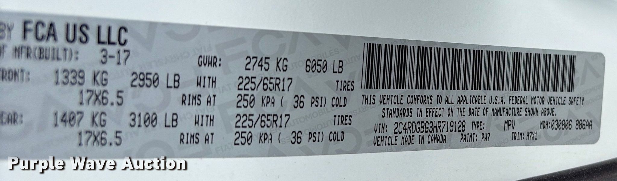 - VIN: 2C4RDGBG3HR719128