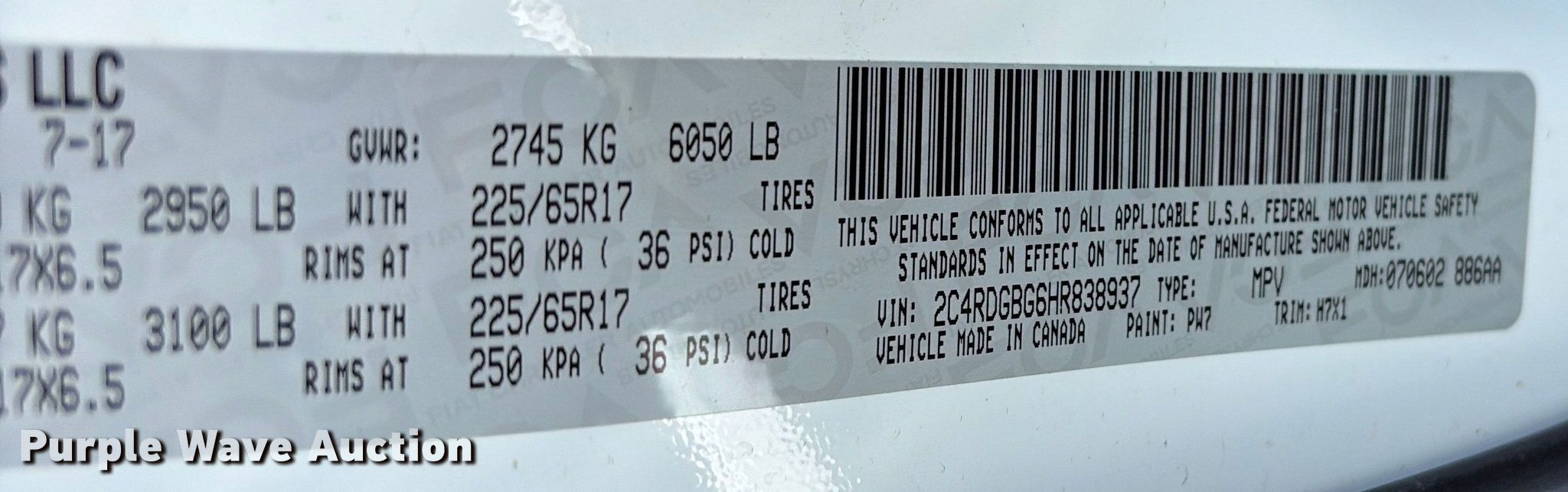 - VIN: 2C4RDGBG6HR838937