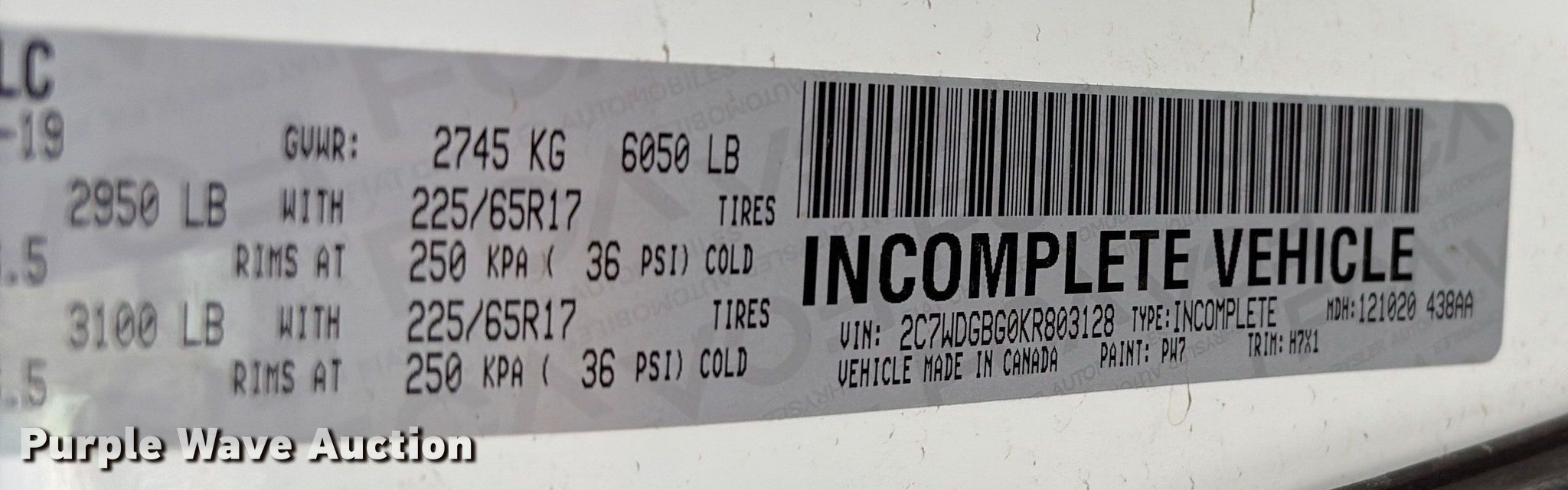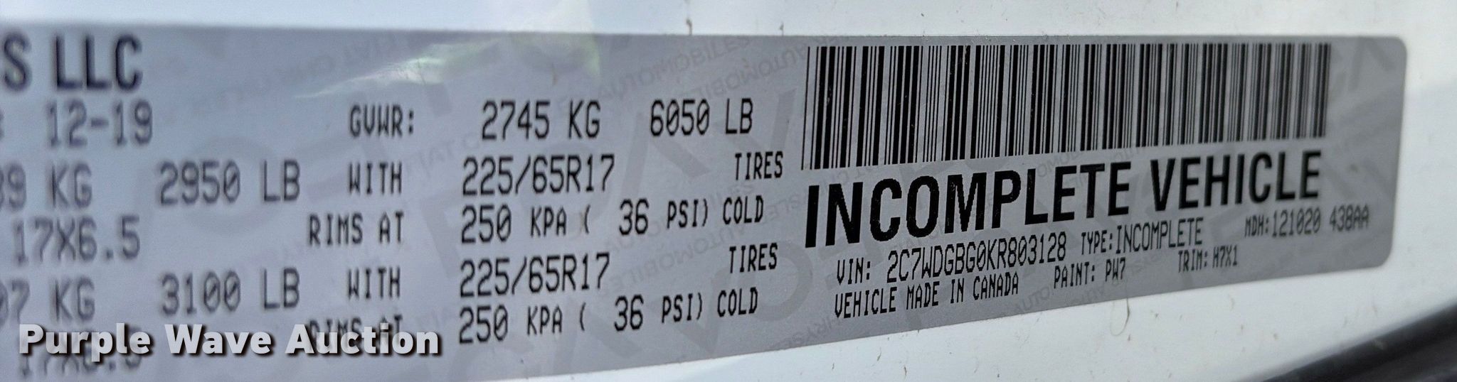- VIN: 2C7WDGBG0KR803128
