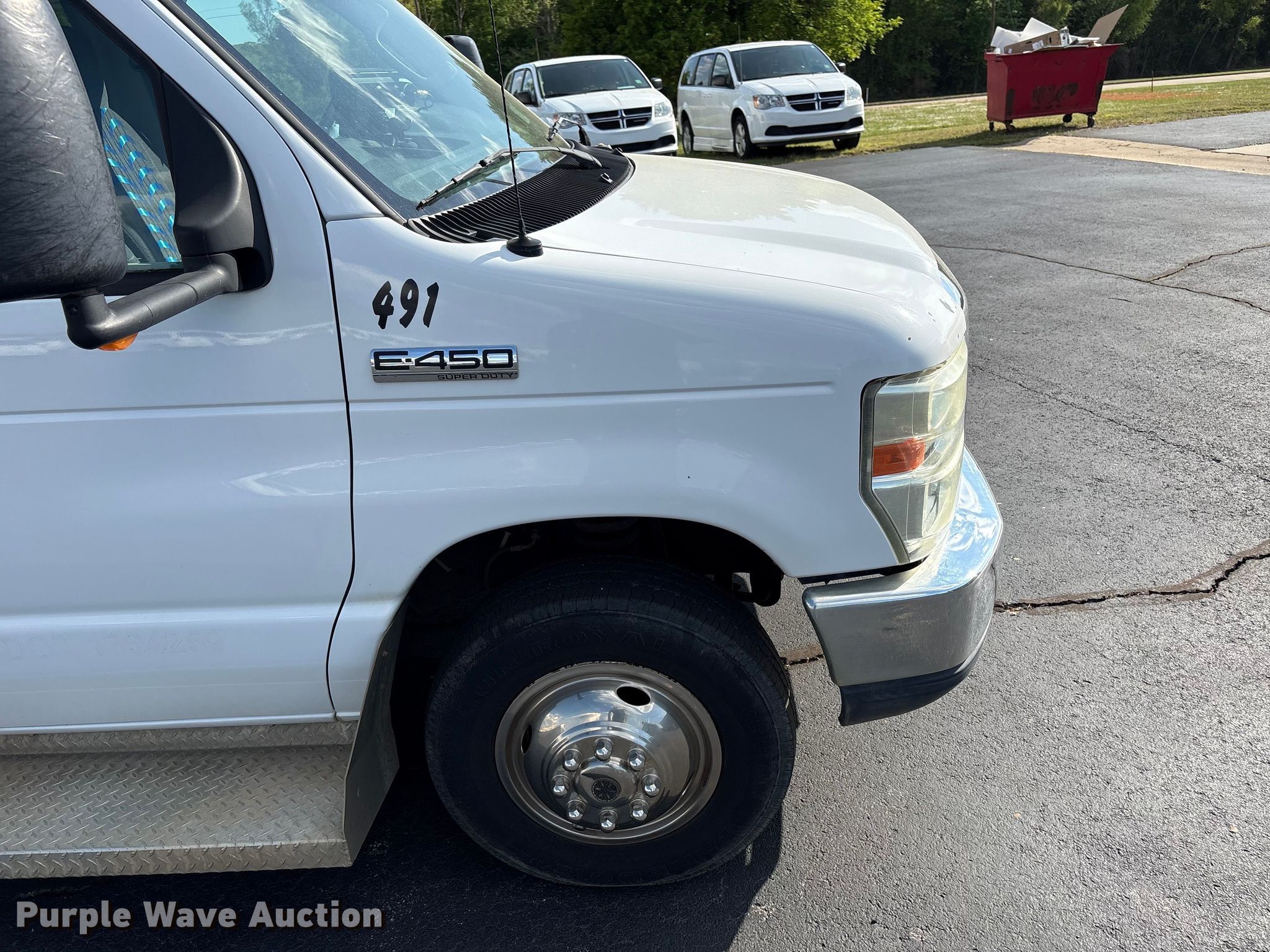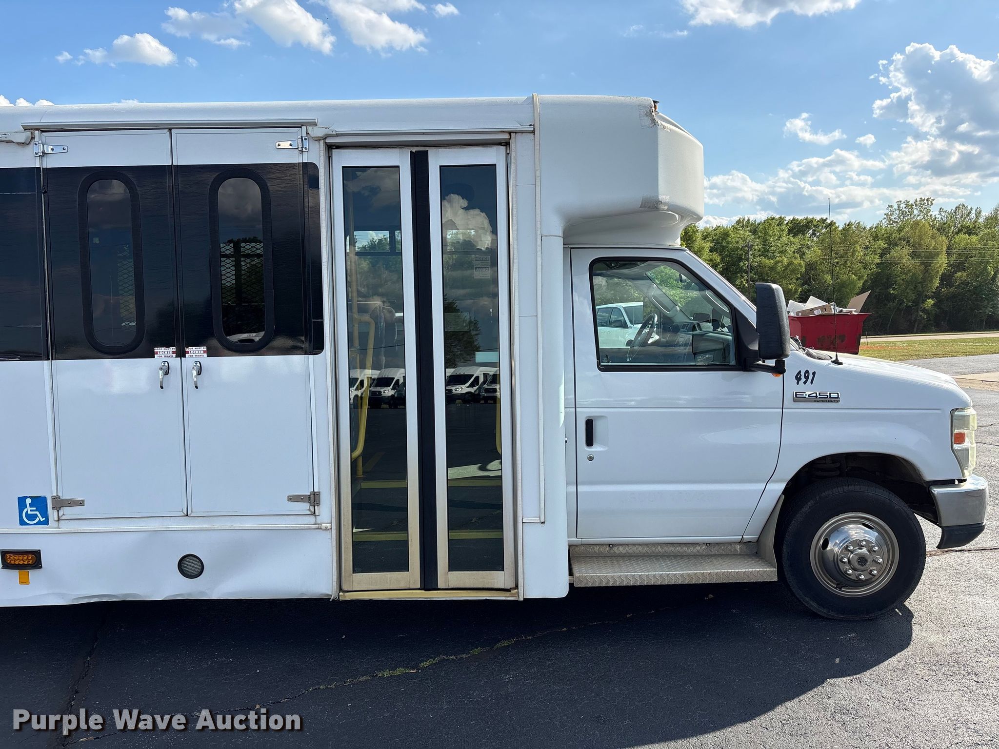 2015 Ford E450 shuttle bus. Miles: 151,848 on odometer, VIN: 1FDXE4FS8EDB10256, Unit #: 491. Engine Displacement: 6.8L, Cylinders: 10, Fuel type: Gas, HP: 305. Transmission Automatic. Chassis Axles: Single, Suspension: Spring, Brakes: Hydraulic, GVWR: 14,500 lbs. Interior AC, Heat, Cruise control, Passengers: 19, Wheelchair lift. Tires Size: 225/75R16. Notes Windshield chipped or cracked. Oklahoma title. Title distribution may be delayed up to 14 days from verification of funds. Kibois area Transit. Stigler, OK 74462
