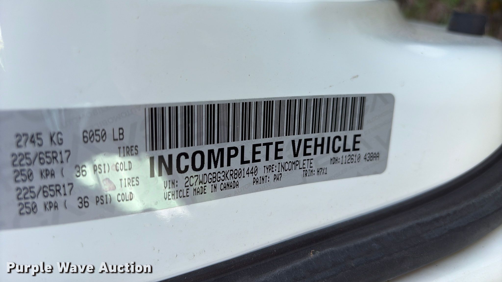• VIN: 2C7WDGBG3KR801440