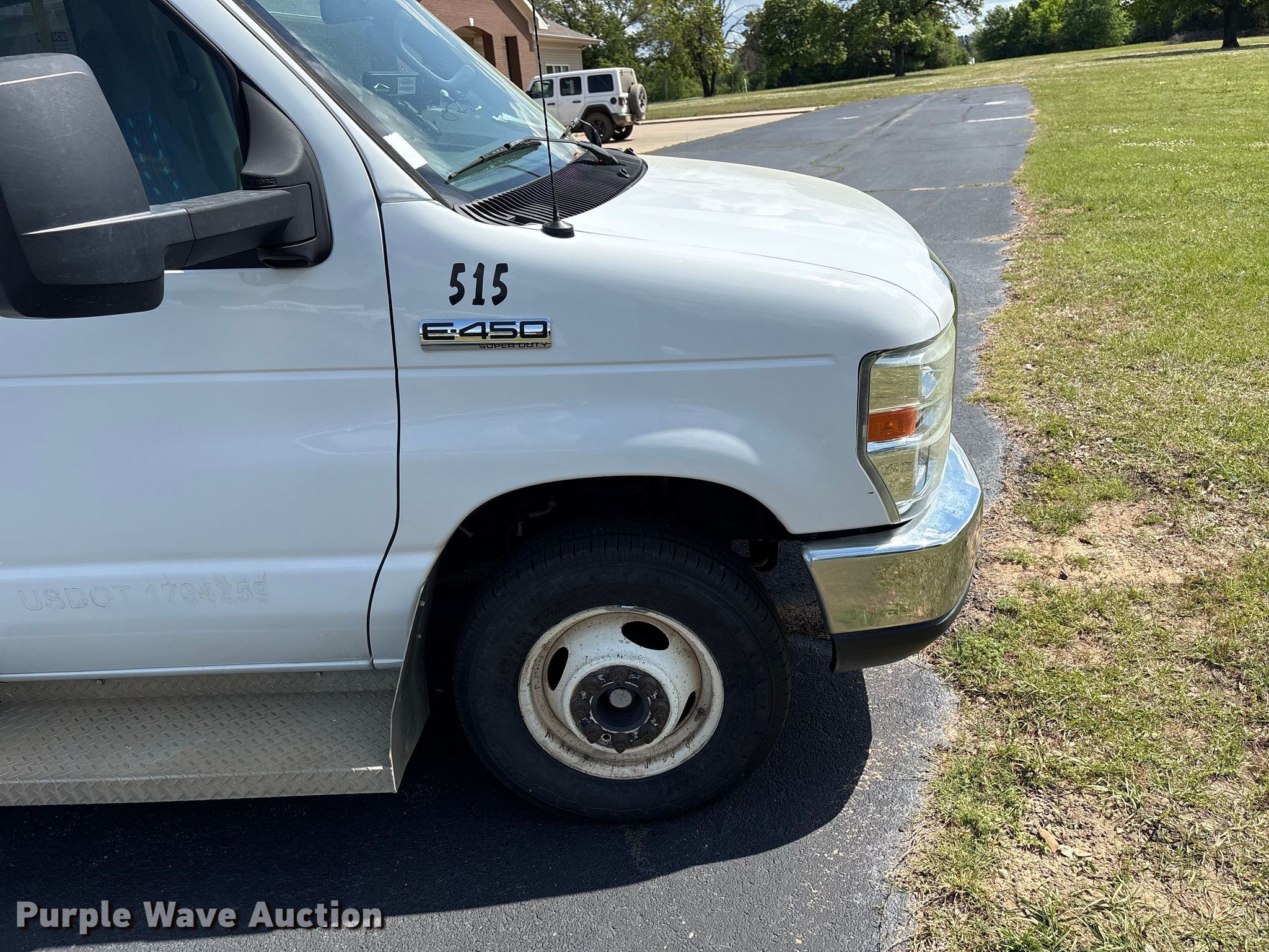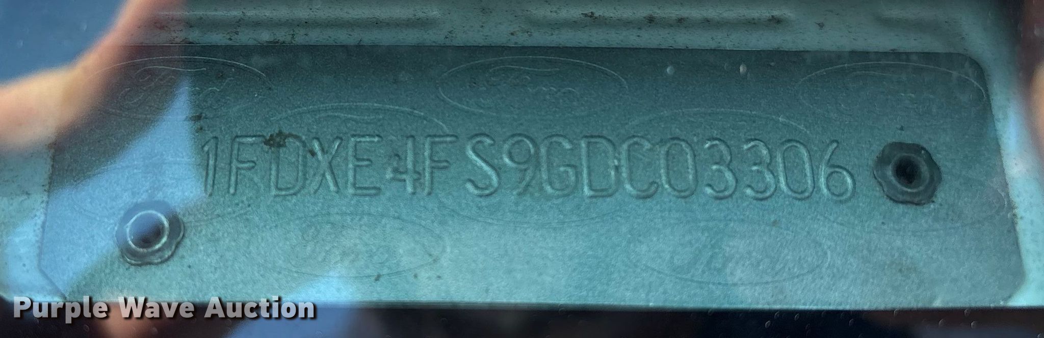 2016 Ford E450 shuttle bus. Miles: 167,932 on odometer, VIN: 1FDXE4FS9GDC03306, Unit #: 515. Engine Displacement: 6.8L, Cylinders: 10, Fuel type: Gas, HP: 305. Transmission Automatic. Chassis Axles: Single, Brakes: Hydraulic, GVWR: 14,500 lbs. Interior AC, Heat, Cruise control, Backup camera, Wheelchair lift. Tires Size: 225/75R16. Notes Dash warning indicator: Check engine, Windshield chipped or cracked, Transmission issues , Unit must be towed or hauled , Unknown operating condition of backup camera. Oklahoma title. Title distribution may be delayed up to 14 days from verification of funds. Kibois area Transit. Stigler, OK 74462