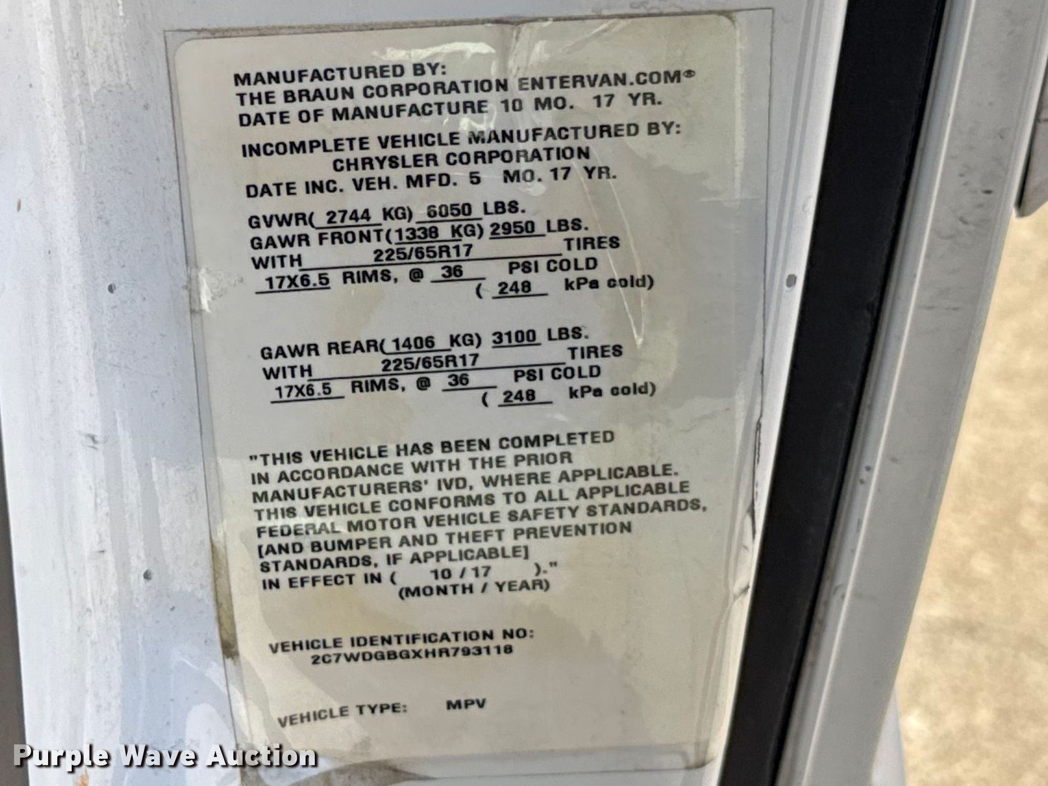 Purple Wave is selling a used Passenger Vehicle in Oklahoma. This item is a 2017 Dodge Grand Caravan handicap accessible van with the following: Miles: 211,904 on odometer, VIN: 2C7WDGBGXHR793118, Unit #: 236