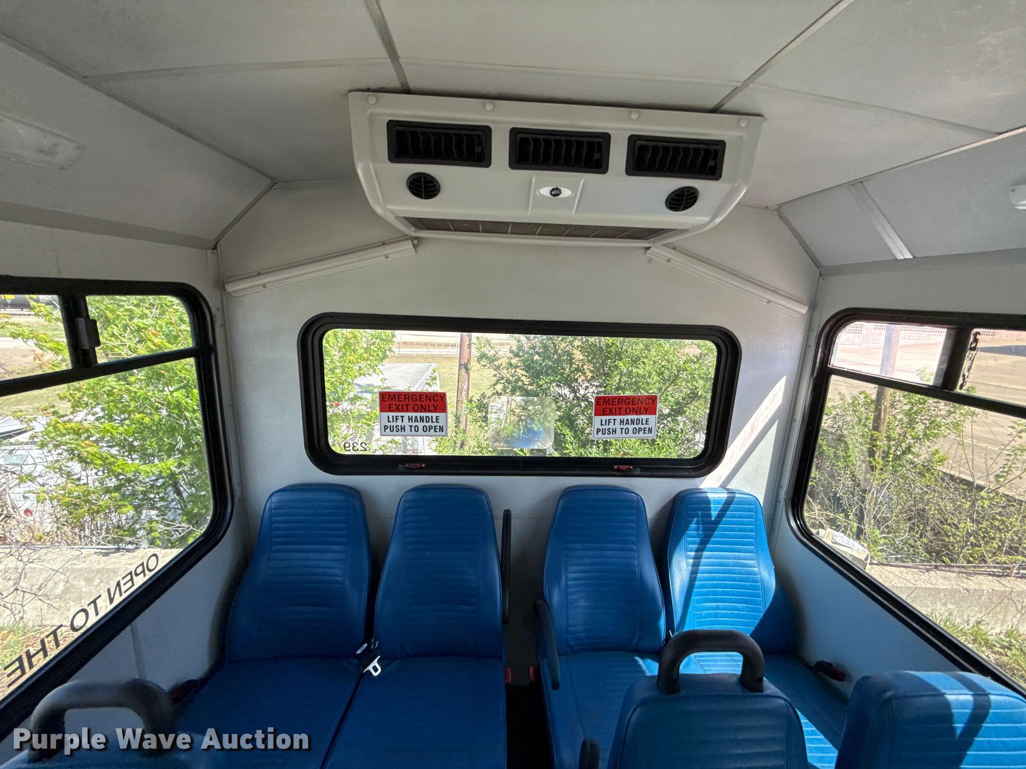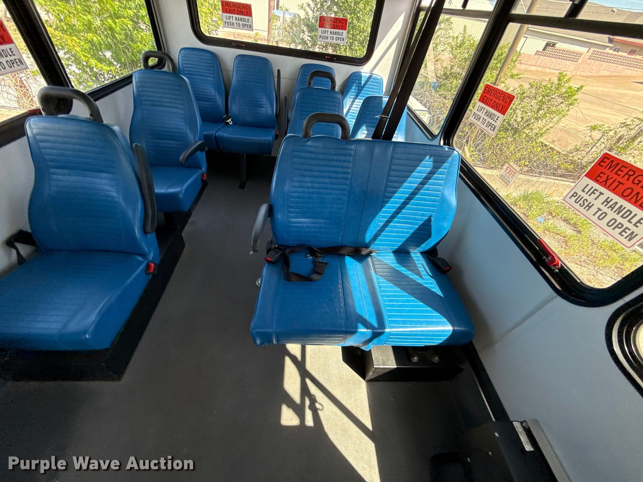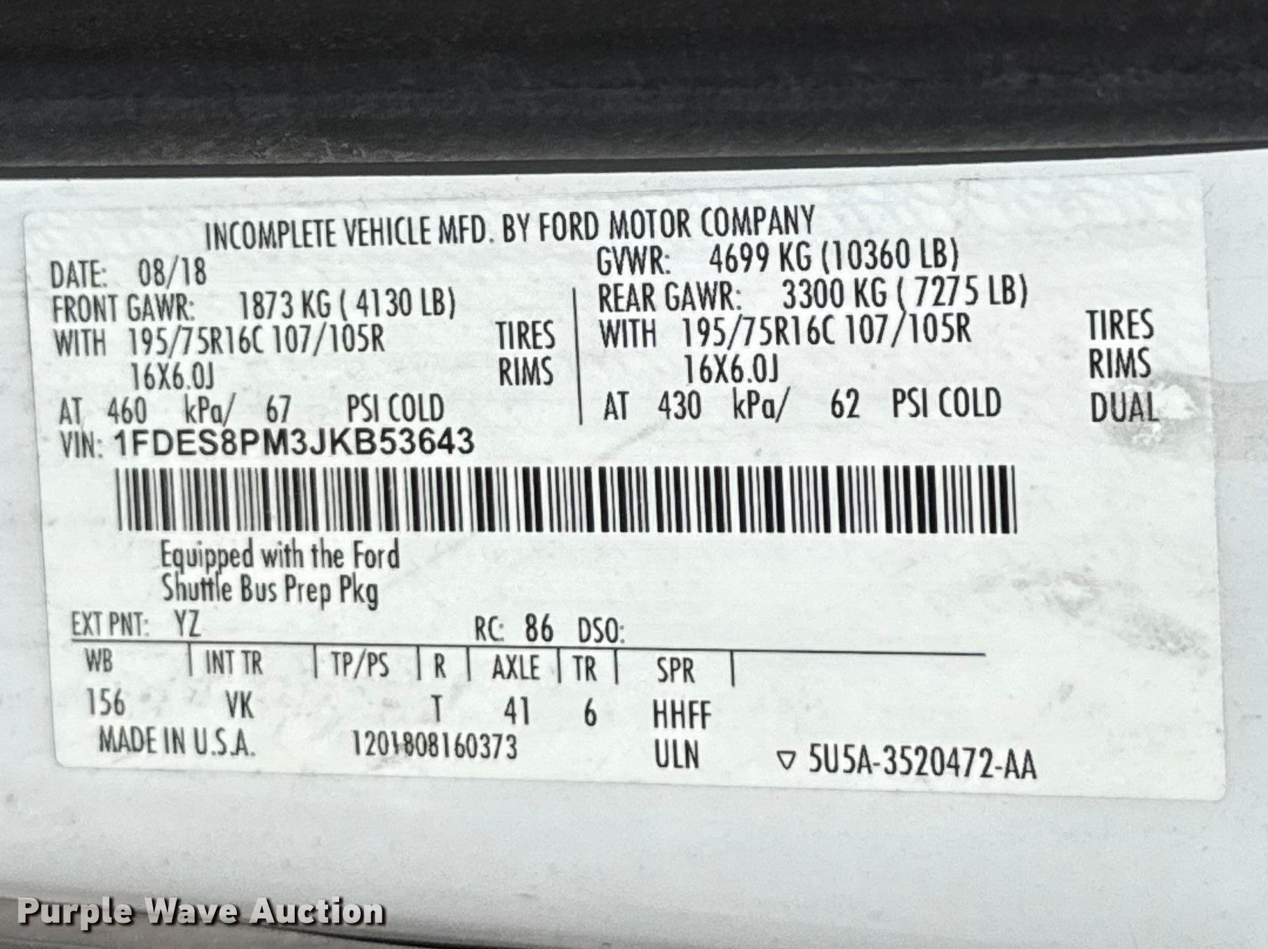 2018 Ford Transit 350HD shuttle bus. Miles: 146,717 on odometer, VIN: 1FDES8PM3JKB53643, Unit #: 239. Engine Displacement: 3.7L, Cylinders: 6, Fuel type: Gas. Transmission Automatic. Chassis Axles: Single, Suspension: Spring, Brakes: Hydraulic, GVWR: 10,360 lbs, Wheelbase: 156". Interior AC, Heat, Heated mirrors, Cruise control, Auxiliary controls, Passengers: 12, Wheelchair lift. Tires Size: 195/75R16C. Notes Dash warning indicator: Check engine, Windshield chipped or cracked, Jump start required during on-site data collection, Engine issues. Oklahoma title. Title distribution may be delayed up to 14 days from verification of funds. United Community Action Program, Inc.. Pawnee, OK 74058