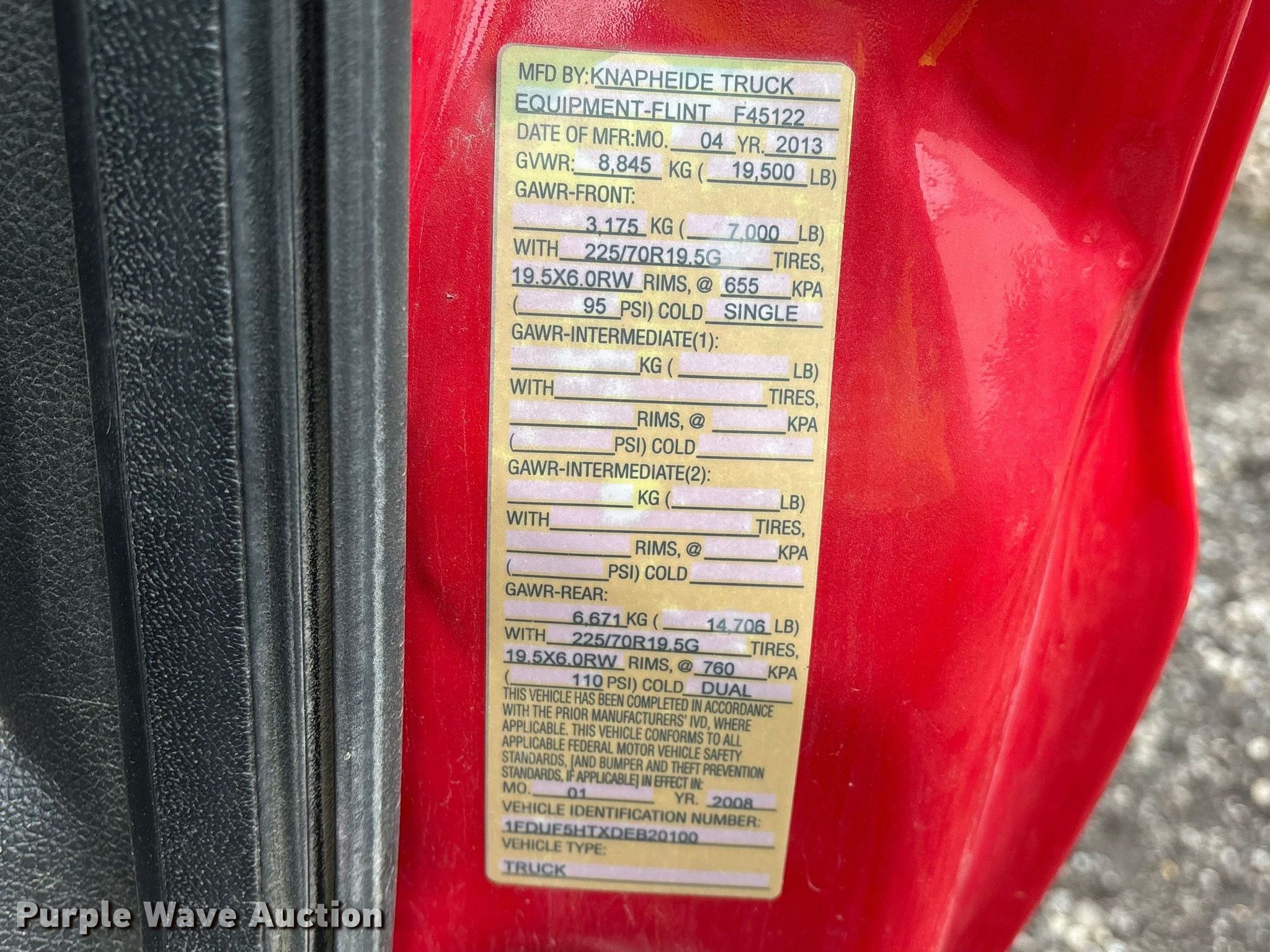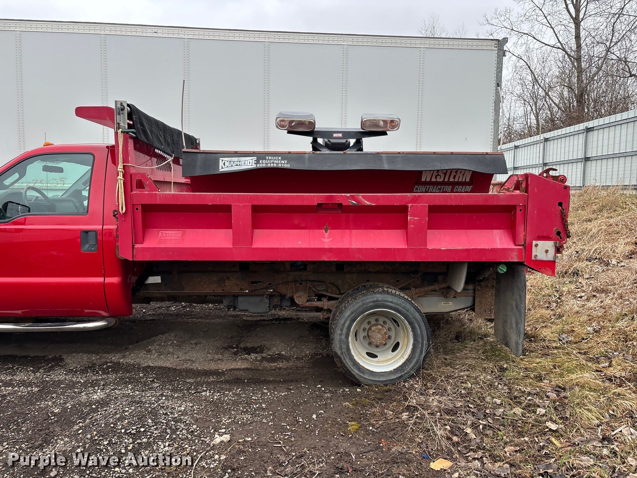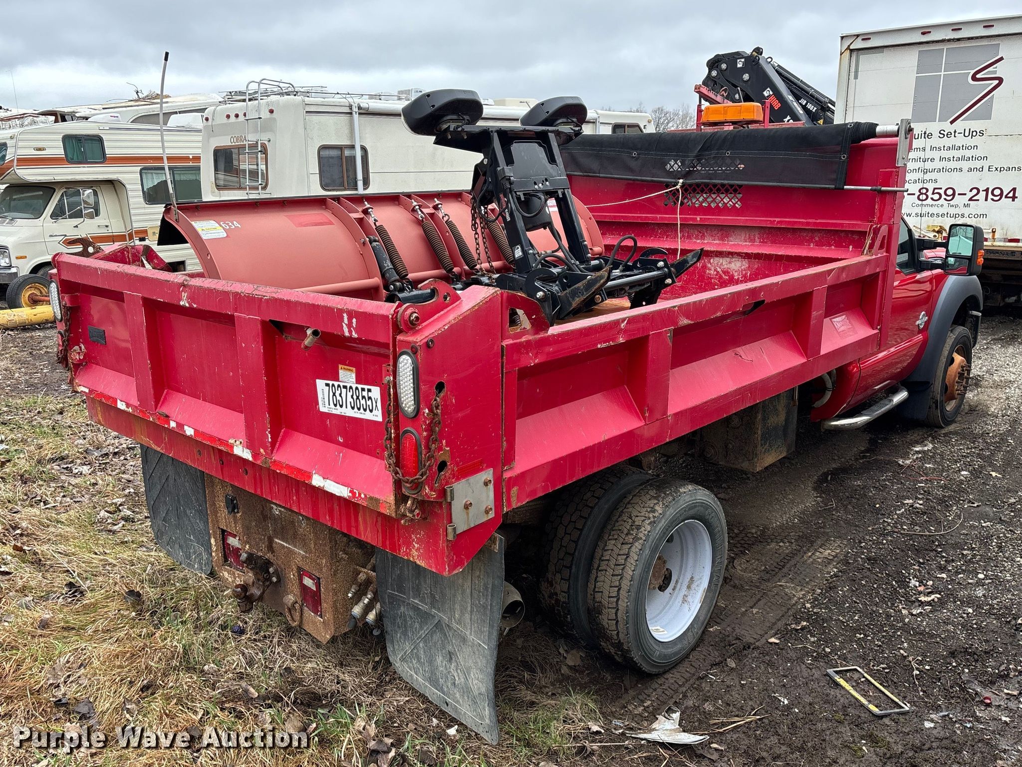 2013 Ford F550 Super Duty dump truck. Miles: 28,350 on odometer, VIN: 1FDUF5HTXDEB20100, Lot #: 78373855. Engine Displacement: 6.7L, Cylinders: 8, Fuel type: Diesel. Transmission Automatic. Chassis Axles: Single, Suspension: Spring, Brakes: Hydraulic, GVWR: 19,500 lbs, Wheelbase: 165". Interior AC, Heat, Heated mirrors, Power windows, Cruise control, Brake controller. Features Bed Dump bed, Knapheide KDBDS1116A, Serial: 20130530-0303239, Length: 11' 3", Width: 96", Side height: 21", Bed type: Steel, Roll tarp, Ram: Single, End gate: Manual, Plow Western Pro Plus, Width: 117". Tires Size: 225/70R19.5. Notes Possible AC issues, may need charged. Fleet inventory reduction, stored at a secured facility. Please review REQUIRED REMOVAL INSTRUCTIONS. Titles will be distributed after confirmation of payment and removal. Michigan title. Title distribution may be delayed up to 30 days from verification of funds. Davison, MI 48423