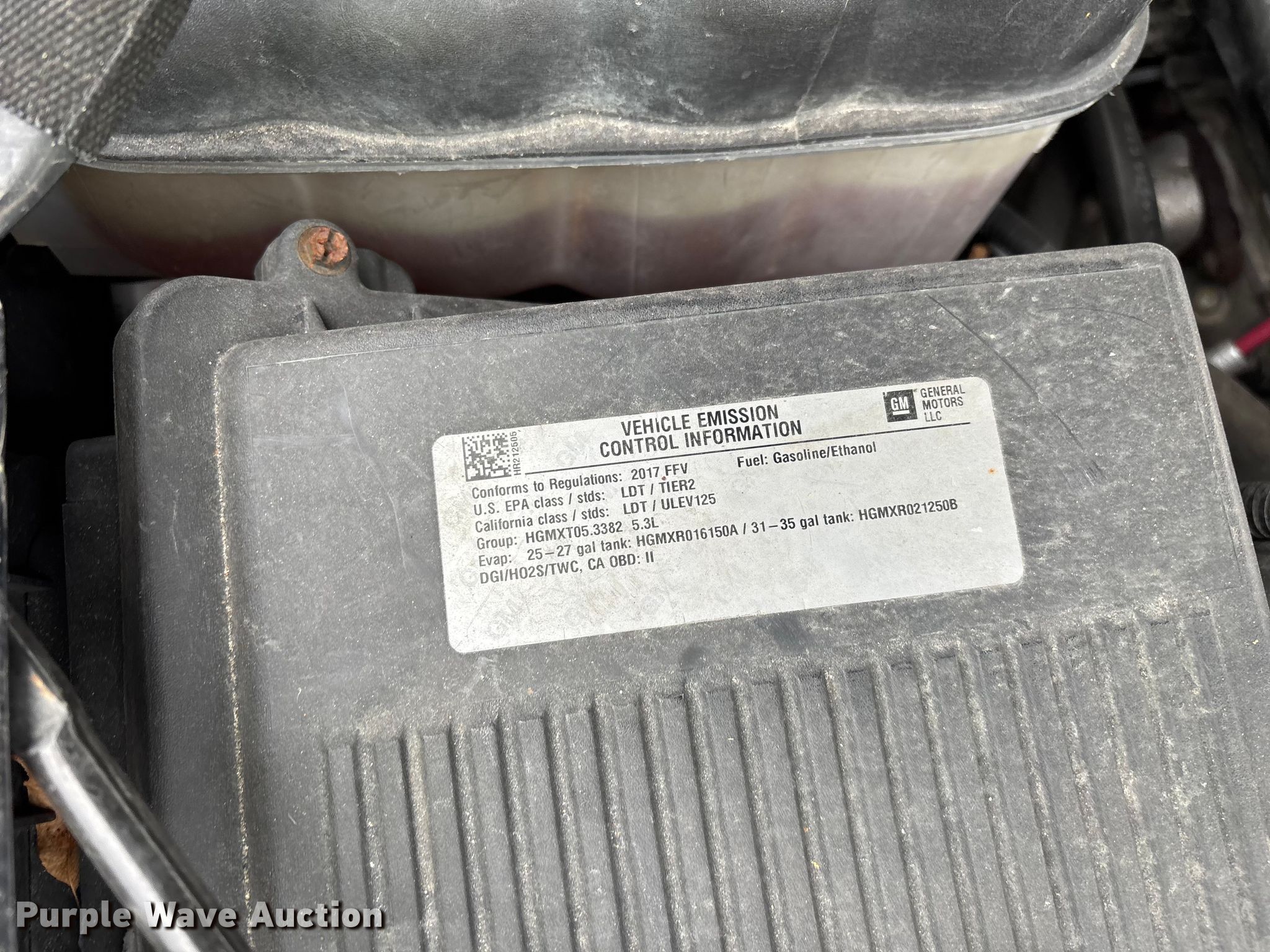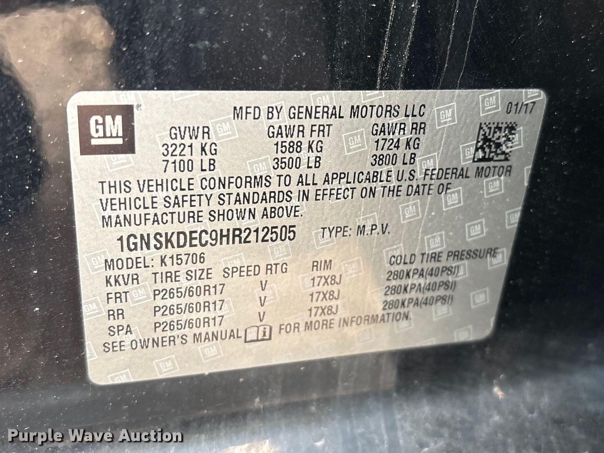 2017 Chevrolet Tahoe Police SUV. Miles: 101,084 on odometer, Hours: 13,609 on meter, VIN: 1GNSKDEC9HR212505, Lot #: 78376755. Engine Displacement: 5.3L, Cylinders: 8, Fuel type: Gas. Transmission Automatic, Four wheel drive. Interior AC, Heat, Seat: Power driver, Power passenger, Power windows, Power locks, Cruise control, Backup camera. Tires Size: P265/60R17. Notes Dash warning indicator: Check engine, TPMS, Service 4WD, Service tire monitor system, Jump start required during on-site data collection, Possible AC issues, may need charged, Rear interior parts disassembled, Center console missing. Fleet inventory reduction, stored at a secured facility. Please review REQUIRED REMOVAL INSTRUCTIONS. Titles will be distributed after confirmation of payment and removal. Michigan title. Title distribution may be delayed up to 30 days from verification of funds. Davison, MI 48423
