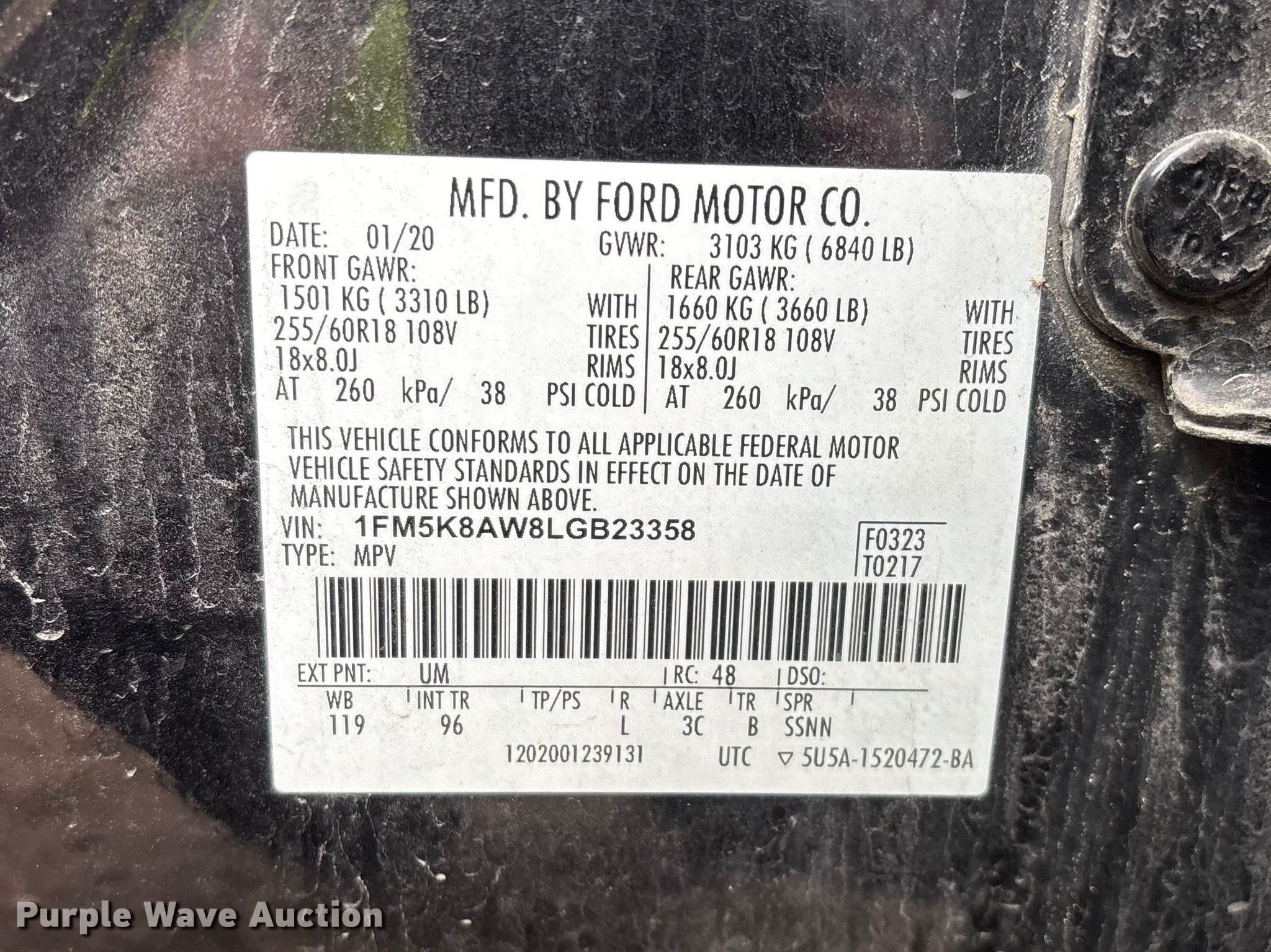 - VIN: 1FM5K8AW8LGB23358