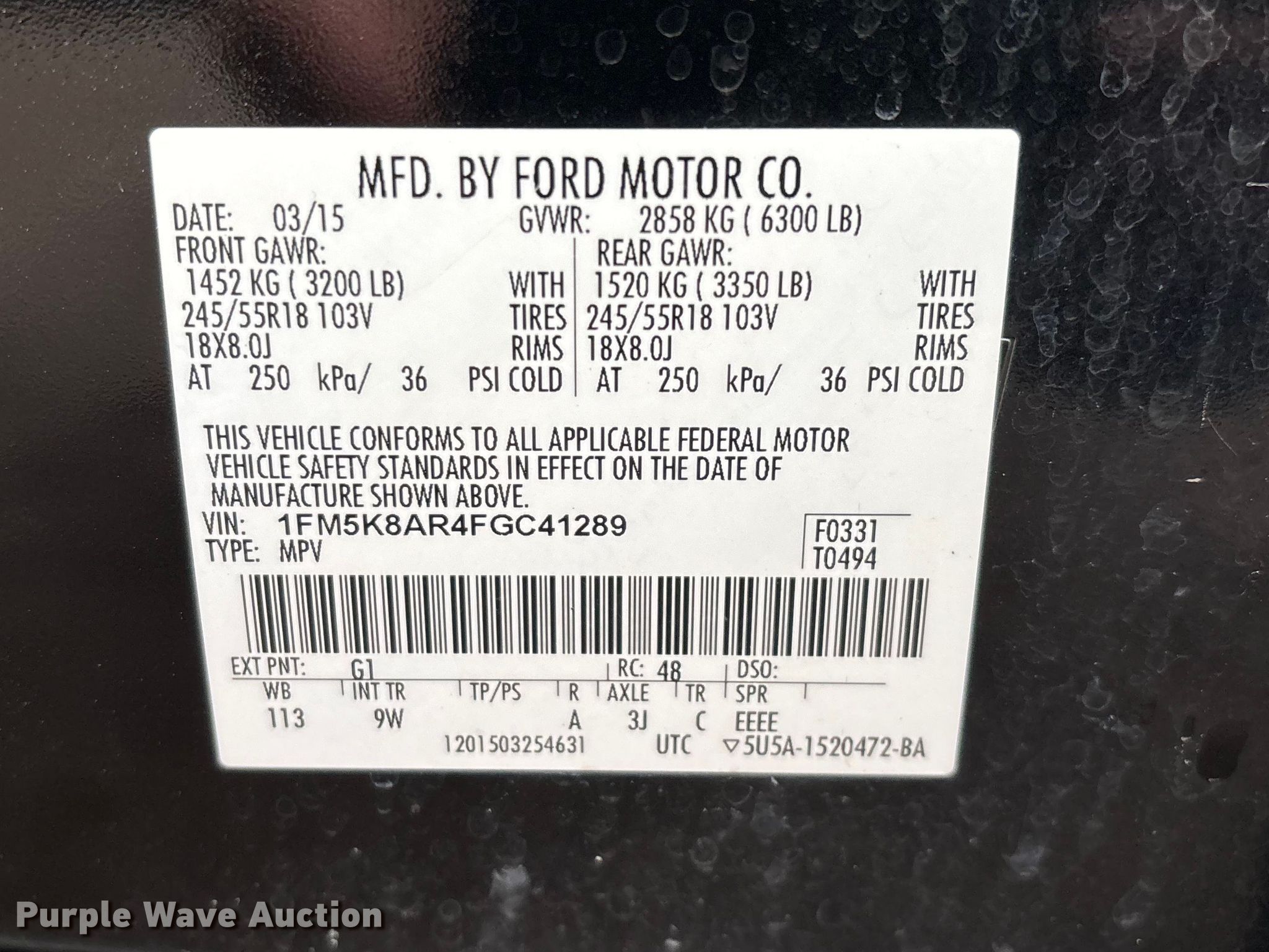 - VIN: 1FM5K8AR4FGC41289