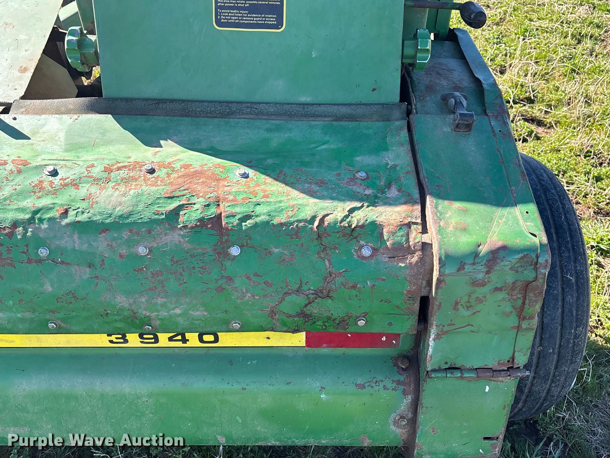 John Deere 3940 forage harvester. Serial: 596323. Features Drivelines: Single, Monitor, PTO: 1000, Tire size: 9.5-14. Notes Chopper head not included. Cedar Hill Farms. Lodi, WI 53555