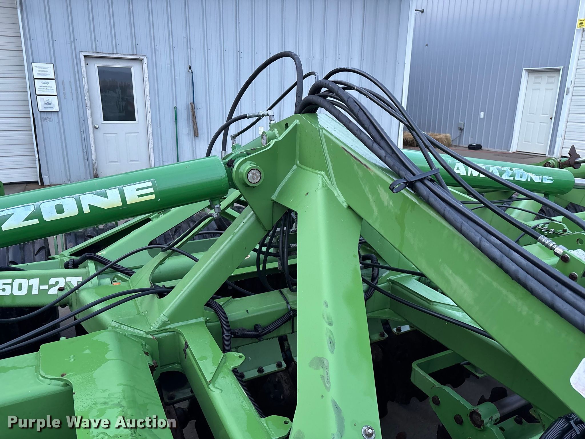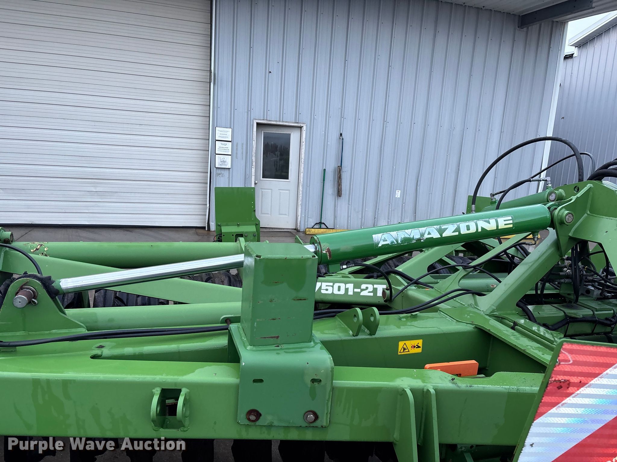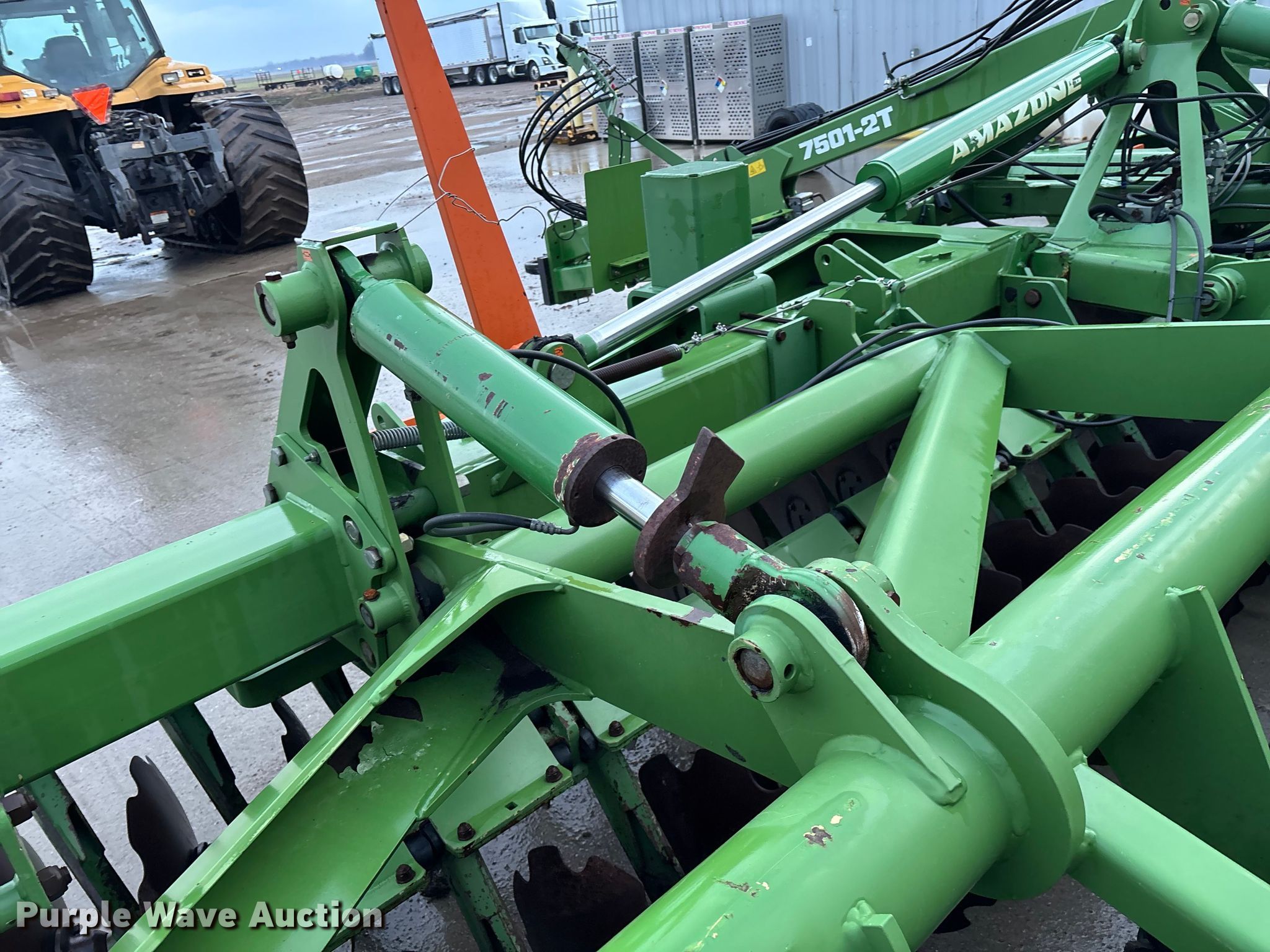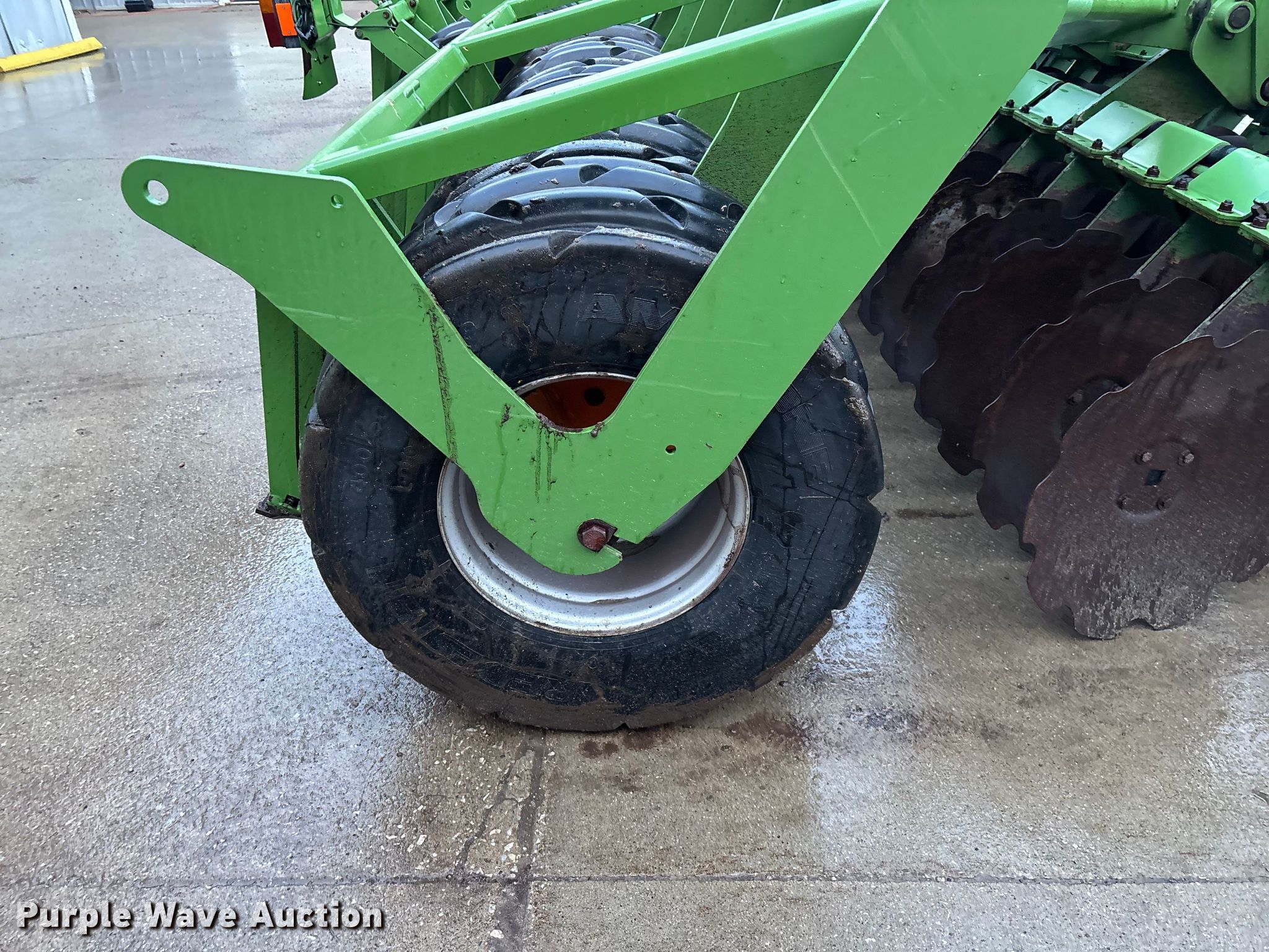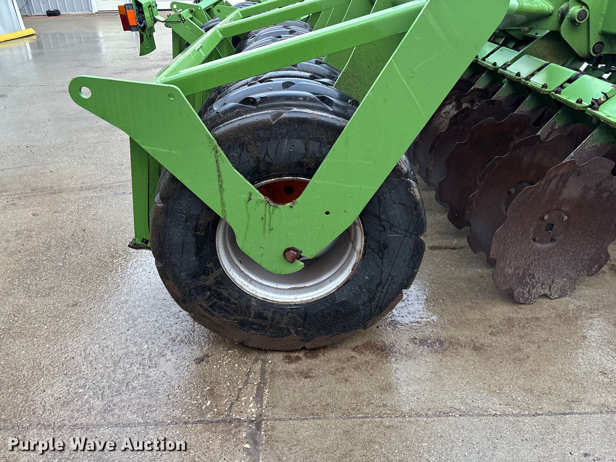Amazone Catros 7501-2T disk. Overall width: 24' 6", Serial: CAT0018490. Features Front blades Diameter: 22", Spacing: 10", Rear blades Diameter: 22", Spacing: 10", Operation Hydraulic lift, Hydraulic fold, Leveler: Hydraulic, Attachments Transport lights. Tires Tire size: 400/50-15.5 IMP. Notes Trailer not included, Transport light damaged. Van Dyk Farms. Imlay City, MI 48444