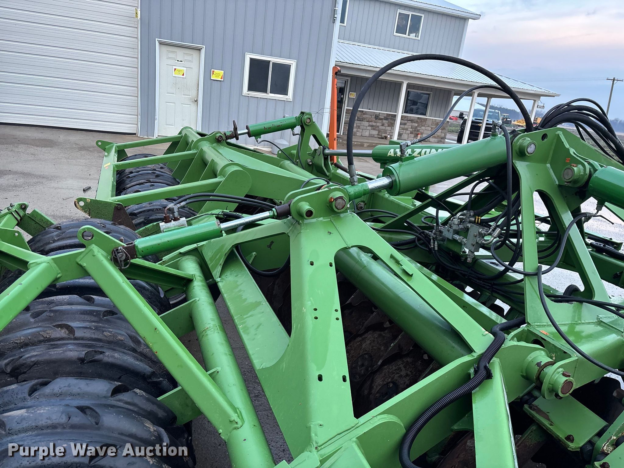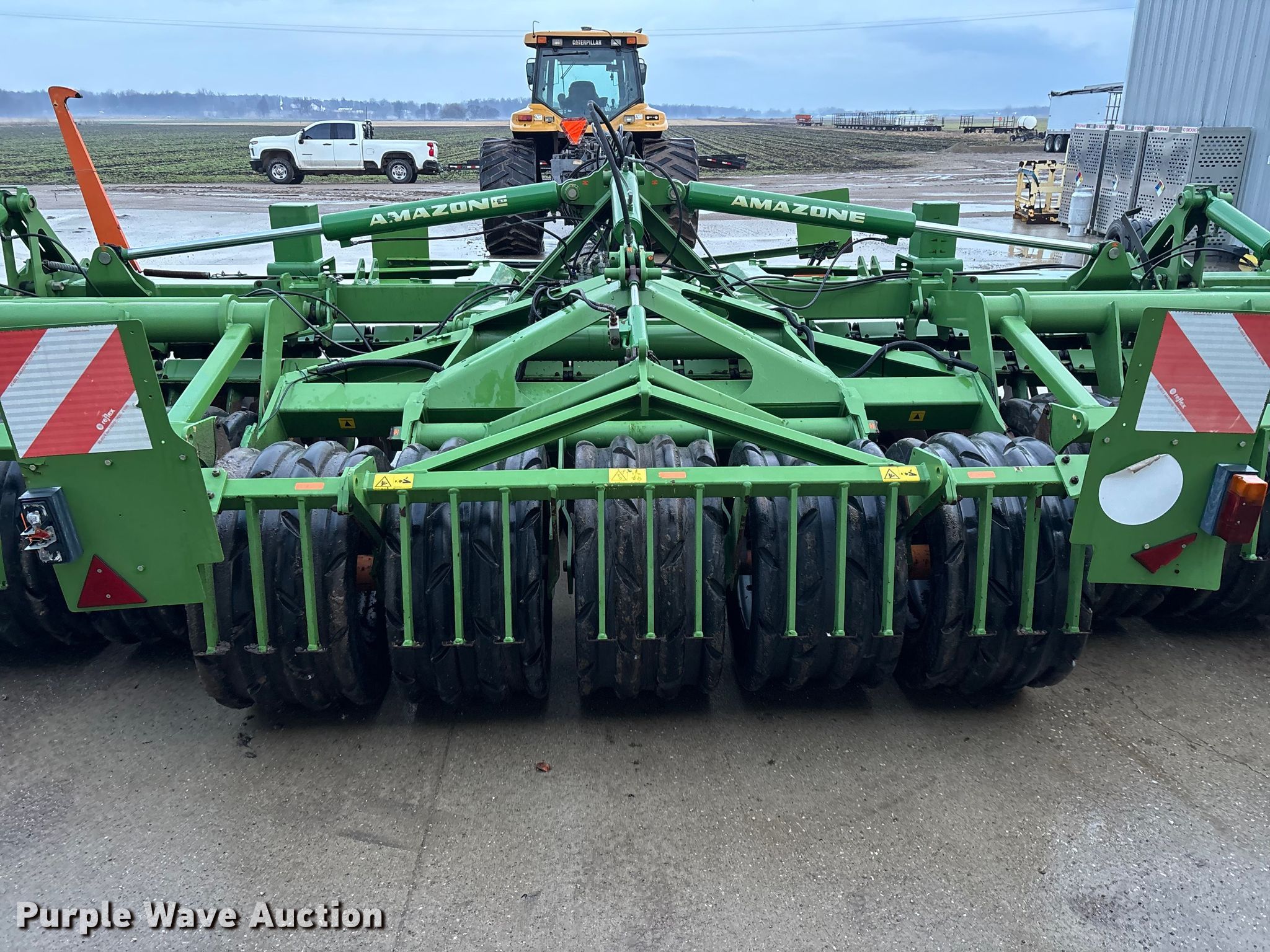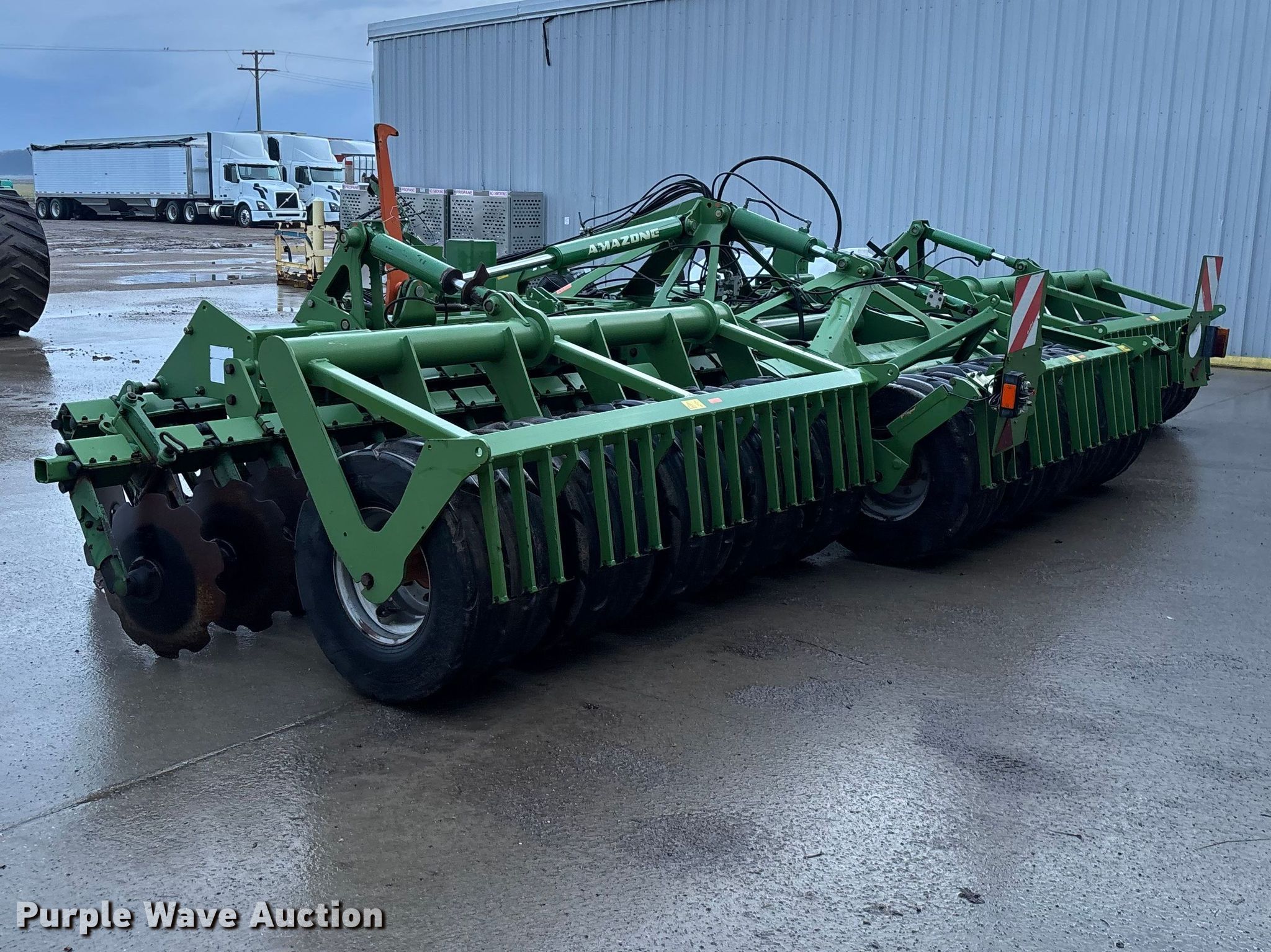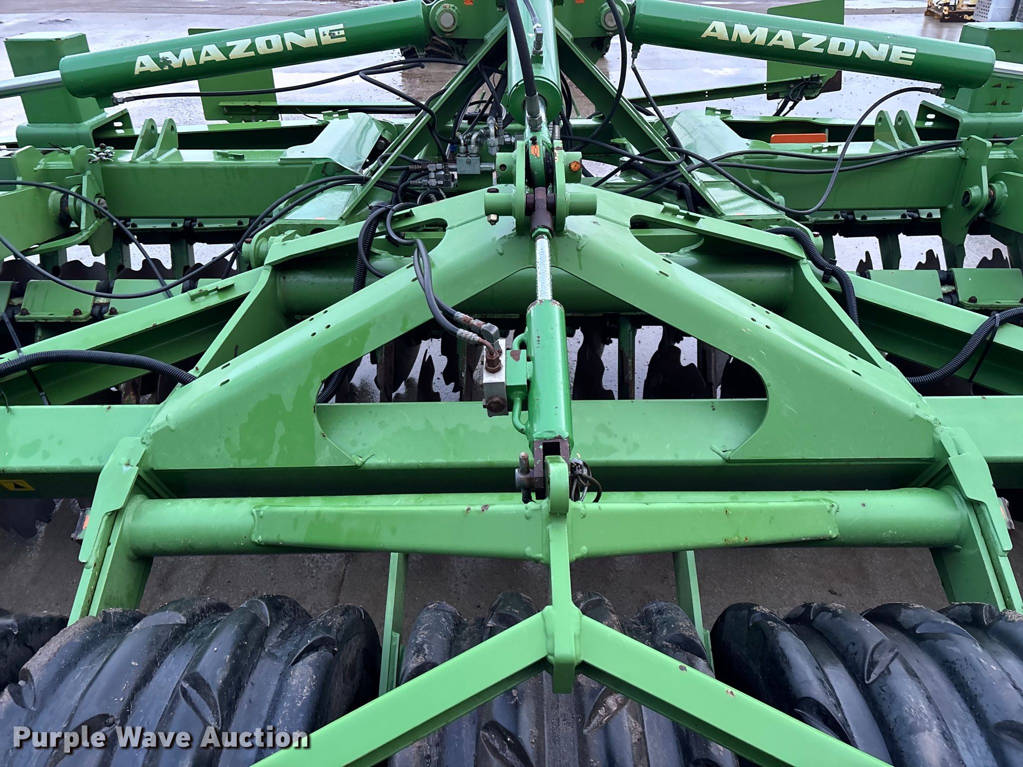 Amazone Catros 7501-2T disk. Overall width: 24' 6", Serial: CAT0018490. Features Front blades Diameter: 22", Spacing: 10", Rear blades Diameter: 22", Spacing: 10", Operation Hydraulic lift, Hydraulic fold, Leveler: Hydraulic, Attachments Transport lights. Tires Tire size: 400/50-15.5 IMP. Notes Trailer not included, Transport light damaged. Van Dyk Farms. Imlay City, MI 48444