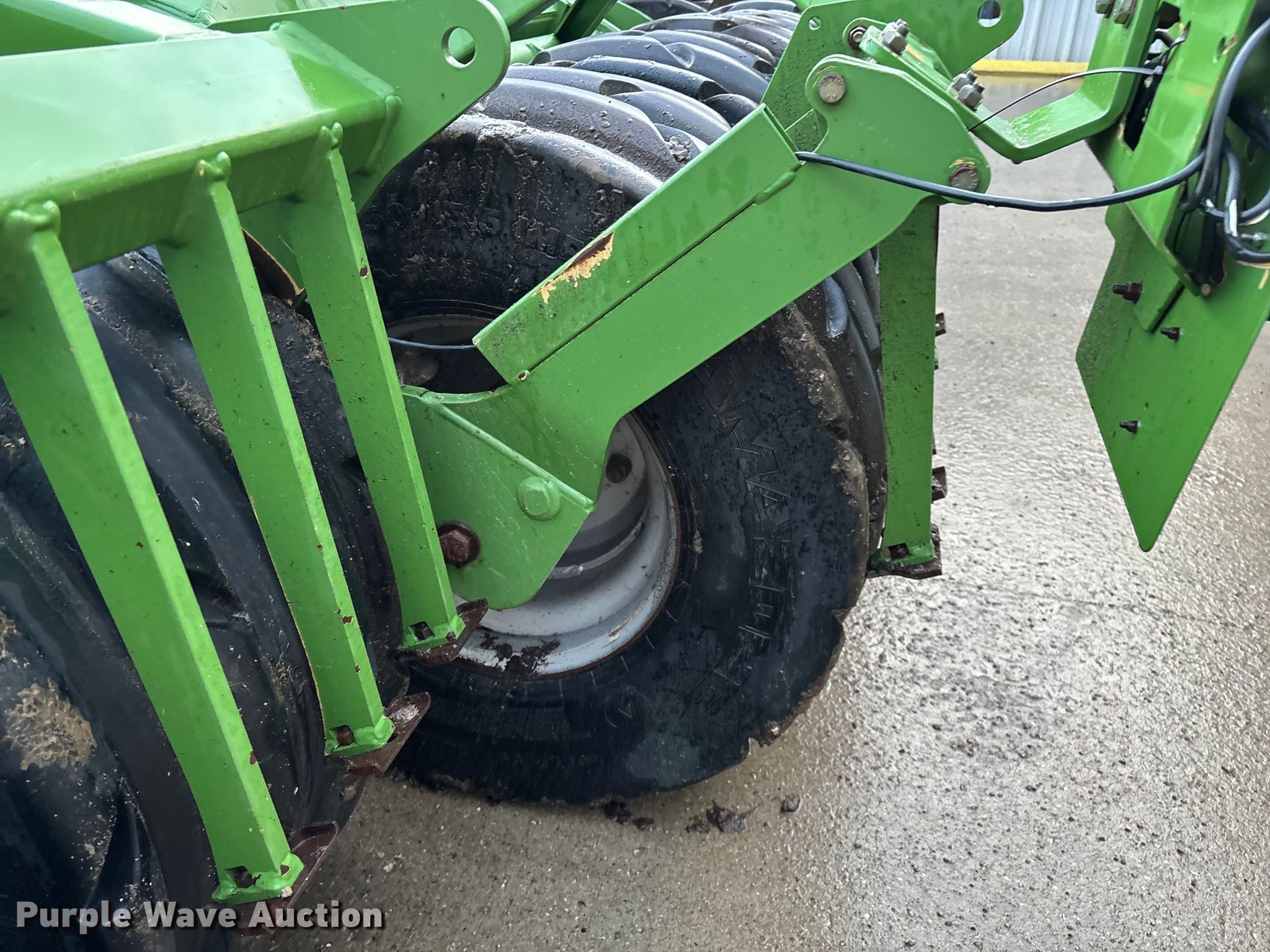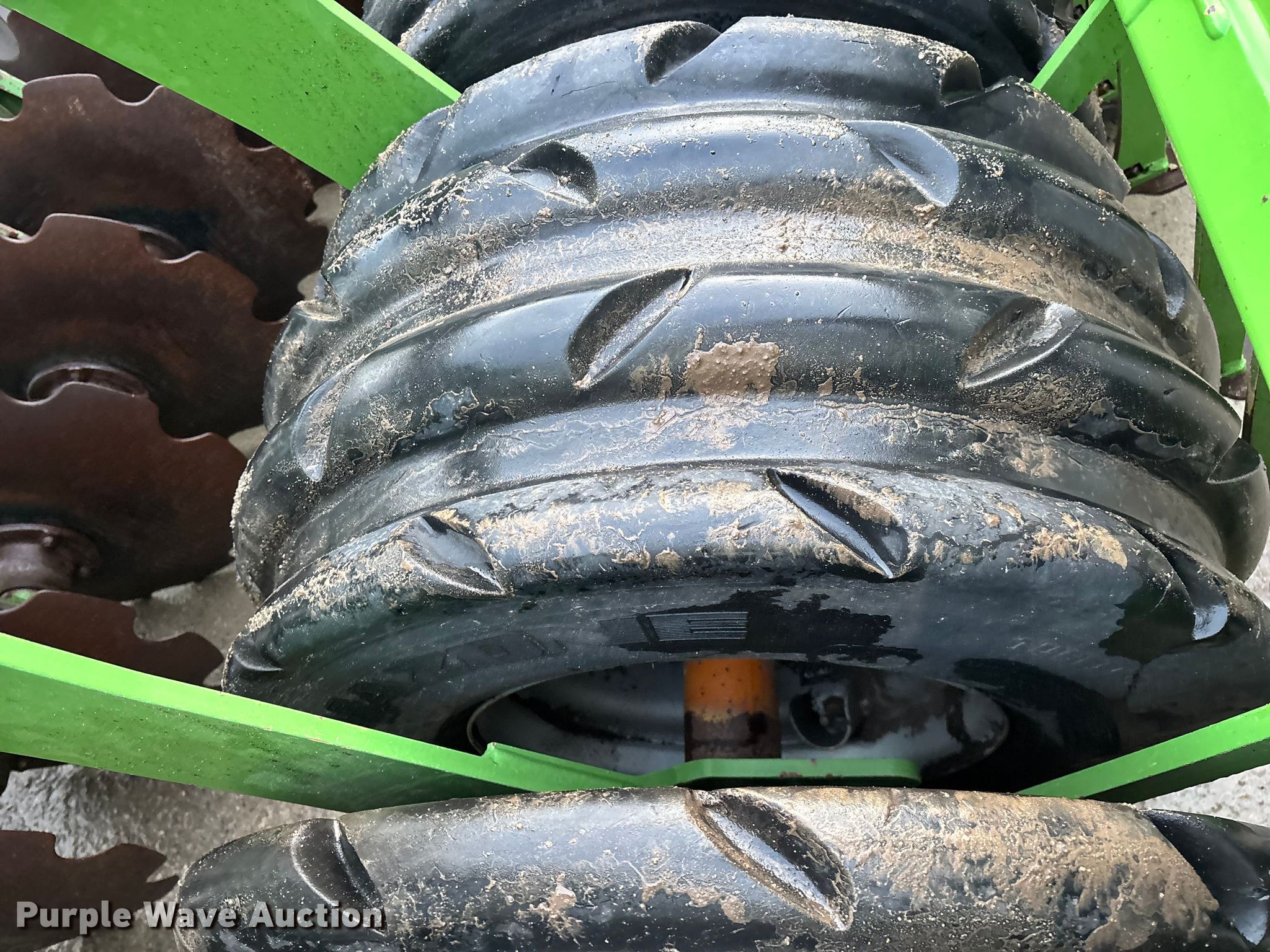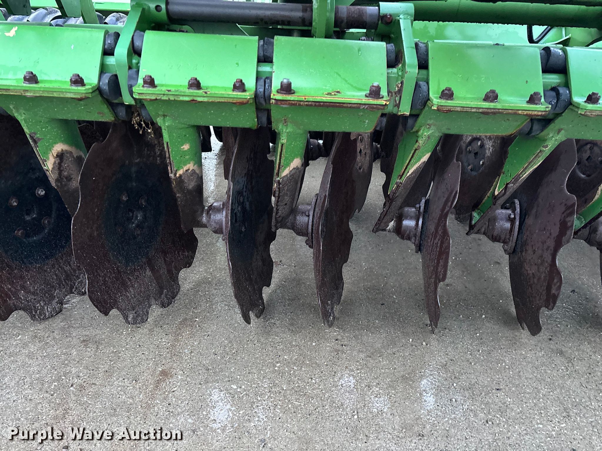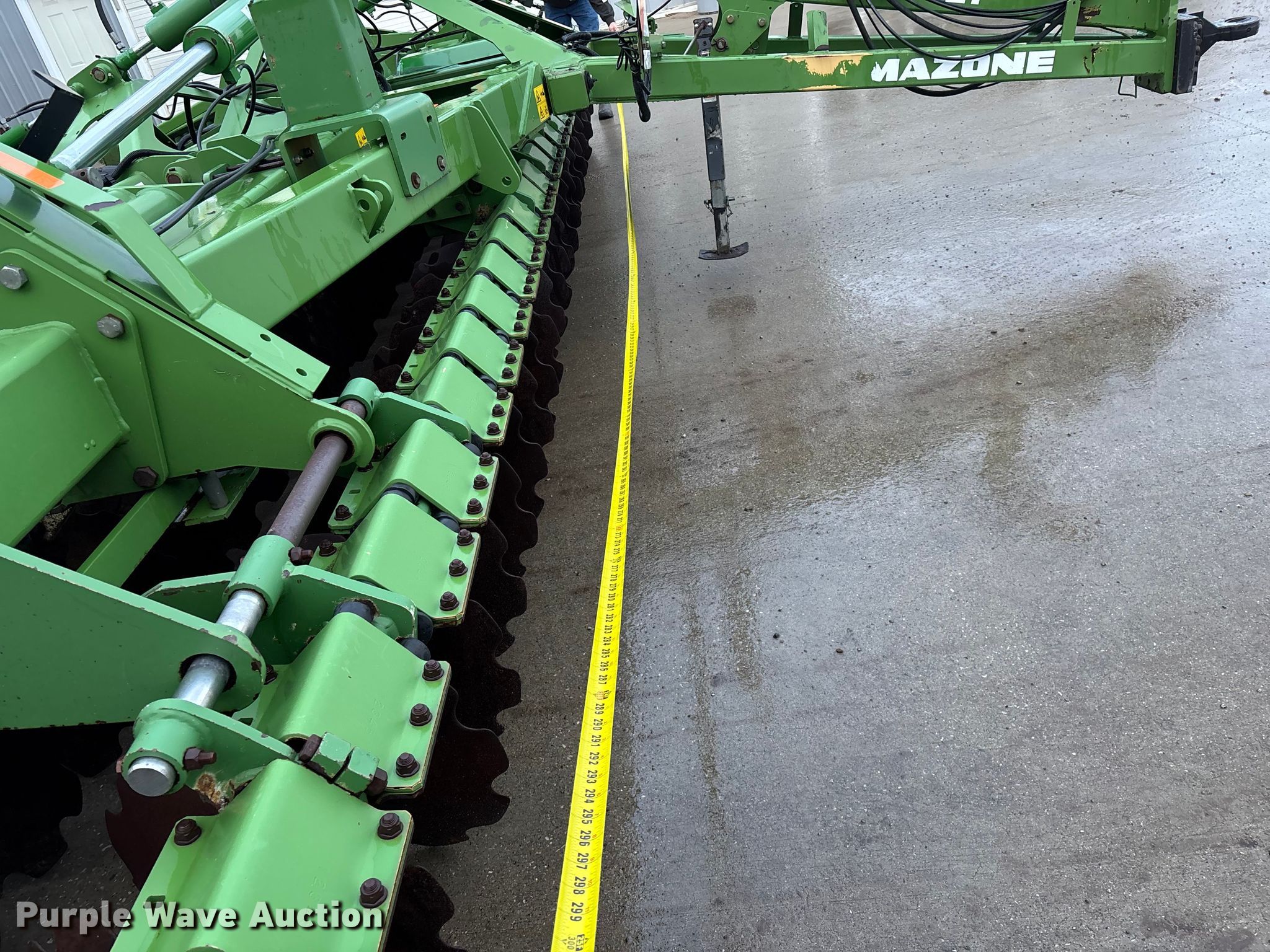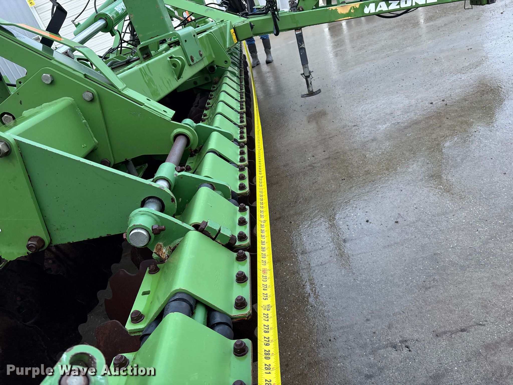 Amazone Catros 7501-2T disk. Overall width: 24' 6", Serial: CAT0018490. Features Front blades Diameter: 22", Spacing: 10", Rear blades Diameter: 22", Spacing: 10", Operation Hydraulic lift, Hydraulic fold, Leveler: Hydraulic, Attachments Transport lights. Tires Tire size: 400/50-15.5 IMP. Notes Trailer not included, Transport light damaged. Van Dyk Farms. Imlay City, MI 48444