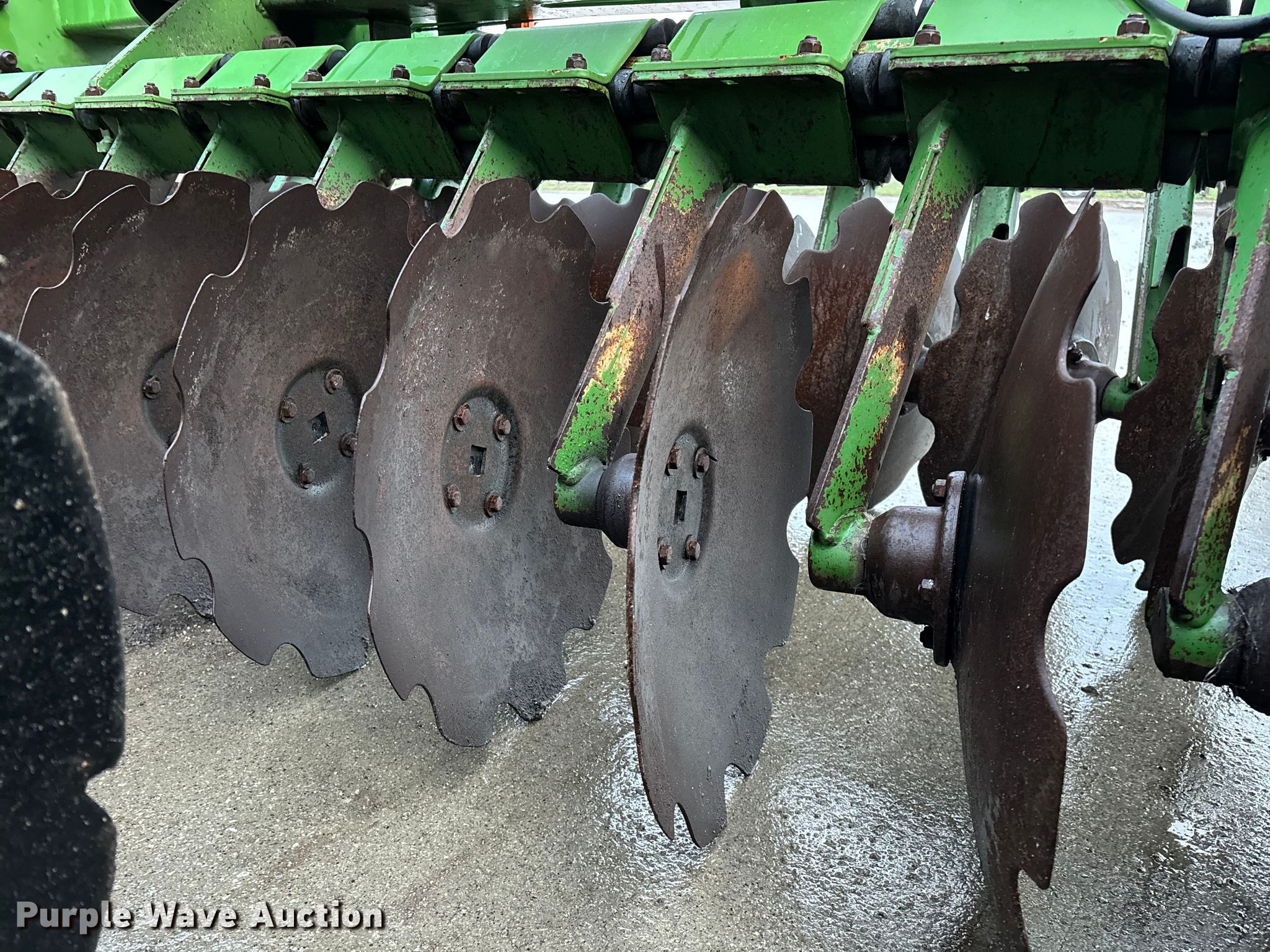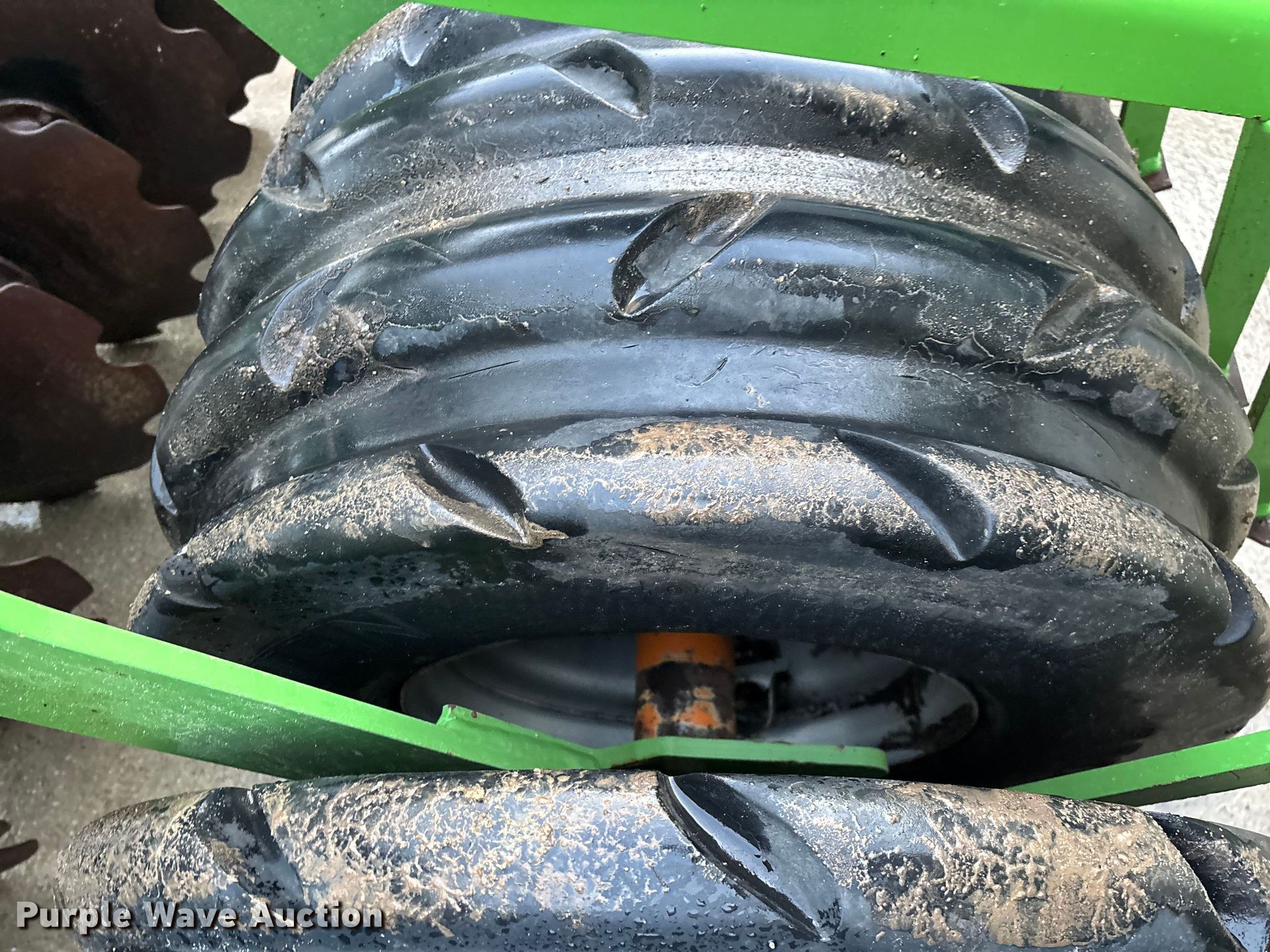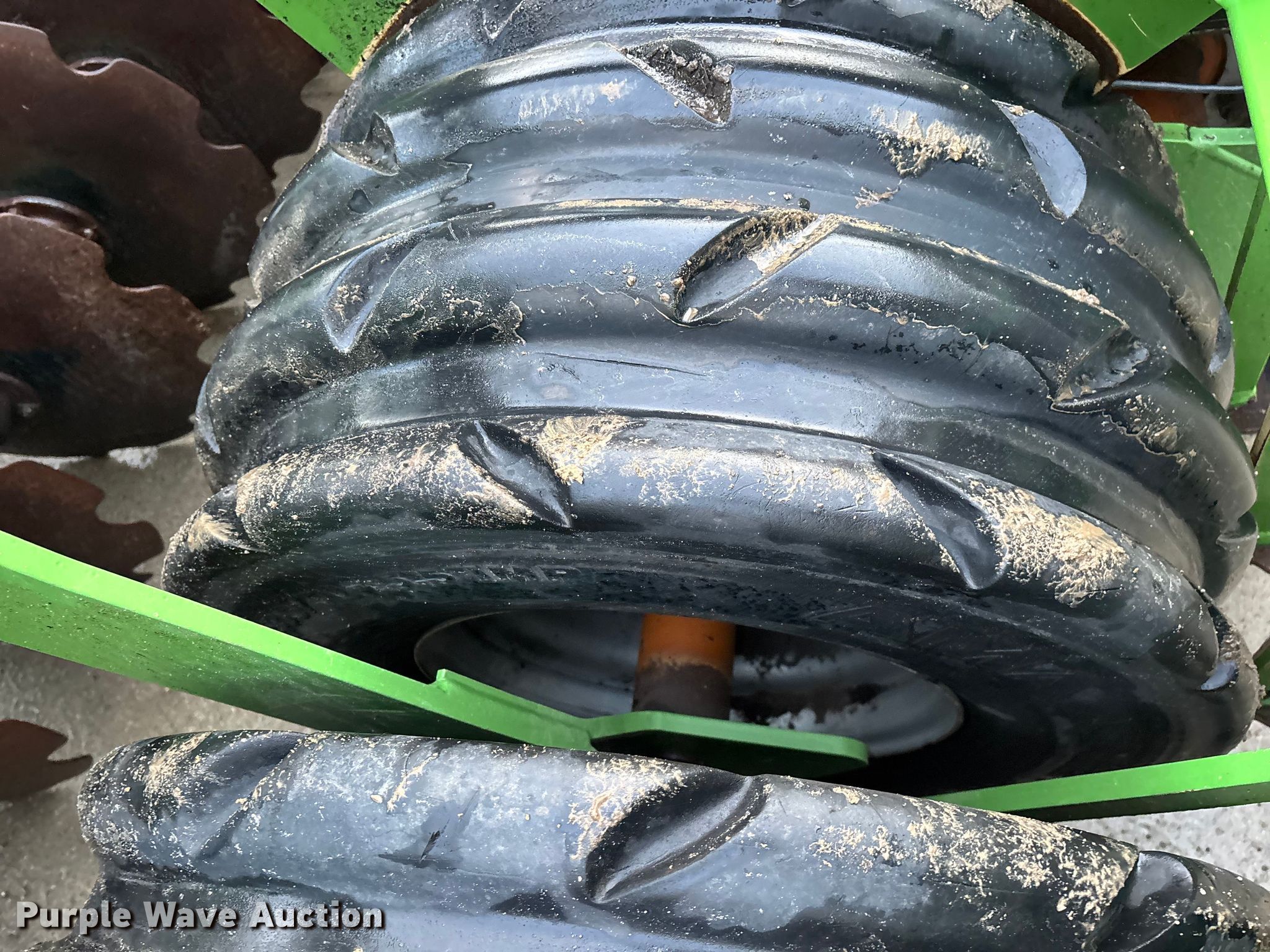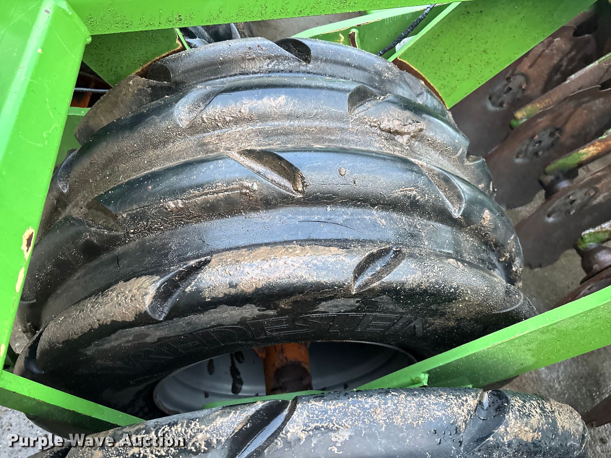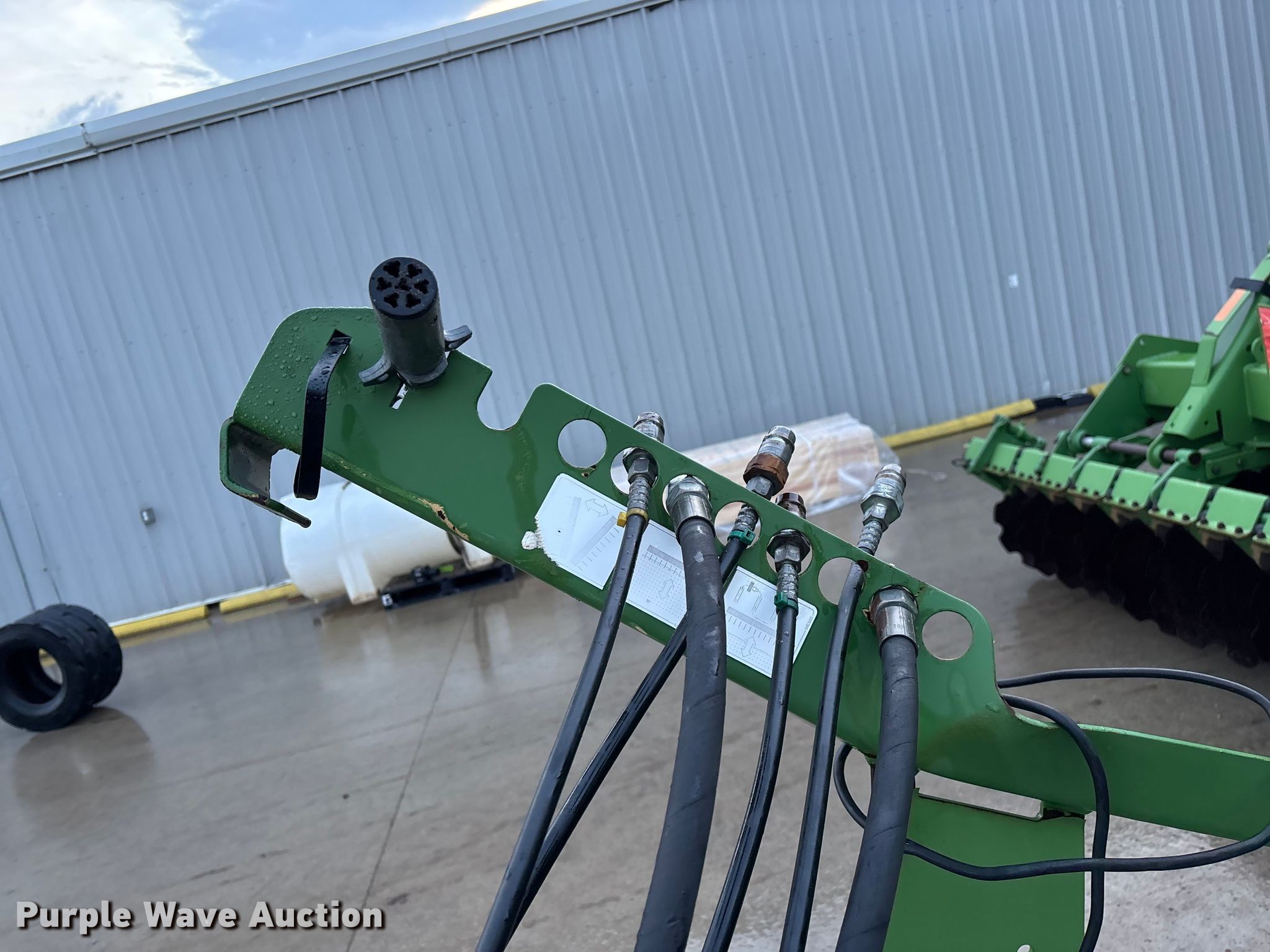Amazone Catros 7501-2T disk. Overall width: 24' 6", Serial: CAT0018490. Features Front blades Diameter: 22", Spacing: 10", Rear blades Diameter: 22", Spacing: 10", Operation Hydraulic lift, Hydraulic fold, Leveler: Hydraulic, Attachments Transport lights. Tires Tire size: 400/50-15.5 IMP. Notes Trailer not included, Transport light damaged. Van Dyk Farms. Imlay City, MI 48444