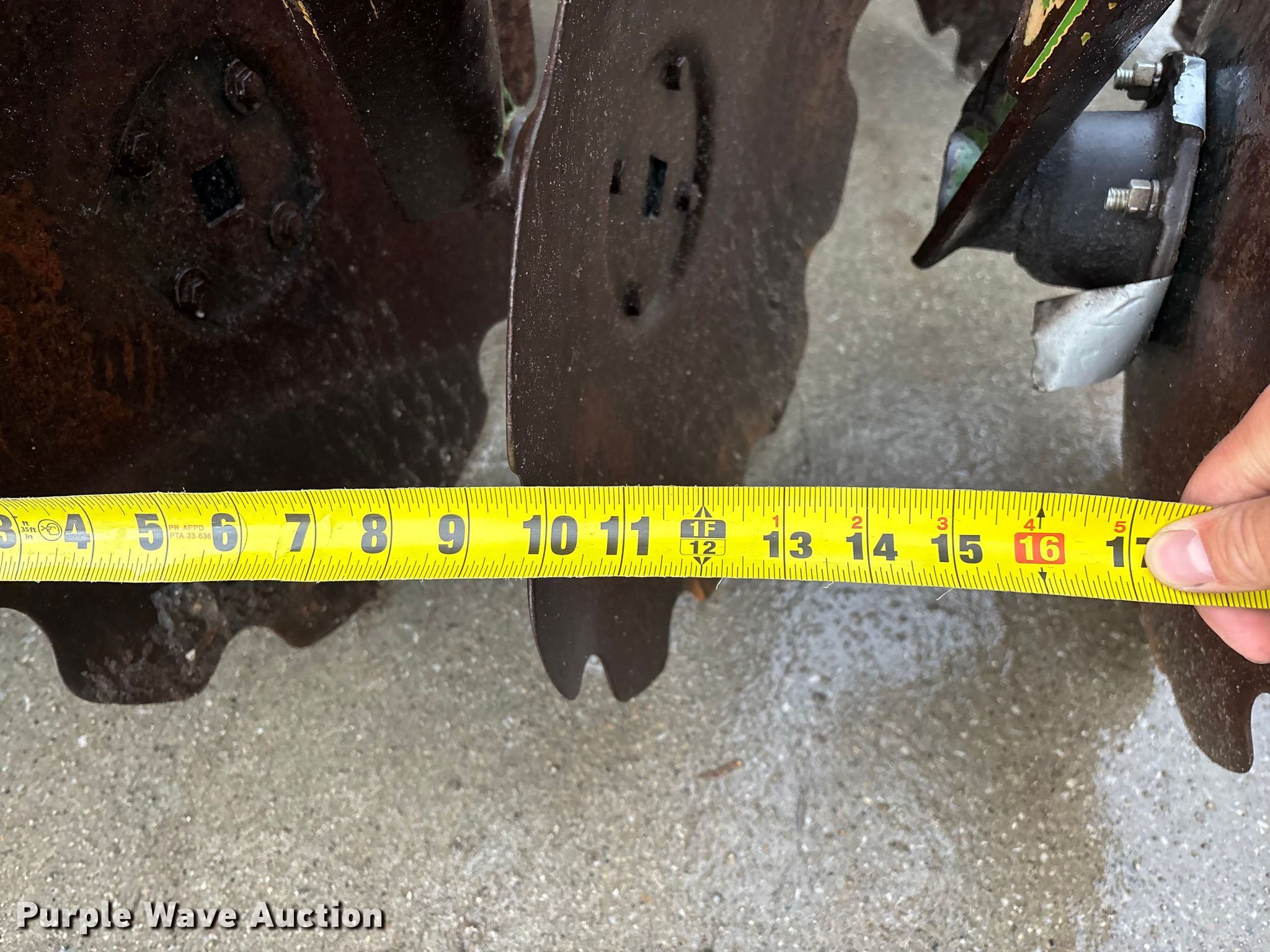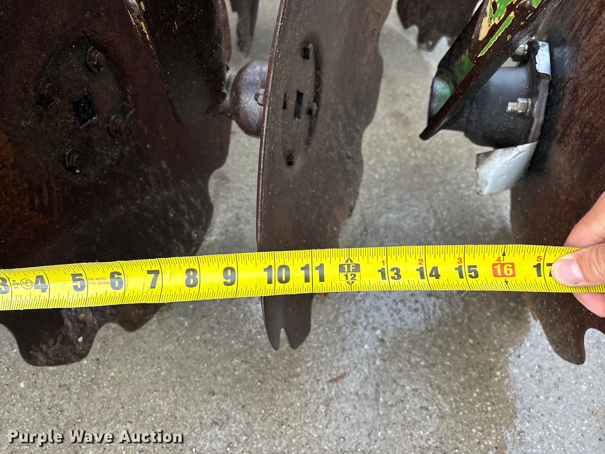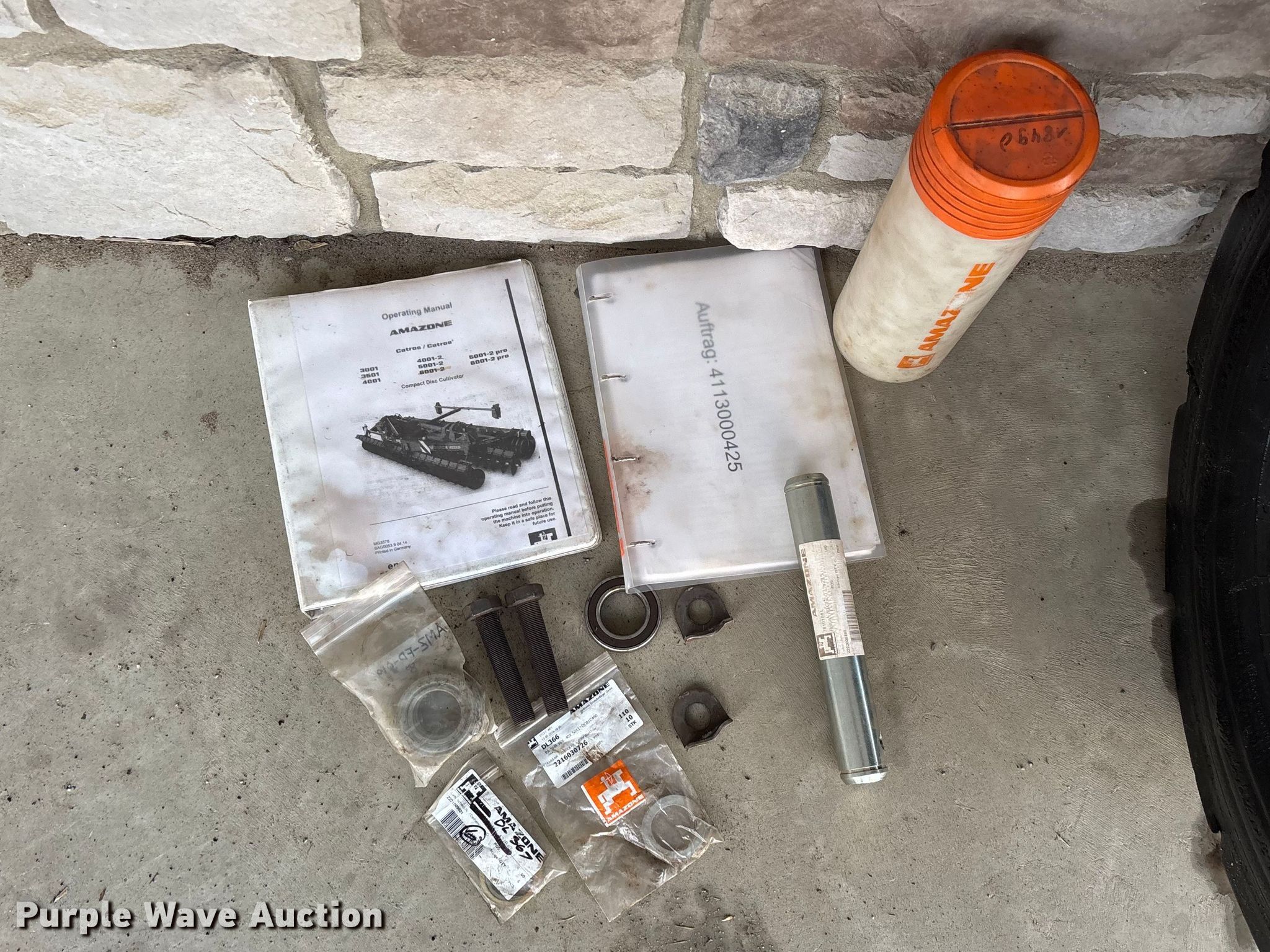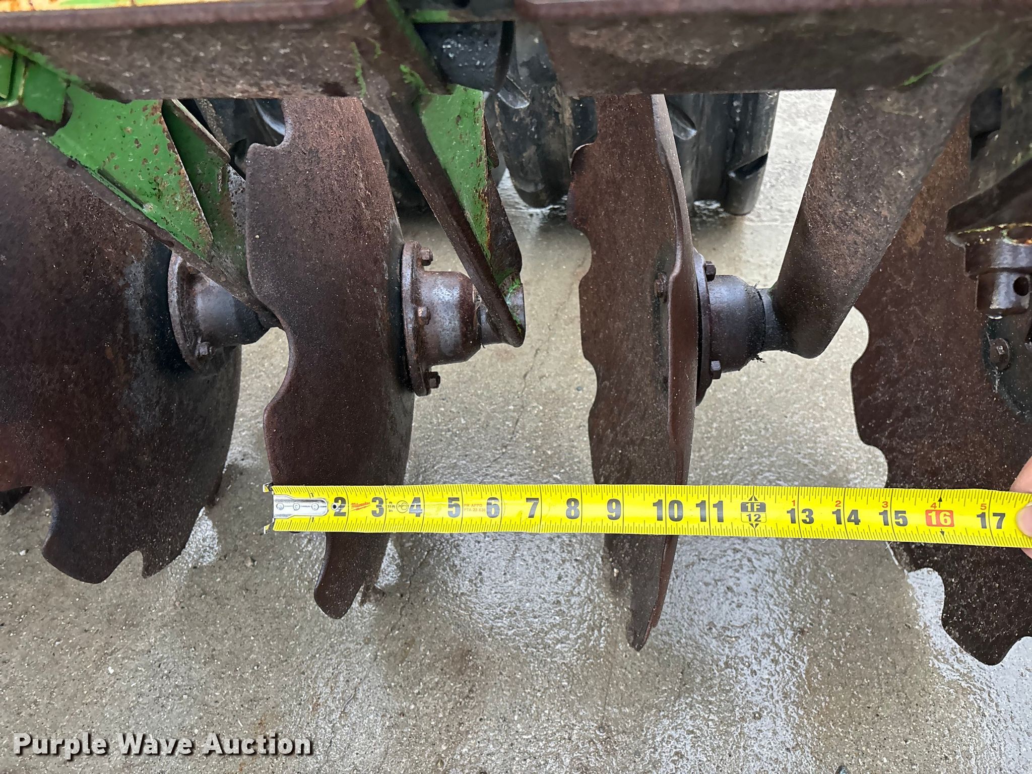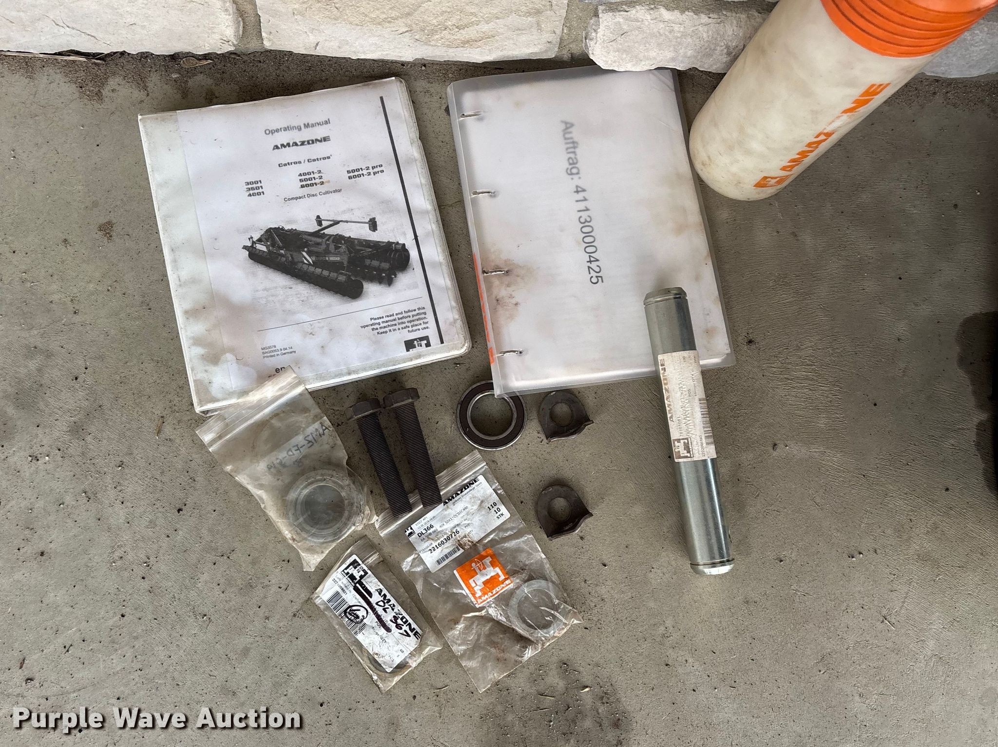Amazone Catros 7501-2T disk. Overall width: 24' 6", Serial: CAT0018490. Features Front blades Diameter: 22", Spacing: 10", Rear blades Diameter: 22", Spacing: 10", Operation Hydraulic lift, Hydraulic fold, Leveler: Hydraulic, Attachments Transport lights. Tires Tire size: 400/50-15.5 IMP. Notes Trailer not included, Transport light damaged. Van Dyk Farms. Imlay City, MI 48444
