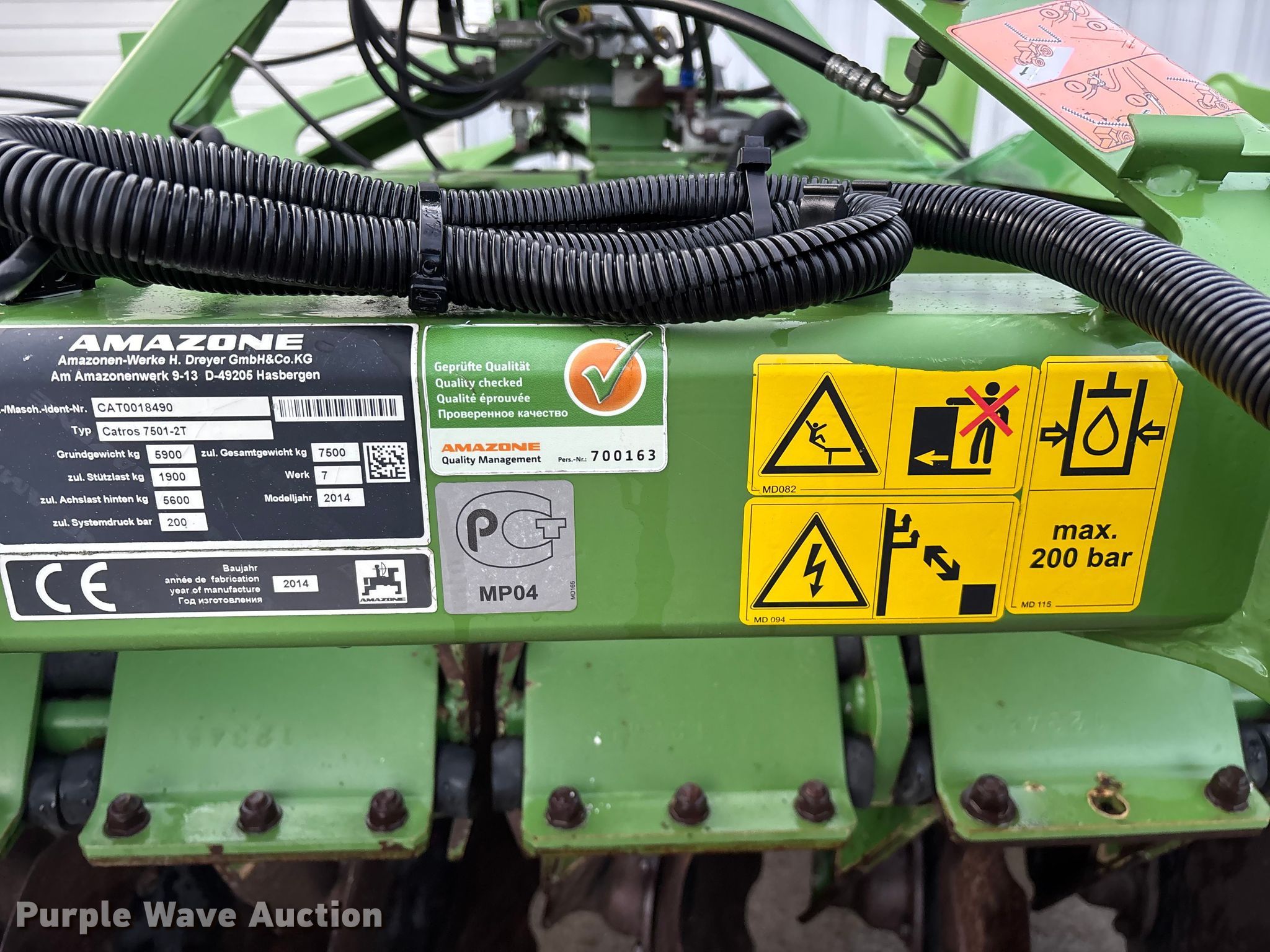 Purple Wave is selling a used Disk in Michigan. This item is a Amazone Catros 7501-2T disk with the following: Overall width: 24' 6", Serial: CAT0018490